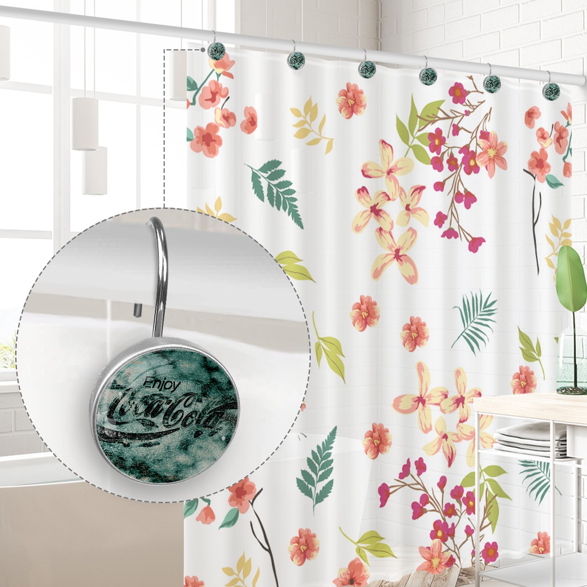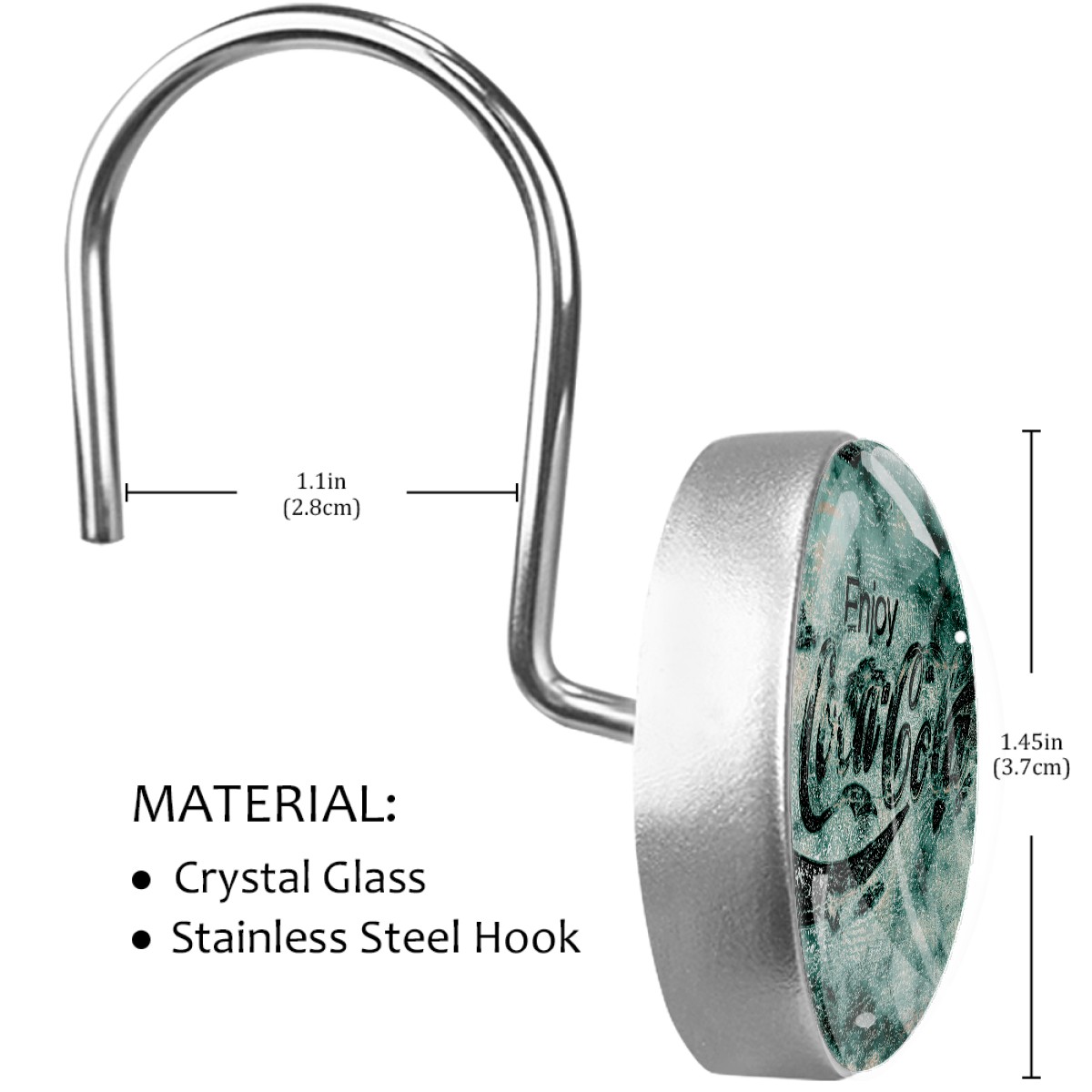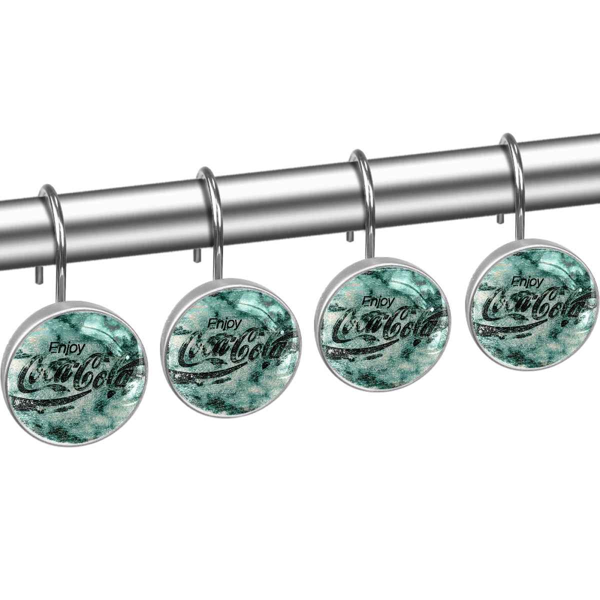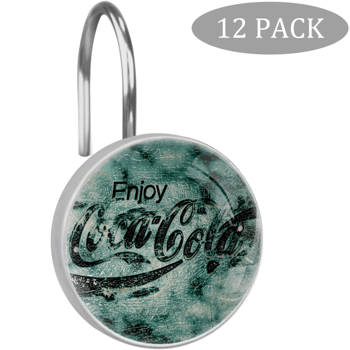 Retro Enjoy Coca Cola Sign Shower Curtain Hooks,12PCS Diamond Shaped Shower Curtain Rings for Shower Rods Curtain and Liner Home Decor