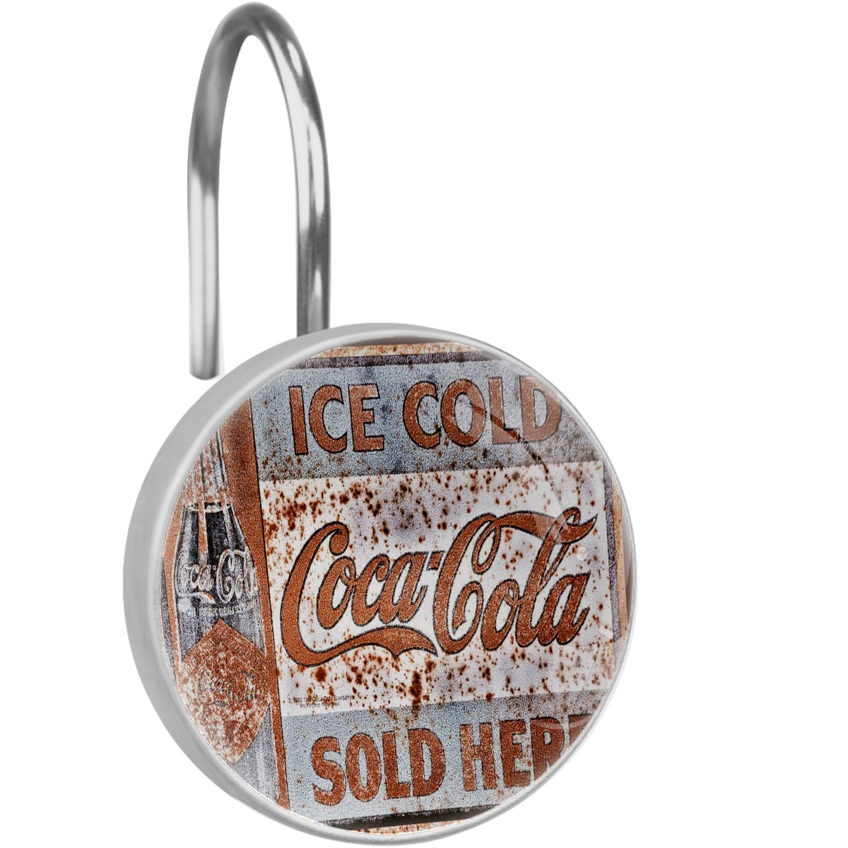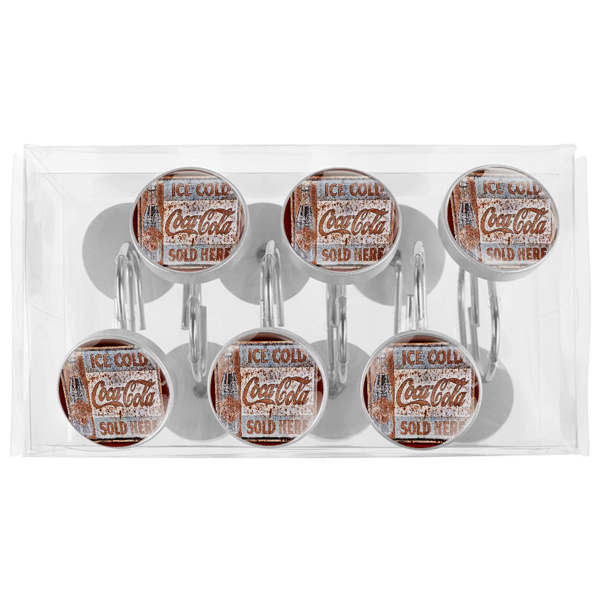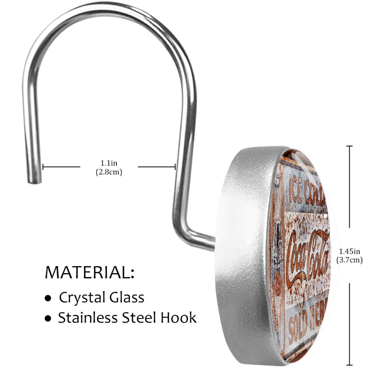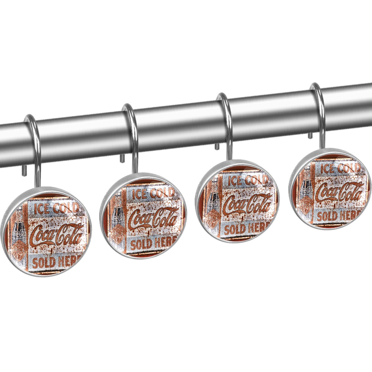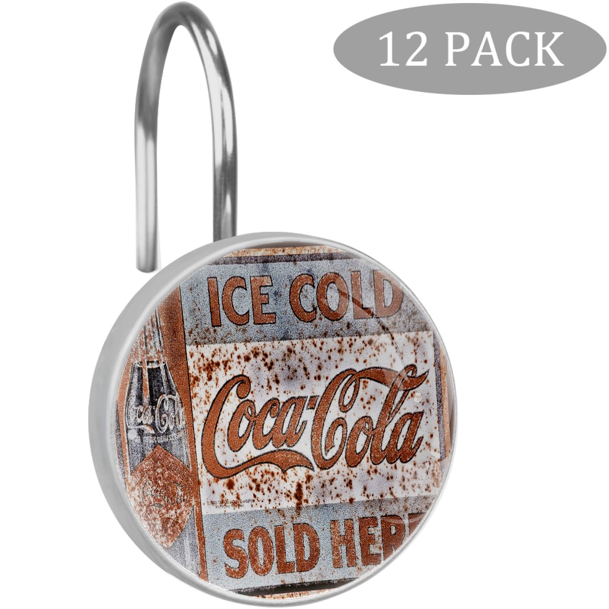 Retro Ice Cold Coca Cola Shower Curtain Hooks,12PCS Diamond Shaped Shower Curtain Rings for Shower Rods Curtain and Liner Home Decor