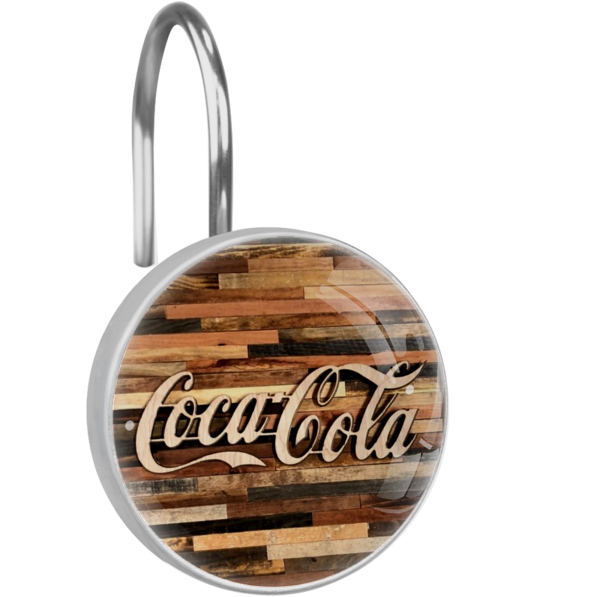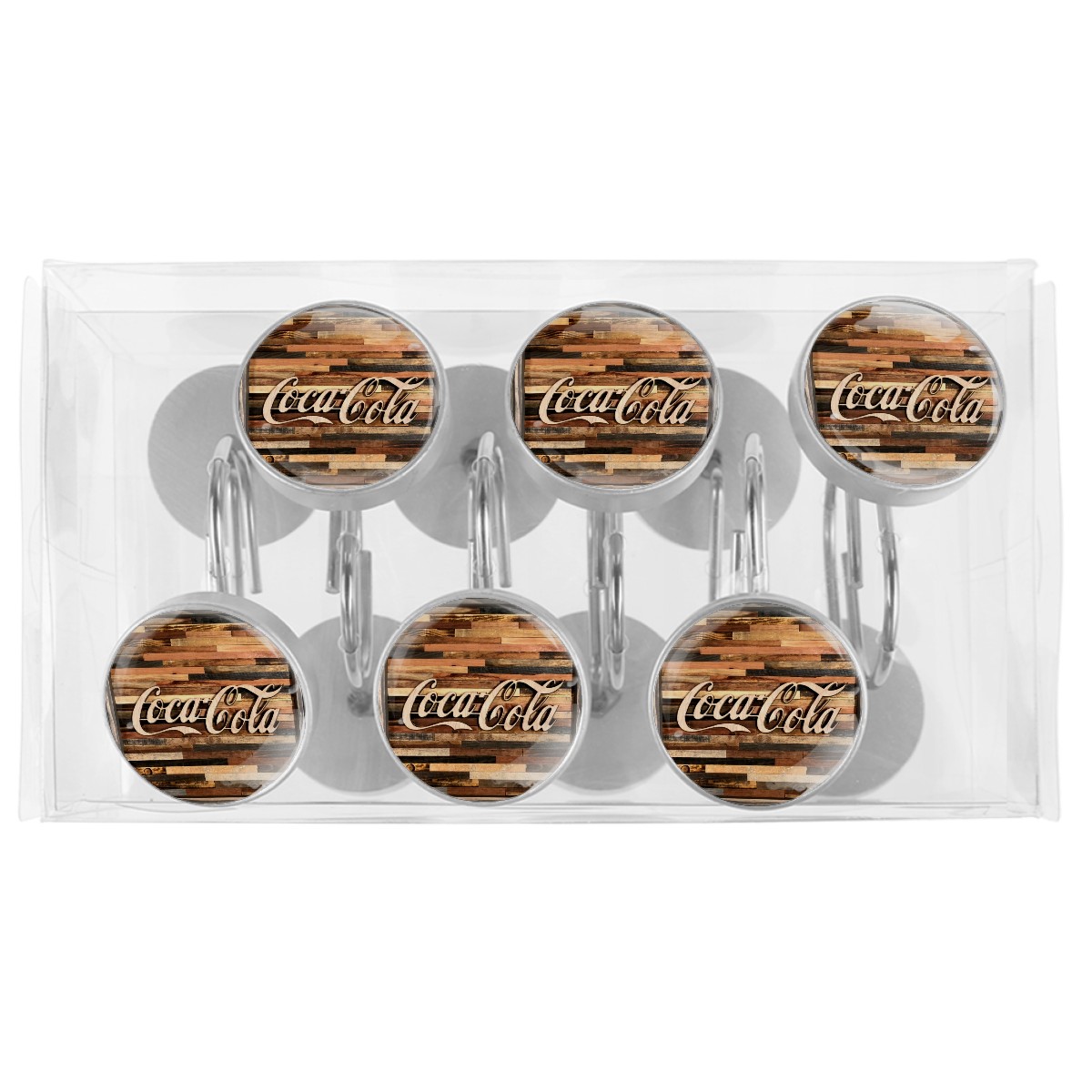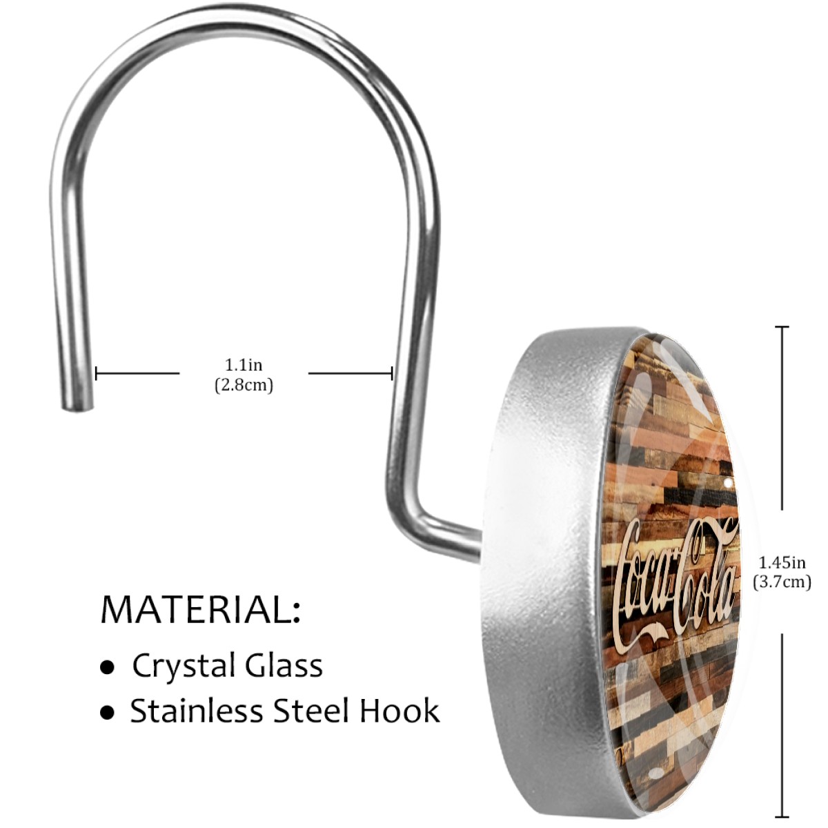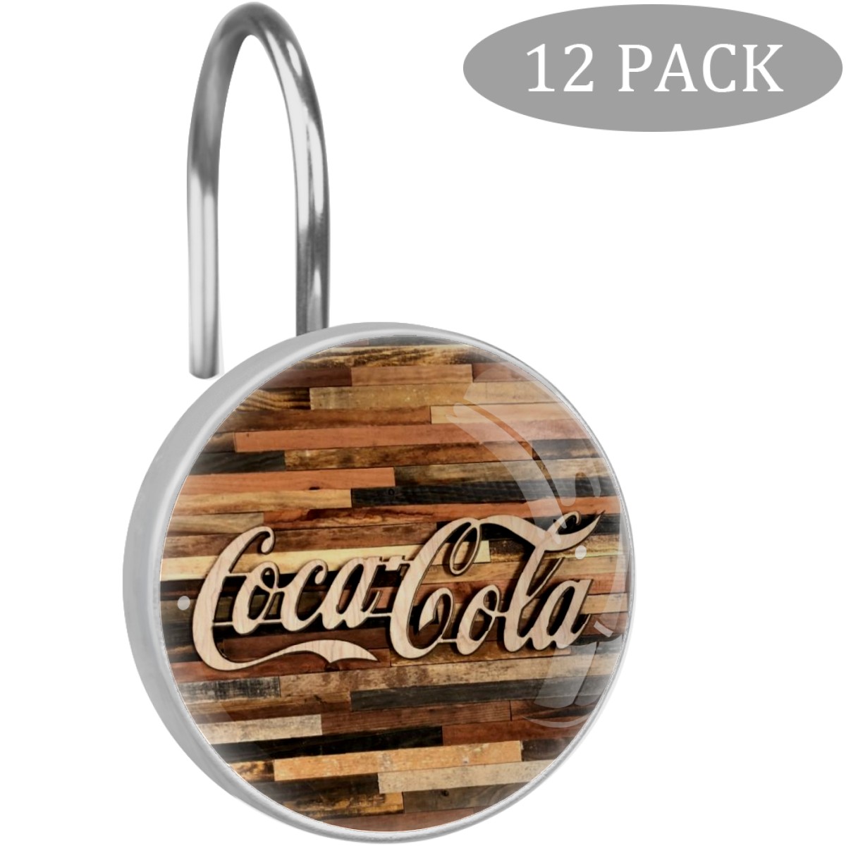Retro Coca Cola On Wood Shower Curtain Hooks,12PCS Diamond Shaped Shower Curtain Rings for Shower Rods Curtain and Liner Home Decor