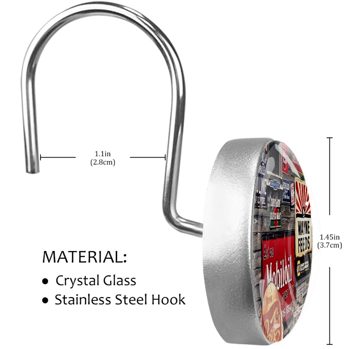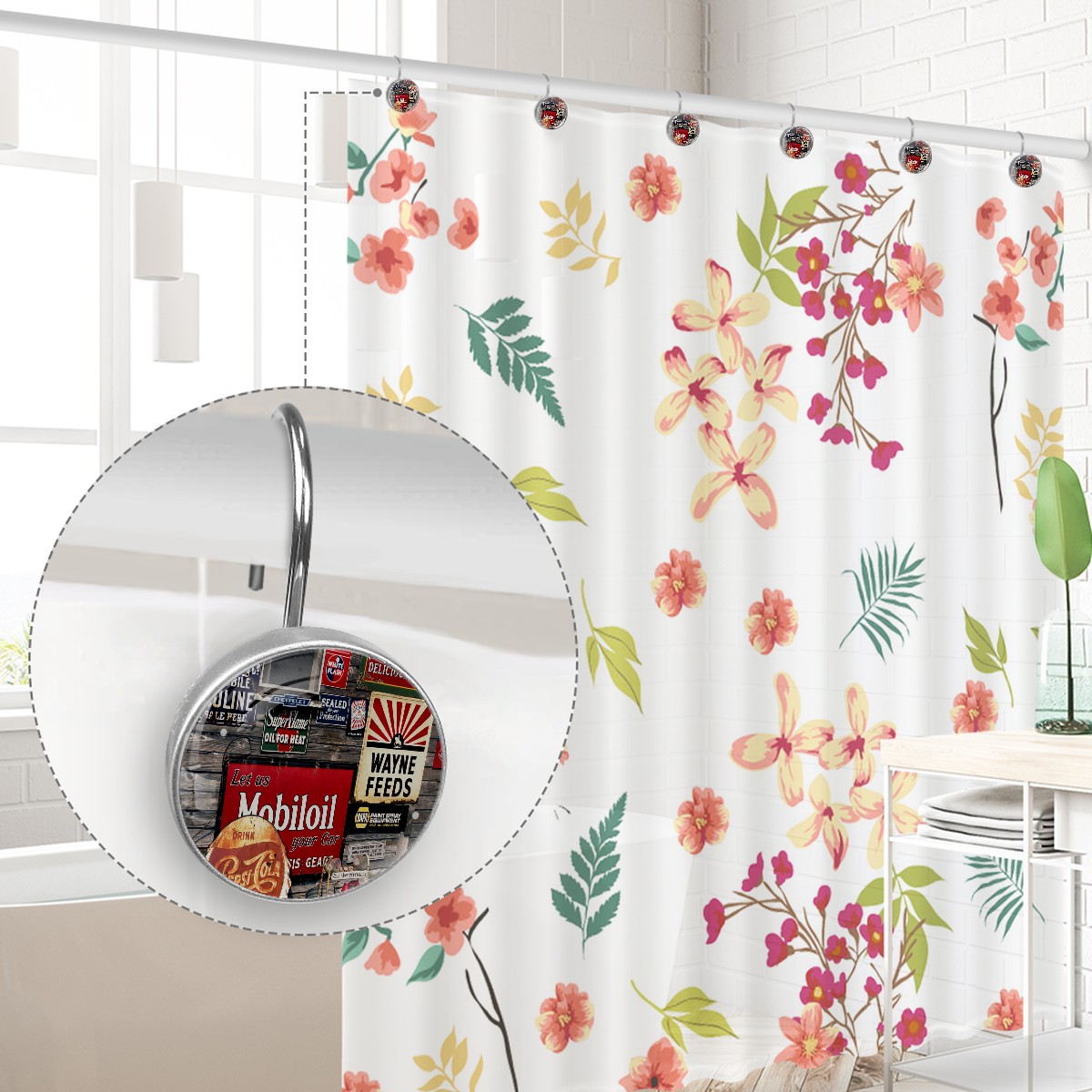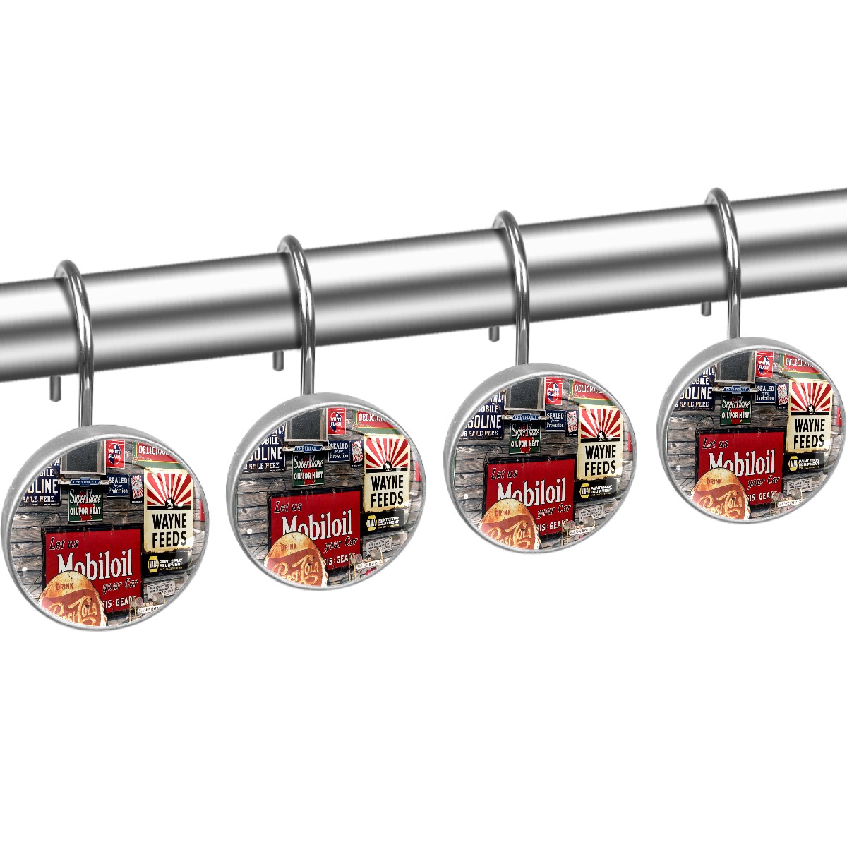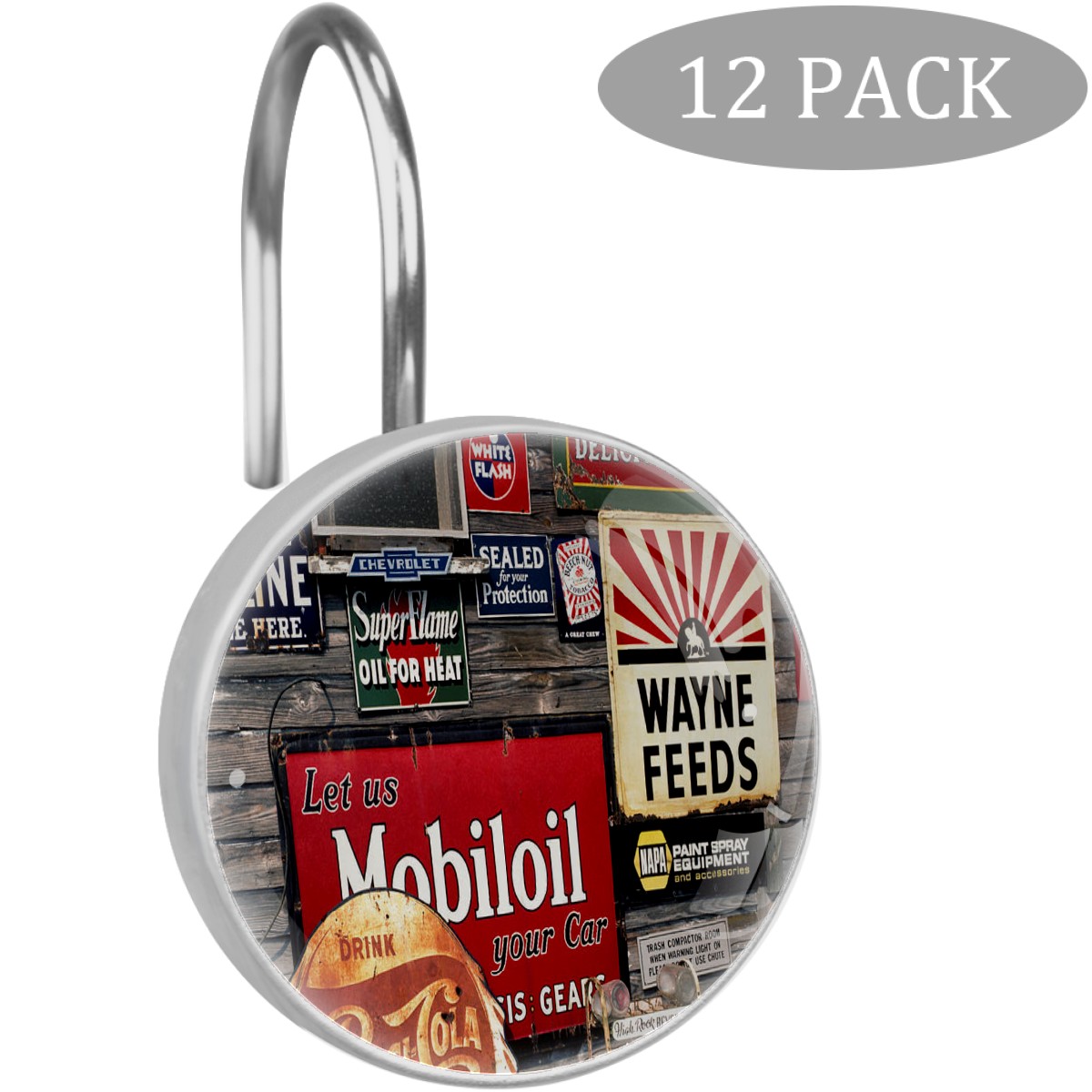Old Vintage Sign Coke Shower Curtain Hooks,12PCS Diamond Shaped Shower Curtain Rings for Shower Rods Curtain and Liner Home Decor