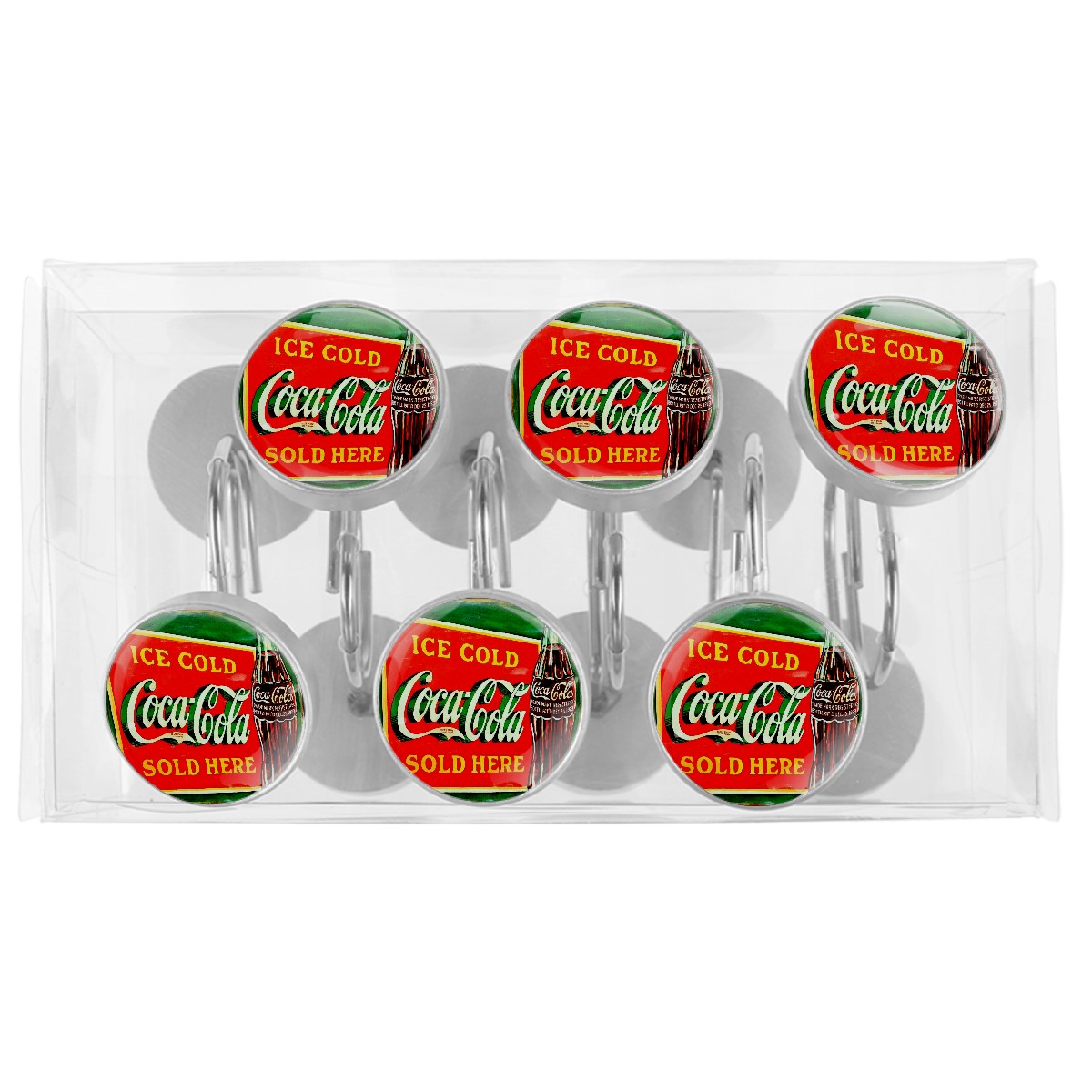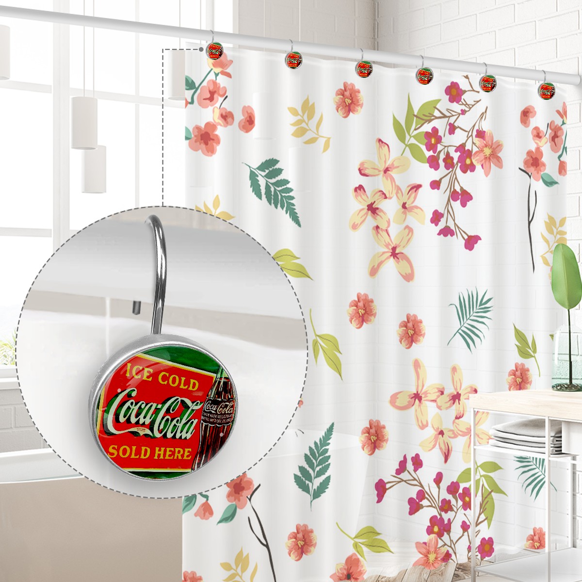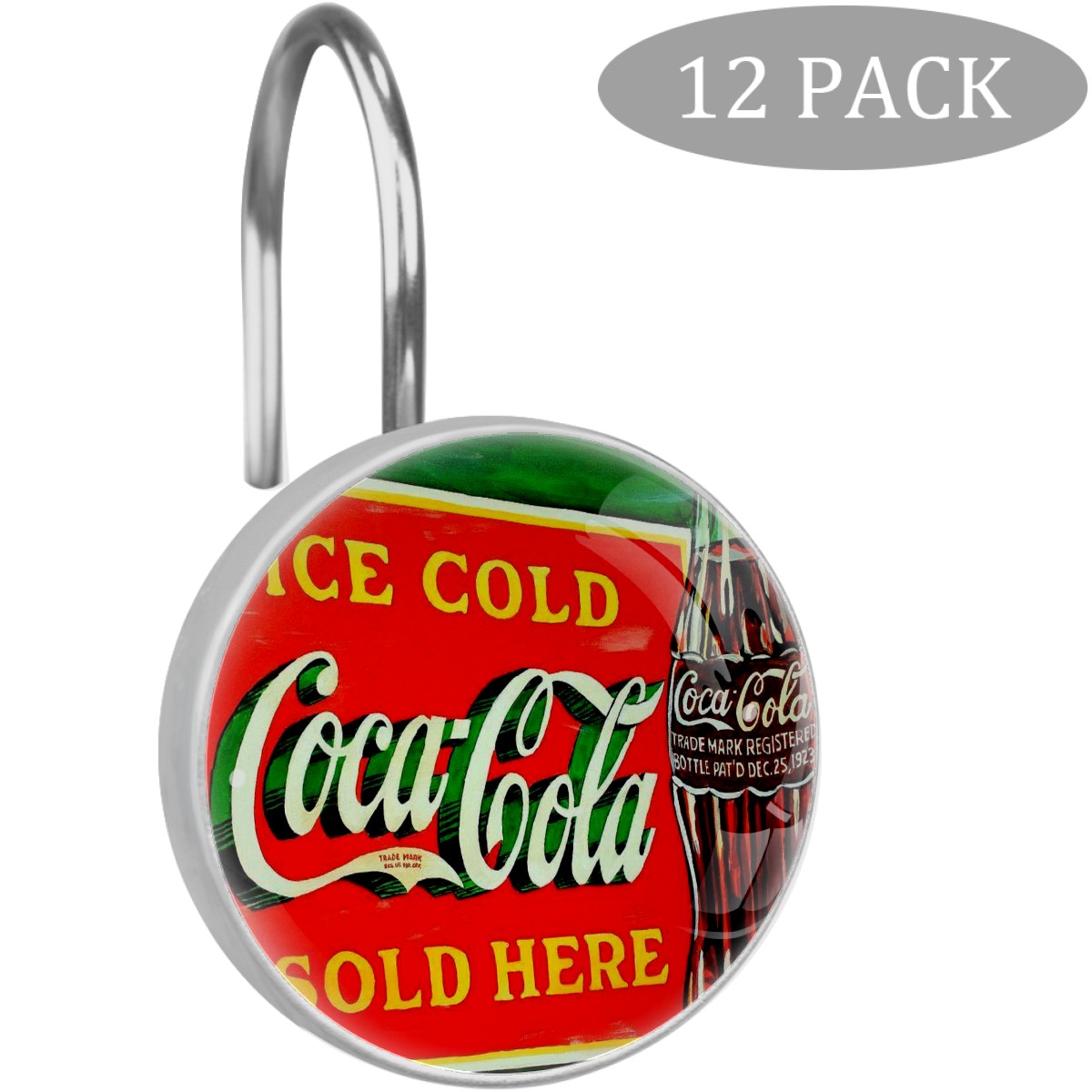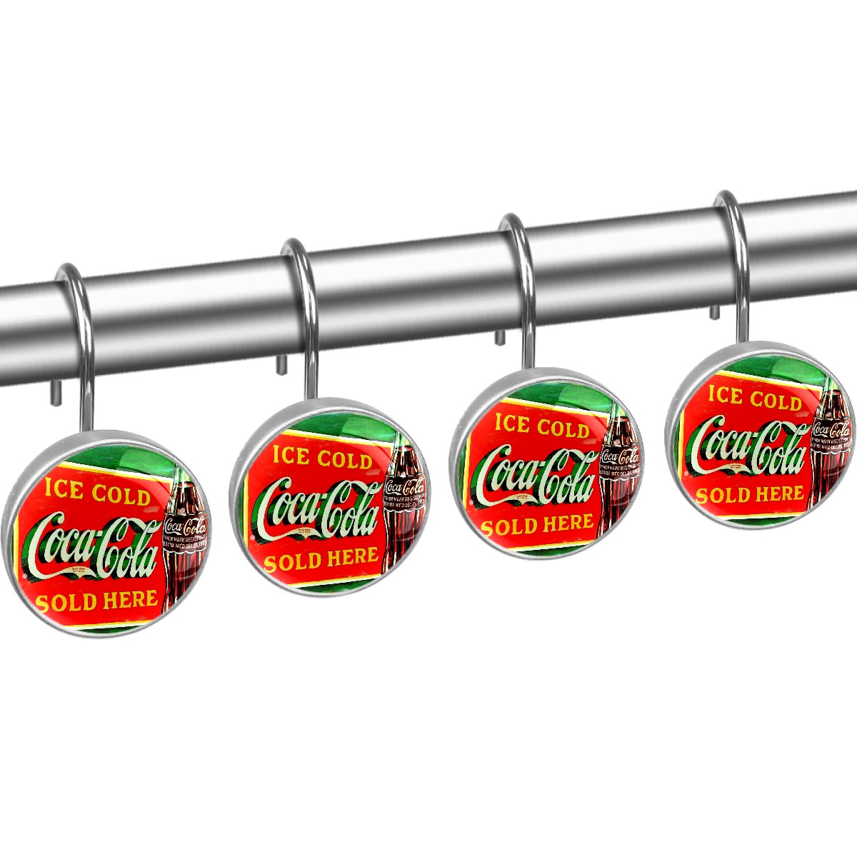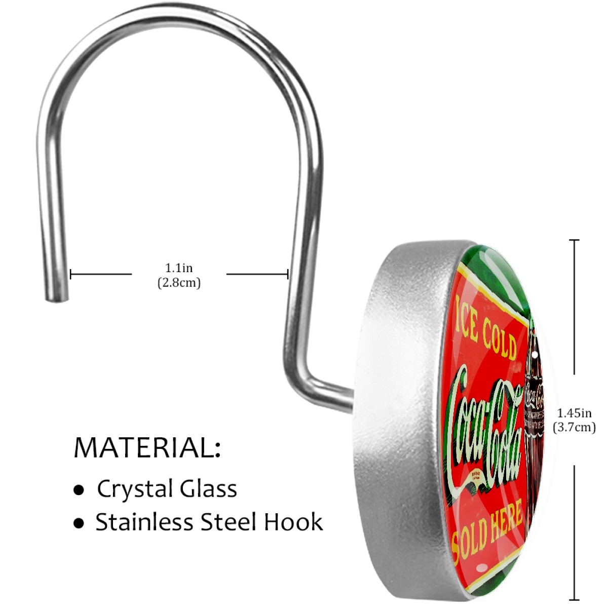 Ice Cold Coca Cola Sign Shower Curtain Hooks,12PCS Diamond Shaped Shower Curtain Rings for Shower Rods Curtain and Liner Home Decor