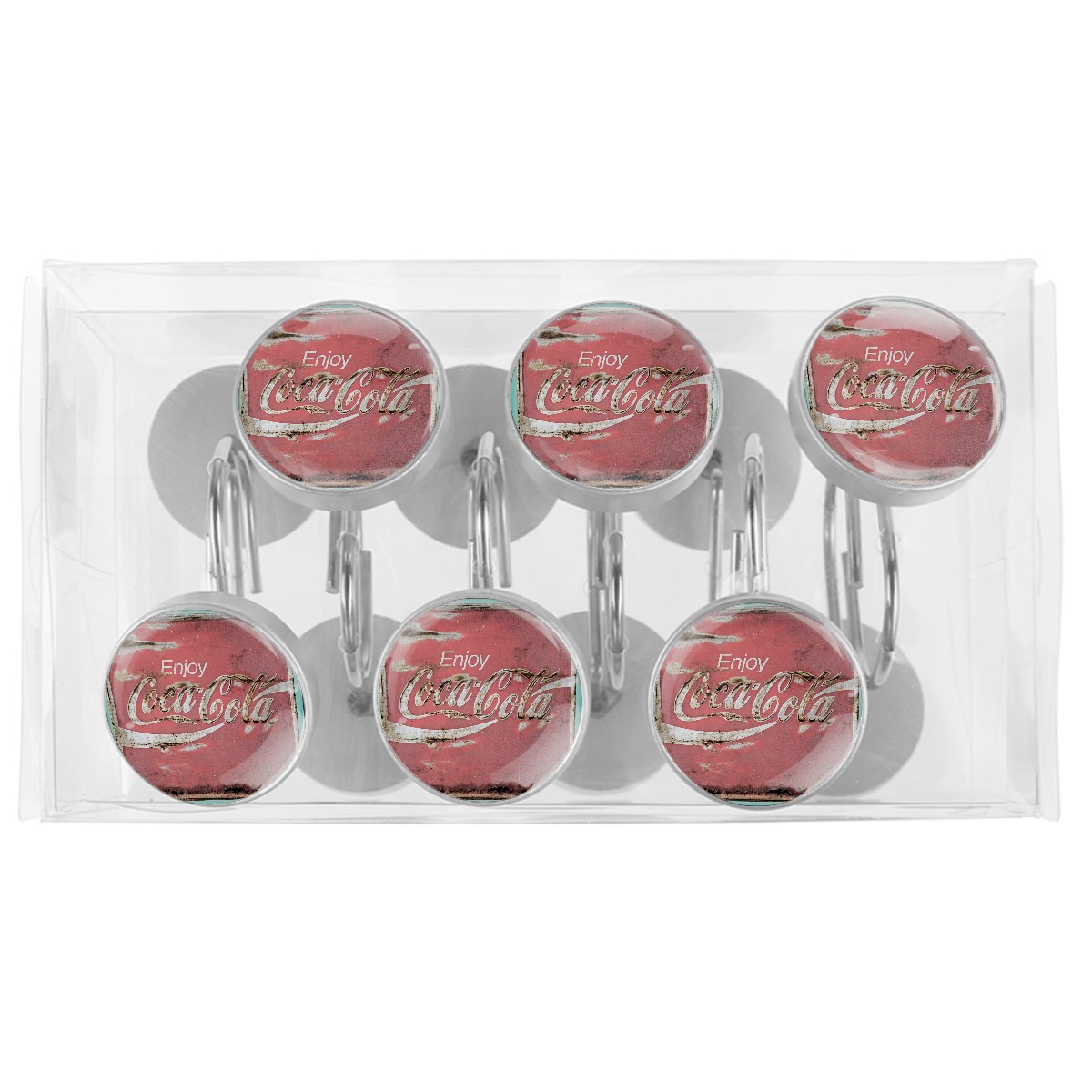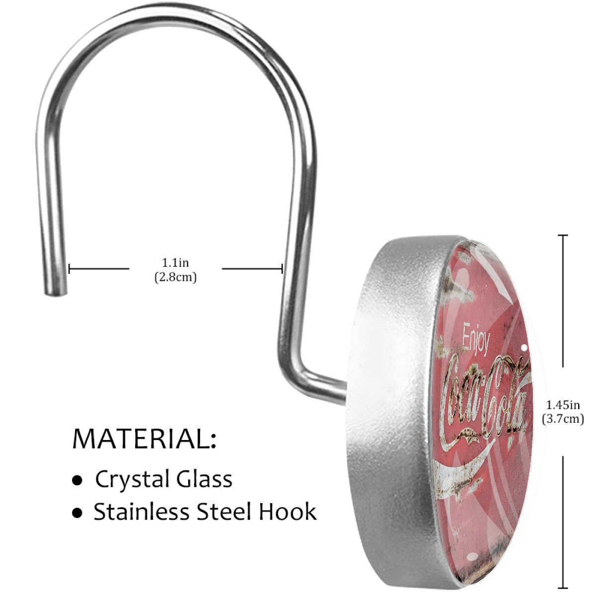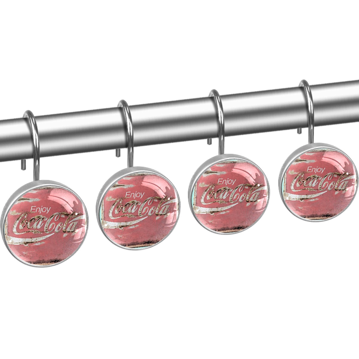 Grunge Coca Cola Sign Shower Curtain Hooks,12PCS Diamond Shaped Shower Curtain Rings for Shower Rods Curtain and Liner Home Decor