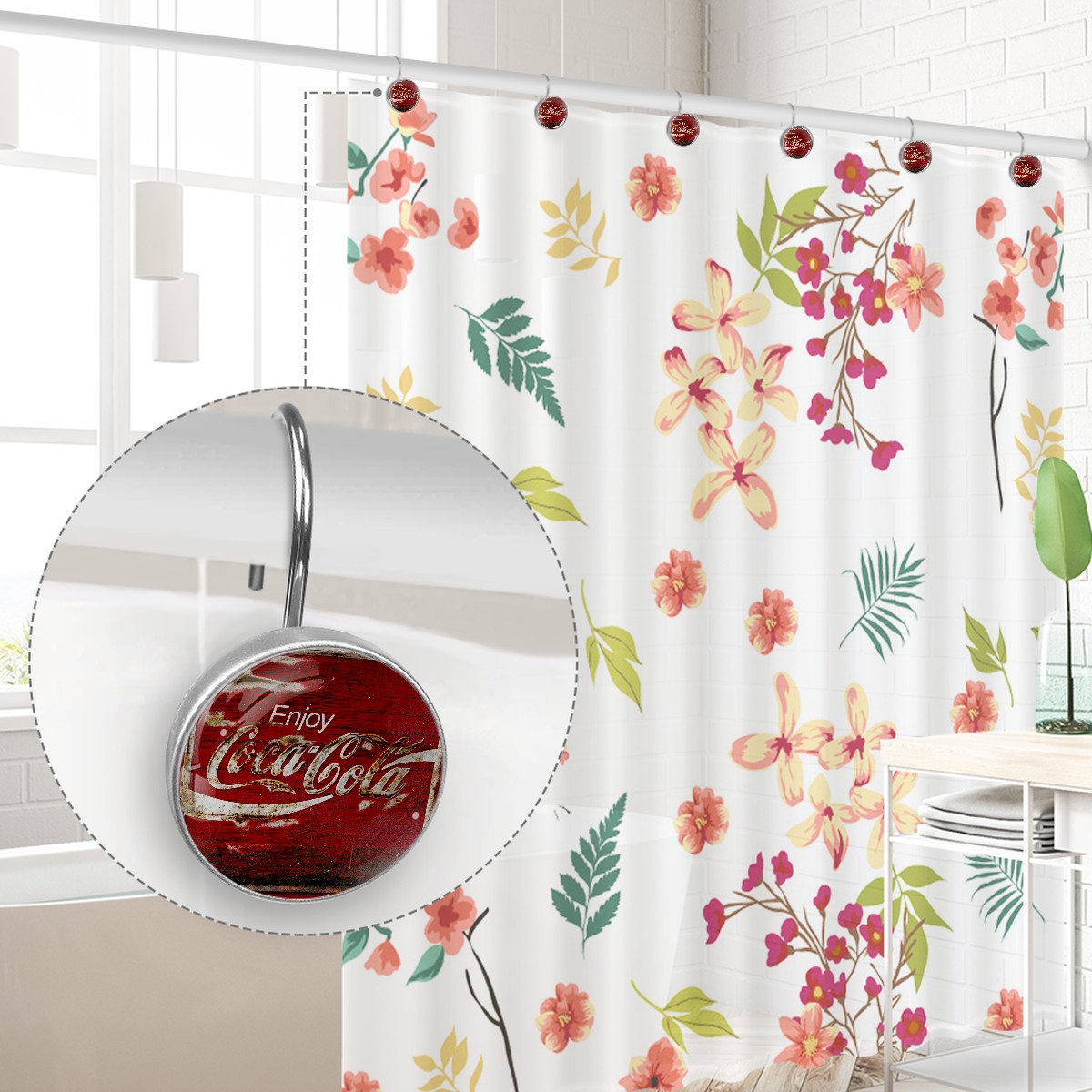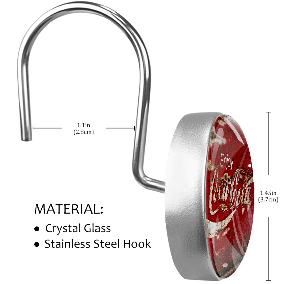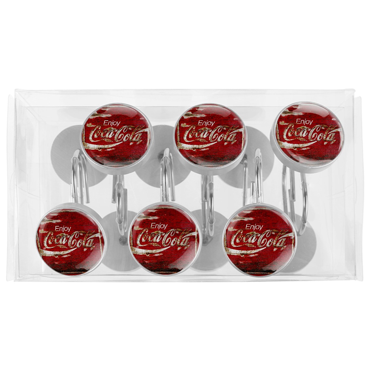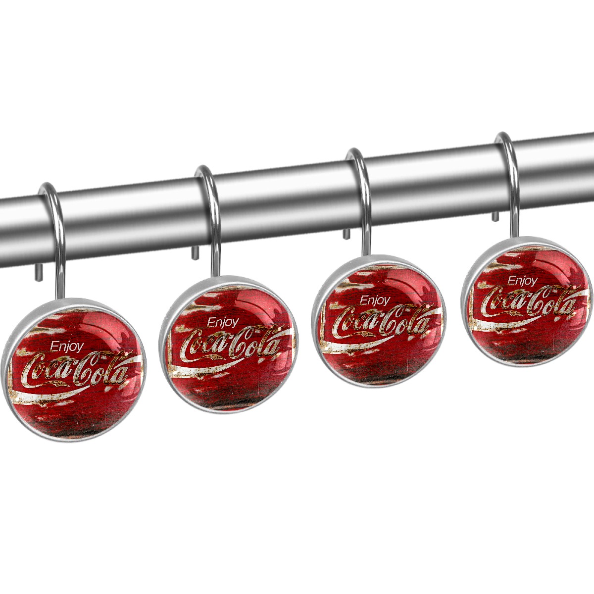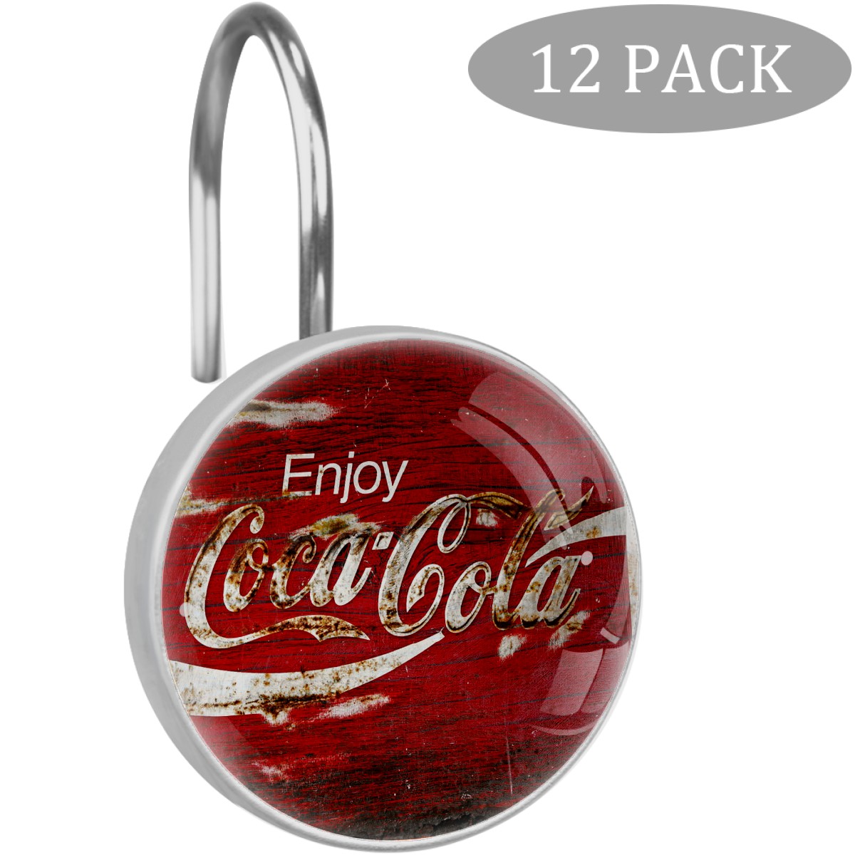 Enjoy Retro Coca Cola Red Sign Shower Curtain Hooks,12PCS Diamond Shaped Shower Curtain Rings for Shower Rods Curtain and Liner Home Decor