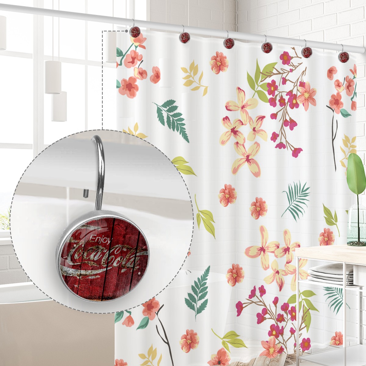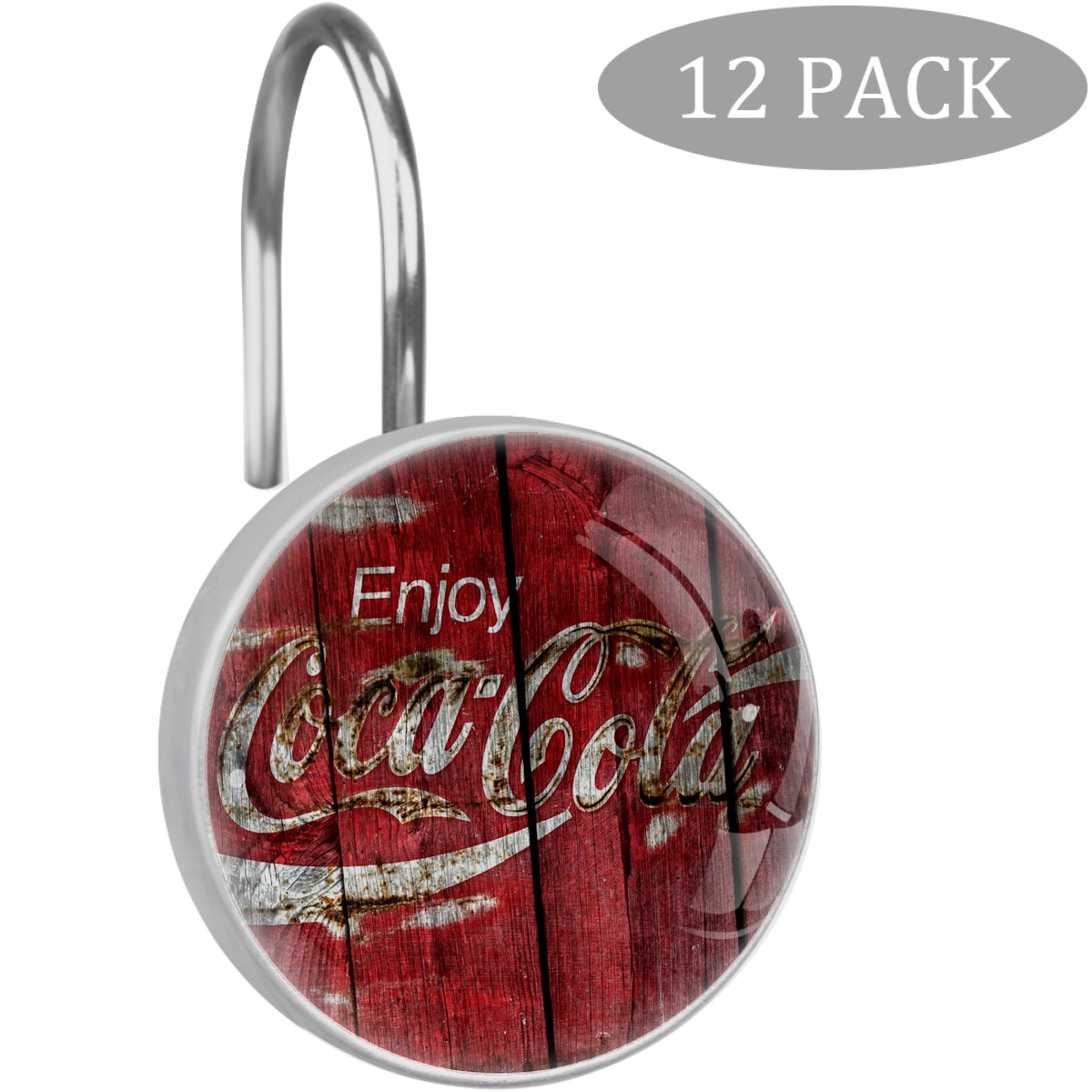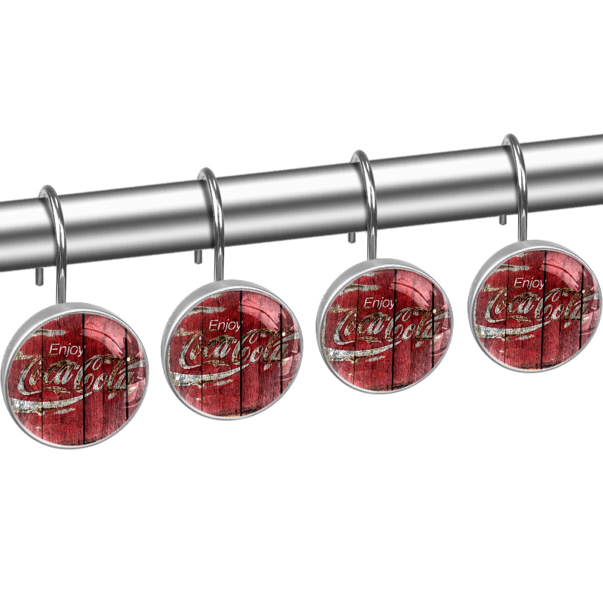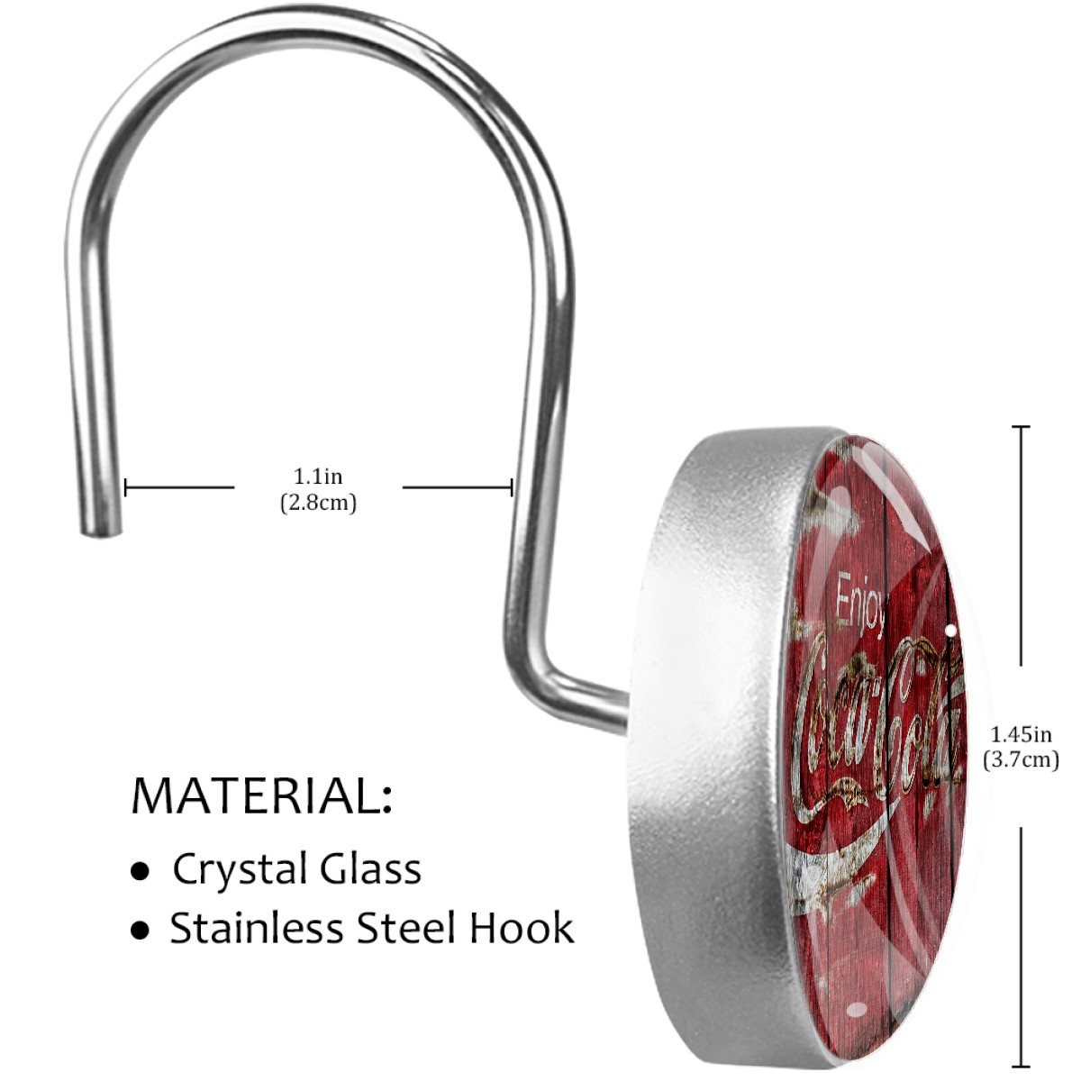 Enjoy Retro Coca Cola Red Shower Curtain Hooks,12PCS Diamond Shaped Shower Curtain Rings for Shower Rods Curtain and Liner Home Decor