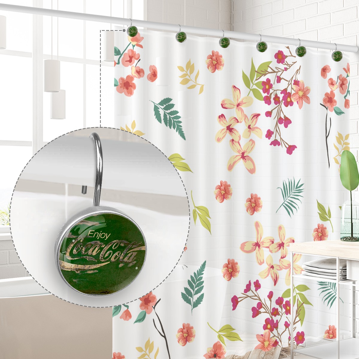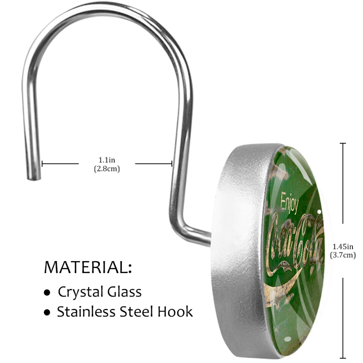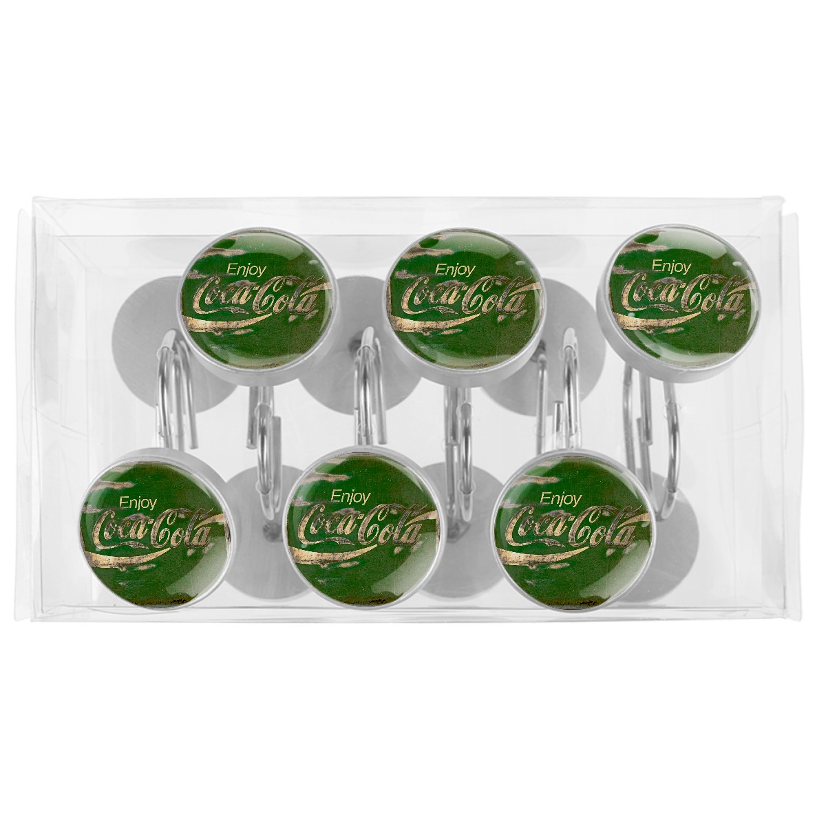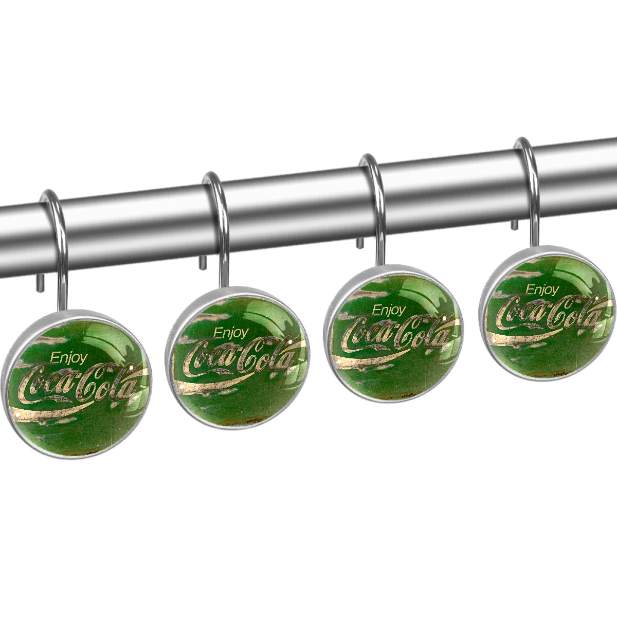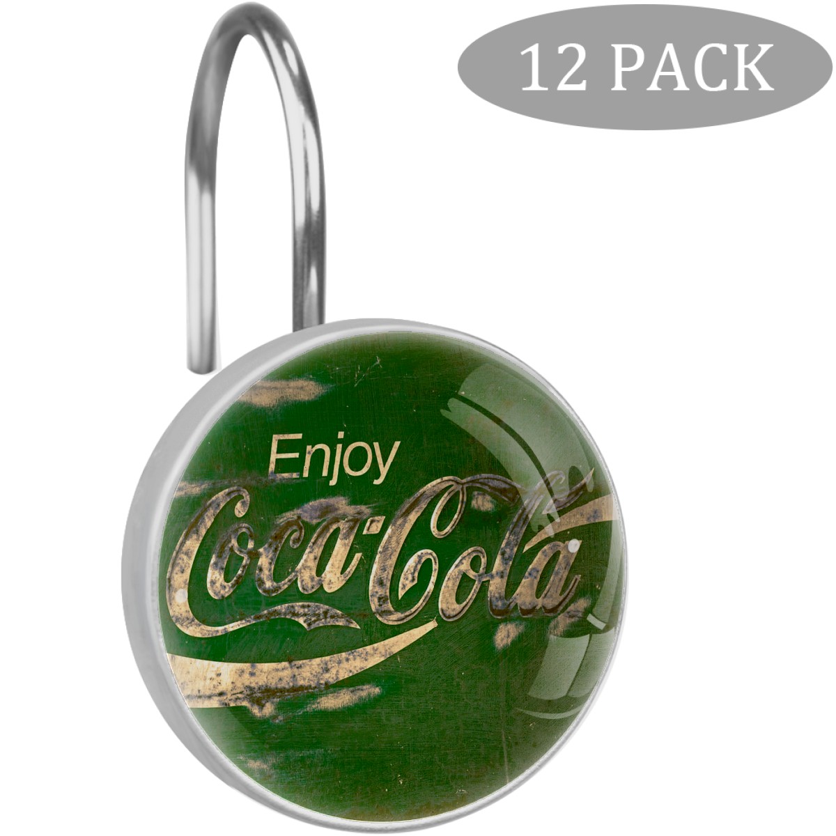 Enjoy Retro Coca Cola Green Sign Shower Curtain Hooks,12PCS Diamond Shaped Shower Curtain Rings for Shower Rods Curtain and Liner Home Decor