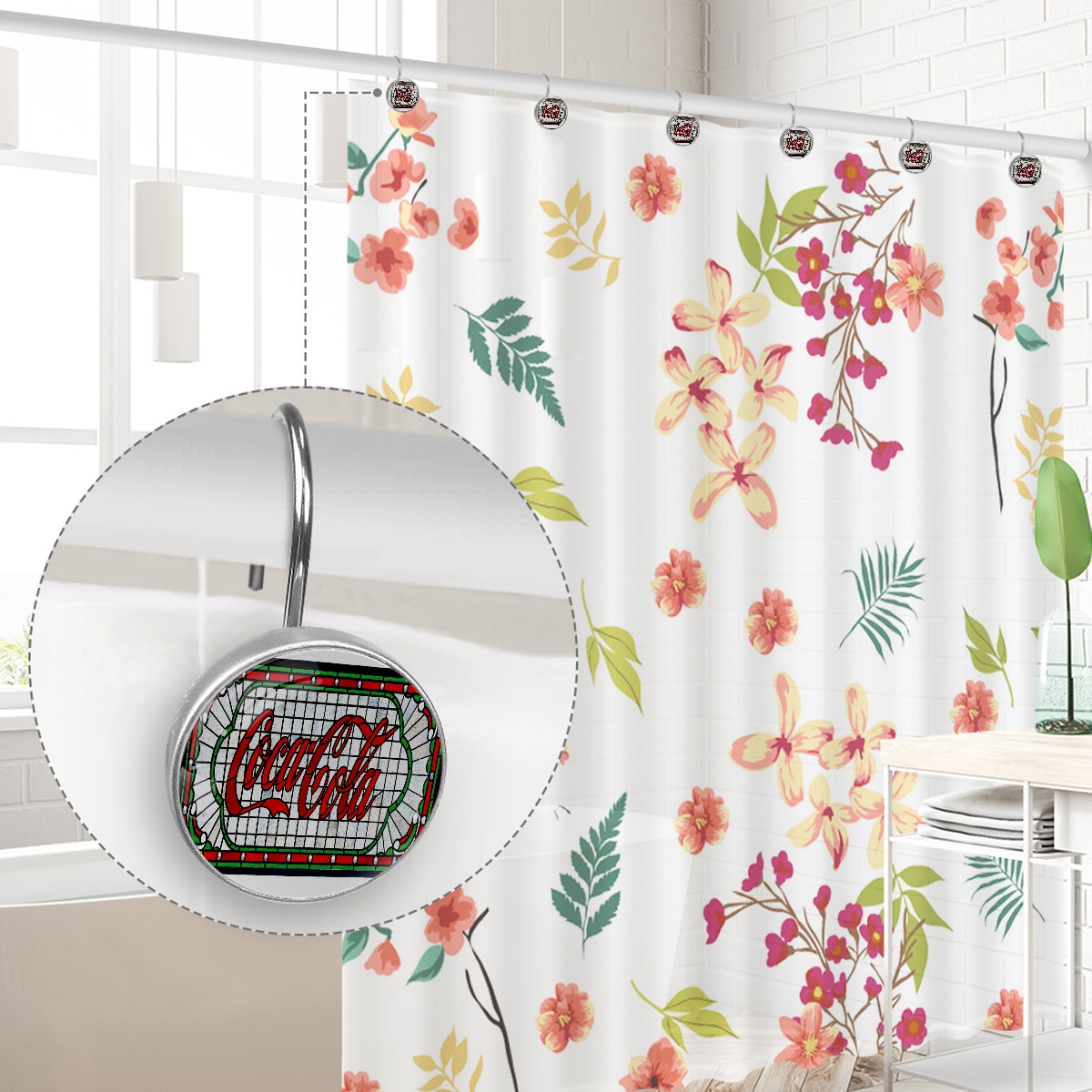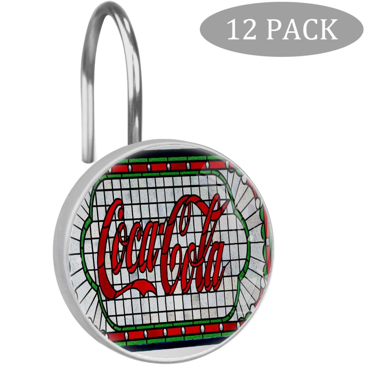 Cool Coca Cola Sign Shower Curtain Hooks,12PCS Diamond Shaped Shower Curtain Rings for Shower Rods Curtain and Liner Home Decor