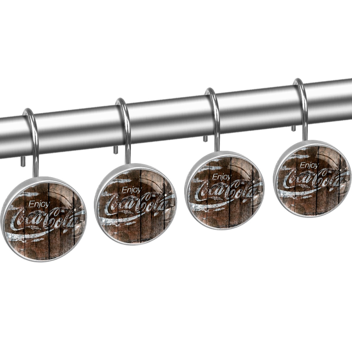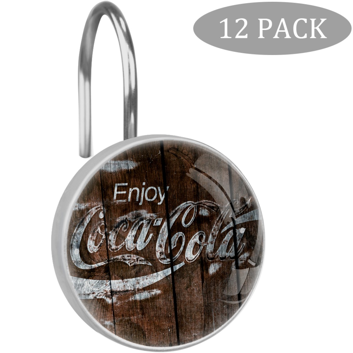 Coca Cola Sign Barn Wood Shower Curtain Hooks,12PCS Diamond Shaped Shower Curtain Rings for Shower Rods Curtain and Liner Home Decor