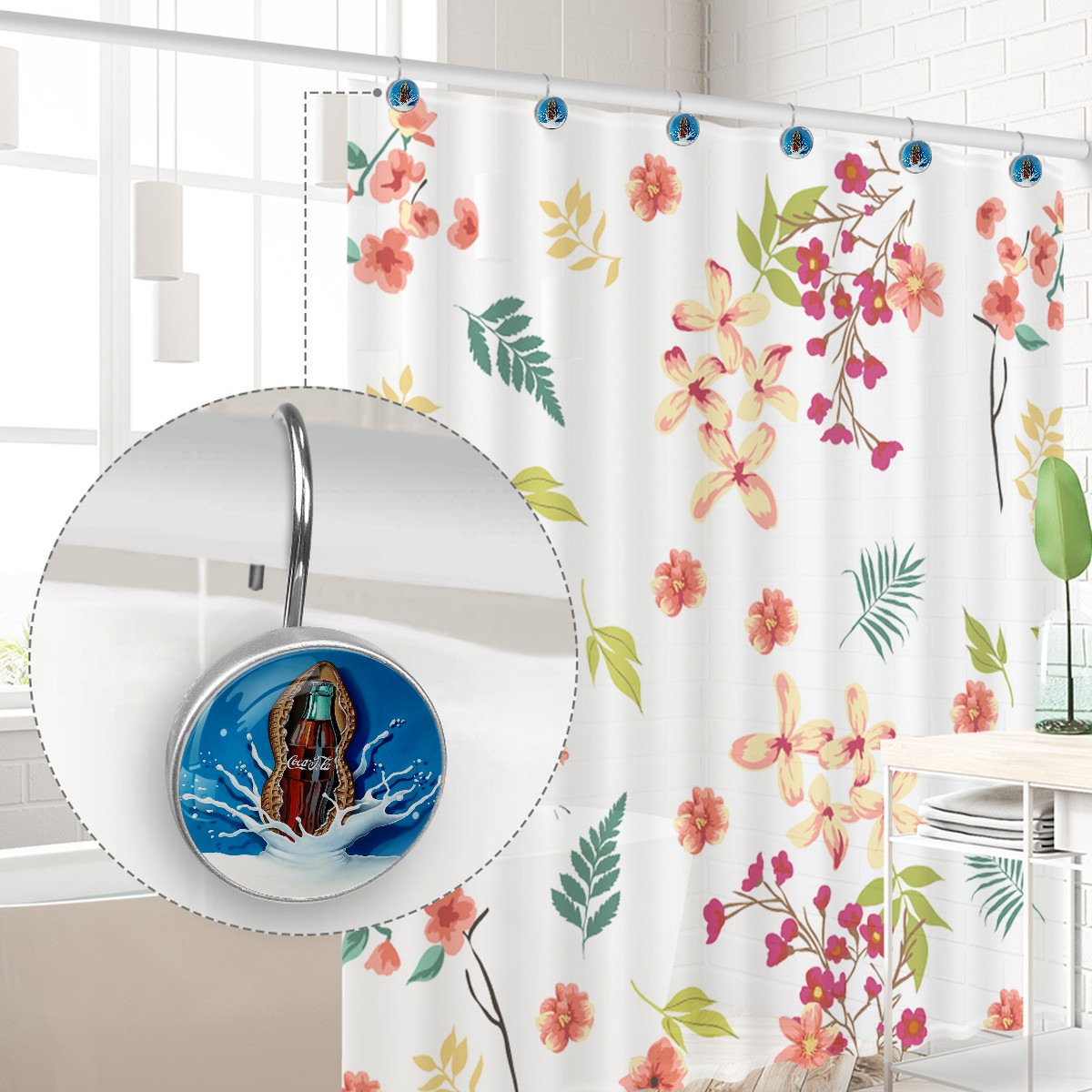 Coconut Cream Coke Shower Curtain Hooks,12PCS Diamond Shaped Shower Curtain Rings for Shower Rods Curtain and Liner Home Decor