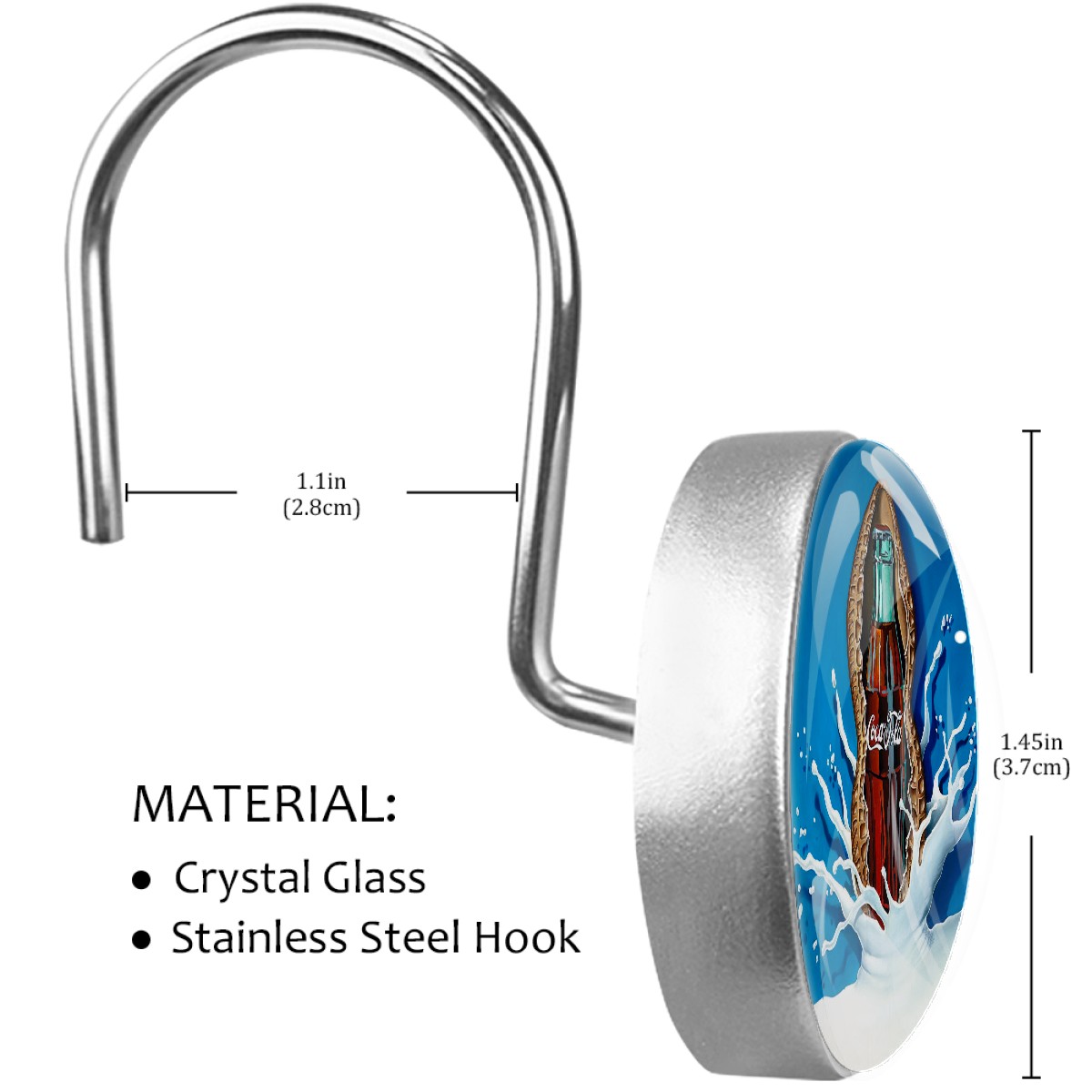 <p><b>Diamond Shaped Shower Curtain Hooks12PCS Shower Curtain Rings for Shower Rods Curtain and Liner Home Decor&nbsp;</b></p><p><b>Size:</b>Crystal glass diameter-1.45x1.45in/ 3.7x3.7cm. Hook diameter is about 1.1in</p><p><b>Material:</b>Crystal Glass + Stainless Steel Hook, Single-sided printing</p><p>Package included: 12&nbsp;x Shower Curtain Hooks</p><p></p><p><b>Features:</b></p><p>-Simply thread through existing holes and hang over shower rod.This decorative shower curtain rings allow effortless gliding across the rod with virtually no effort at all.</p><p>-The shower curtain hook adopts U-shaped hook design, with strong load-bearing capacity, safe and stable, without slide out and fall.</p><p>-Inlaid with crystals, a row of round crystal hooks sparkle and charming under the refraction of light, creating a warm and romantic home for you</p><p>-This bling bling decorative shower curtain rings can attach to your shower curtain eyelets and curtain pole very quickly and easily.</p><p>-Durable rust-resistant design that won't detach or break when moderate stress is put on the curtain. The stainless steel material, non-magnetic metal is corrosion-free, meaning it will last indoors and outdoors without rusting</p><p>-Best Birthday/Christmas Gift&nbsp;to your family, friends, kids, girls, boys, girlfriend, boyfriend, men, women, etc.&nbsp;</p>