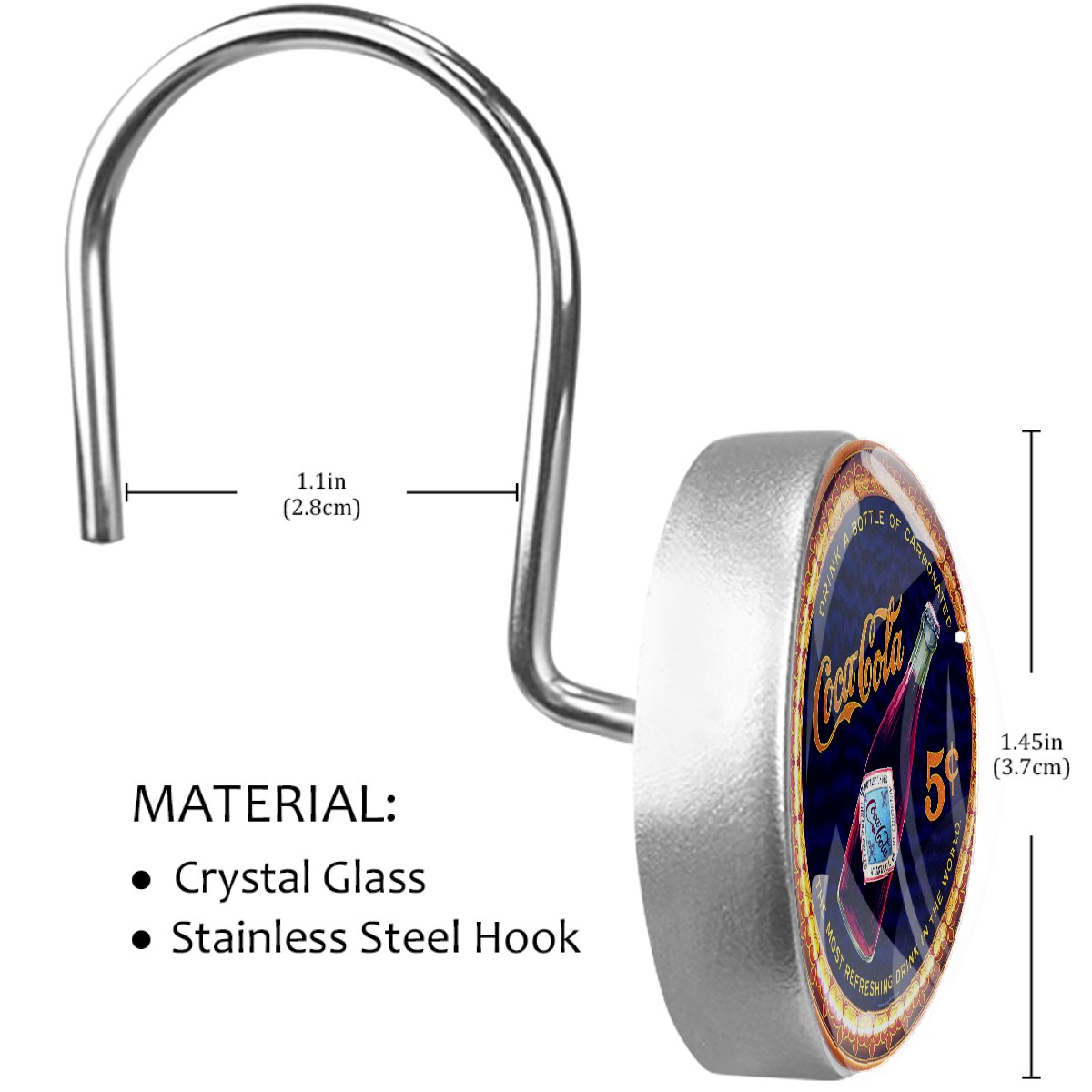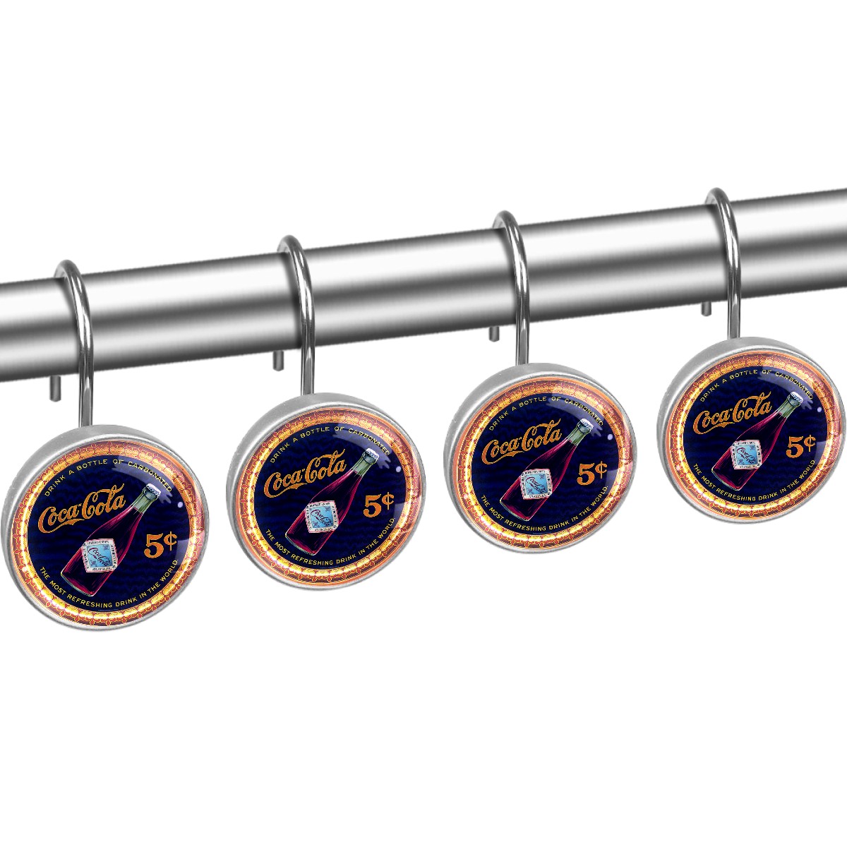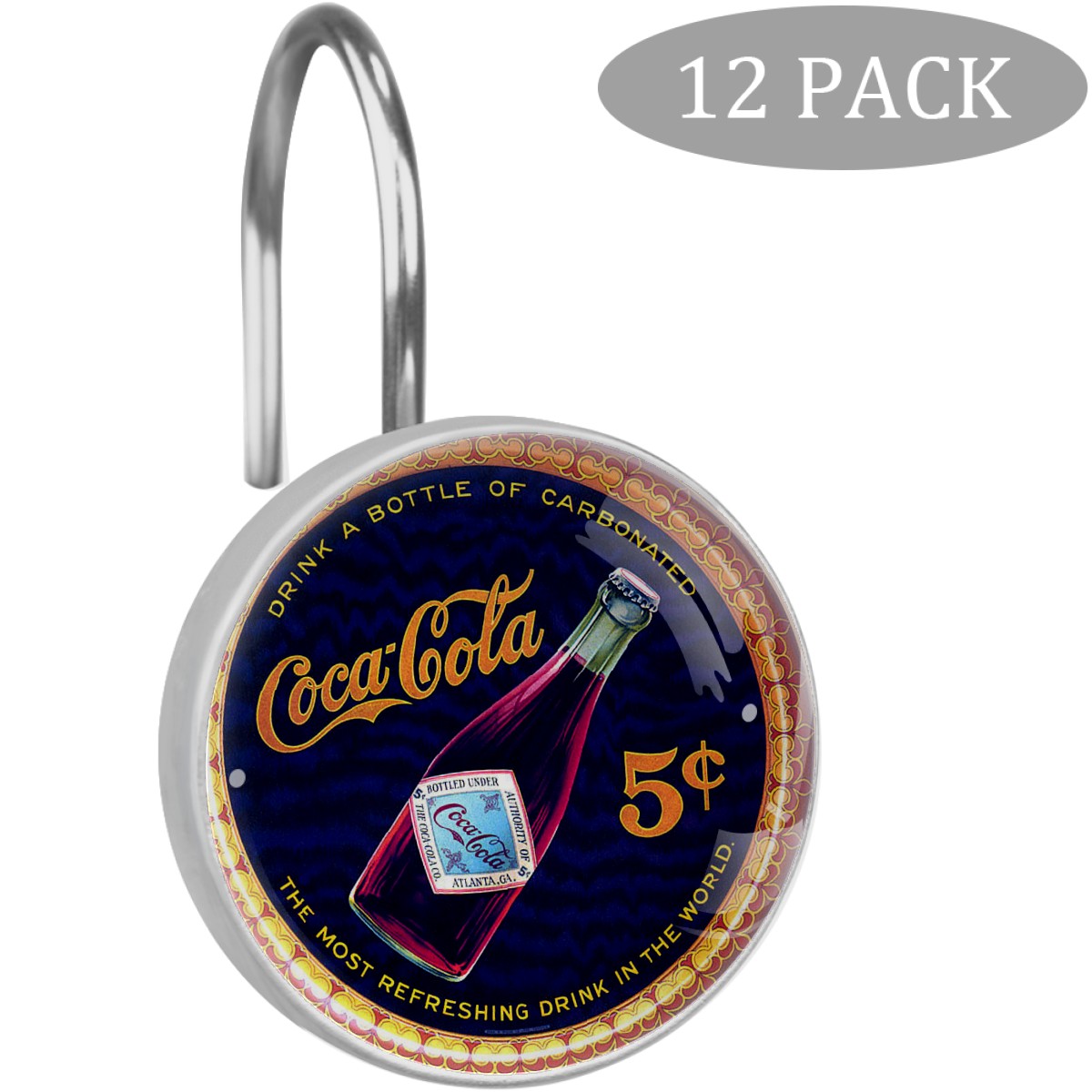 Coca Cola Vintage Poster Shower Curtain Hooks,12PCS Diamond Shaped Shower Curtain Rings for Shower Rods Curtain and Liner Home Decor