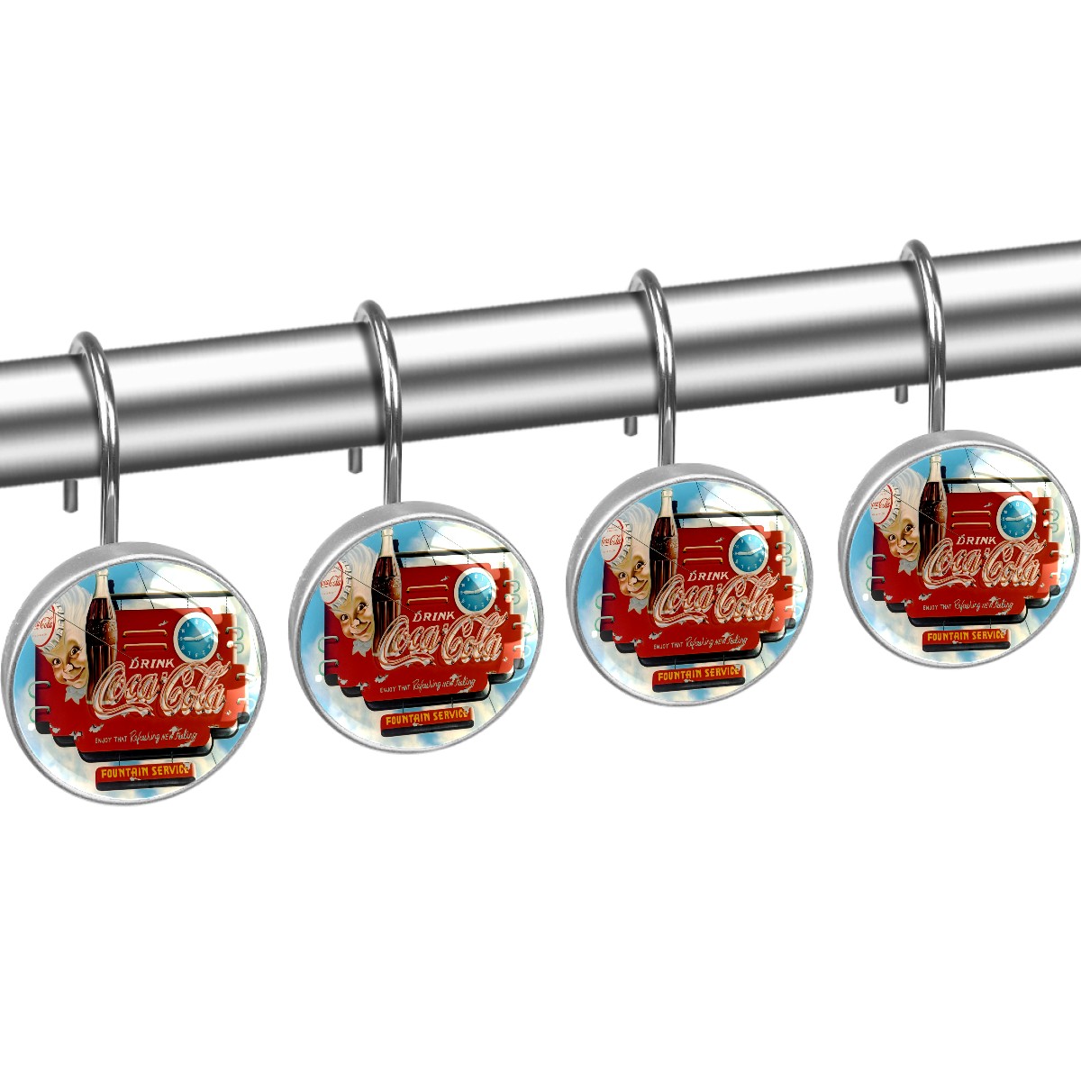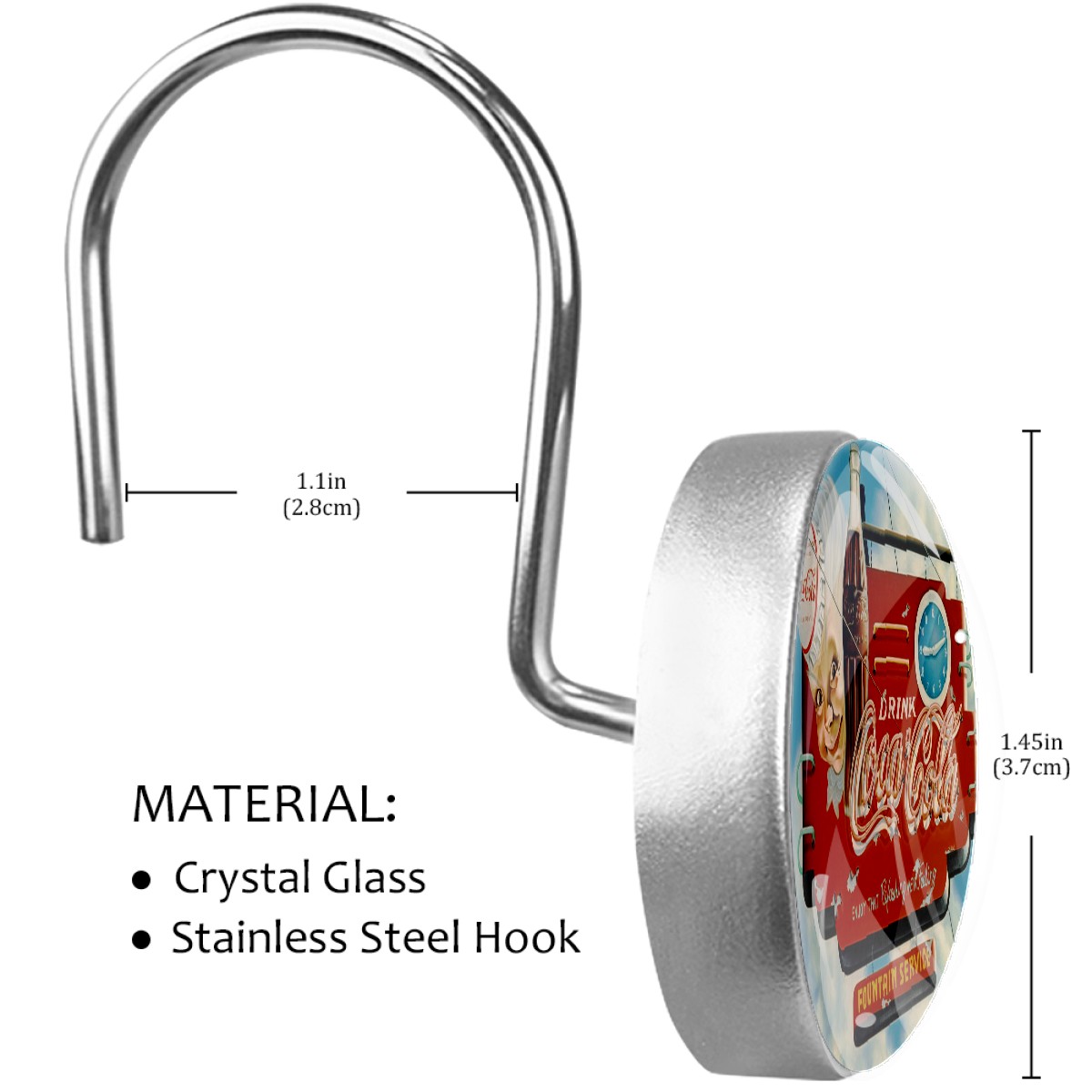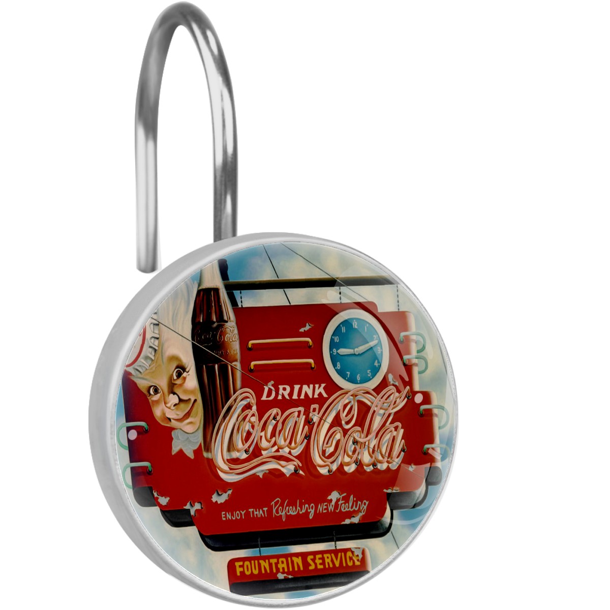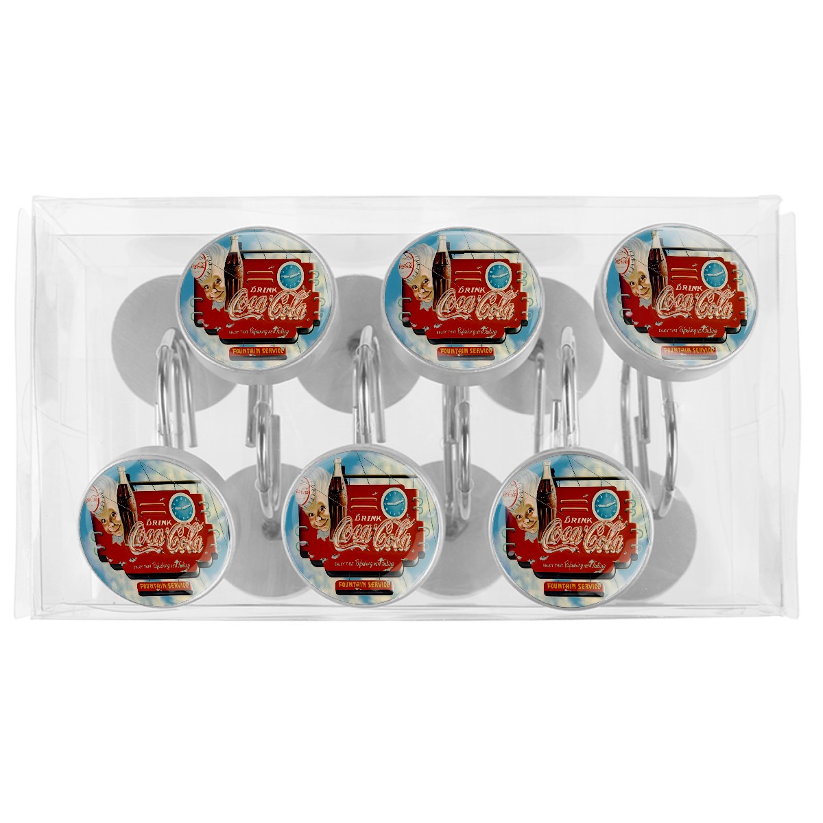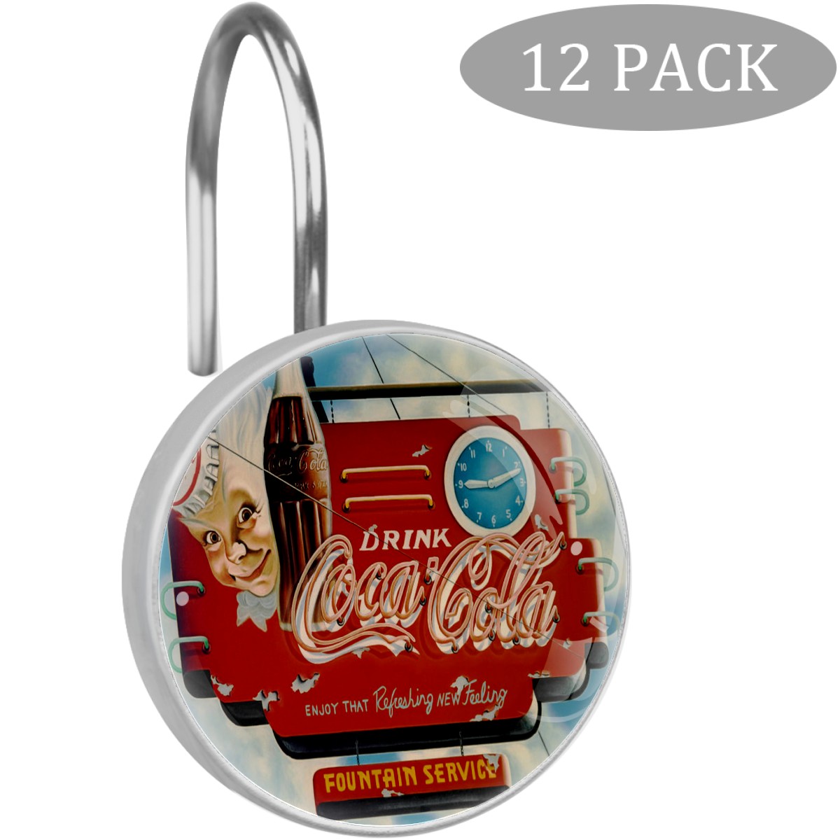 Coca Cola Vintage Coke Shower Curtain Hooks,12PCS Diamond Shaped Shower Curtain Rings for Shower Rods Curtain and Liner Home Decor