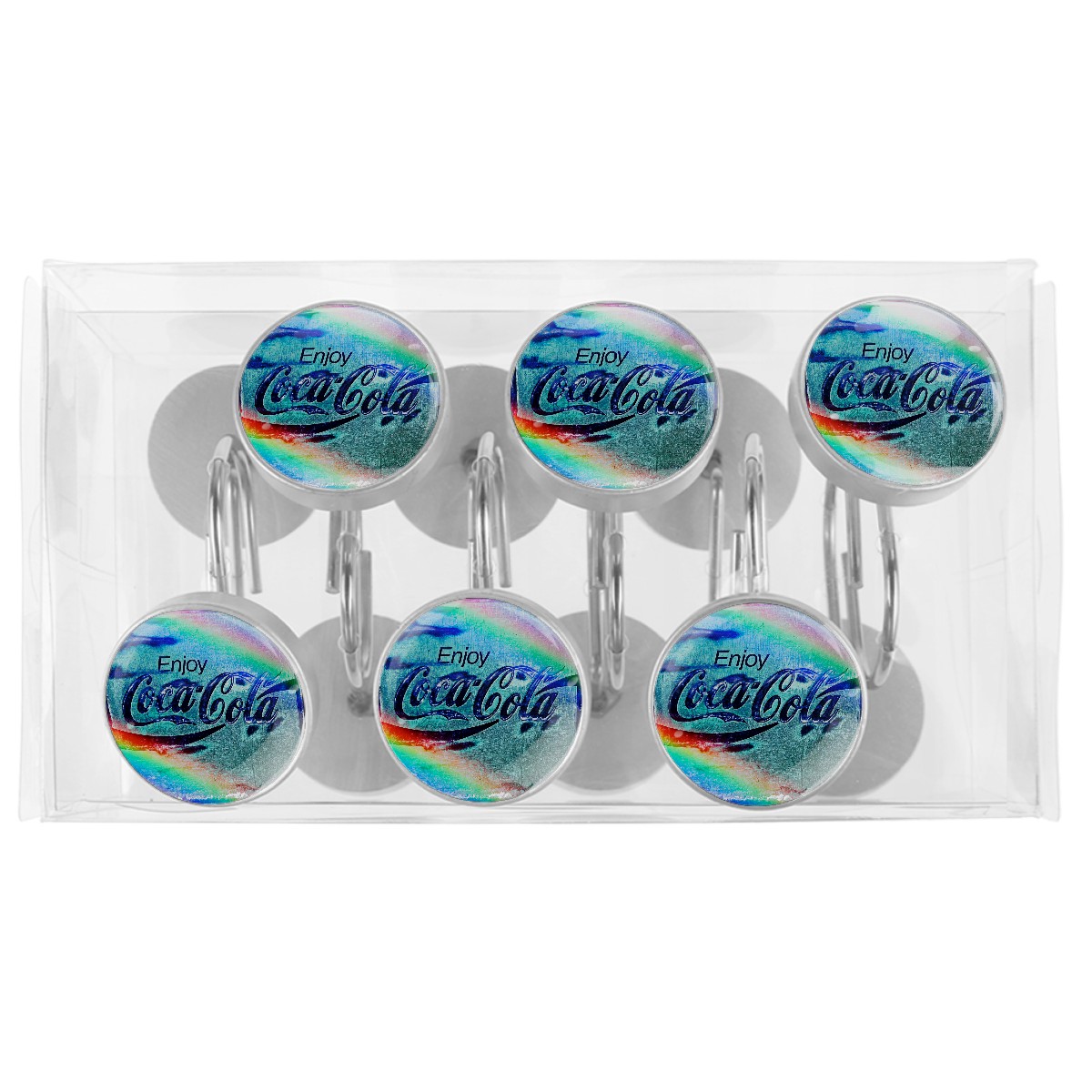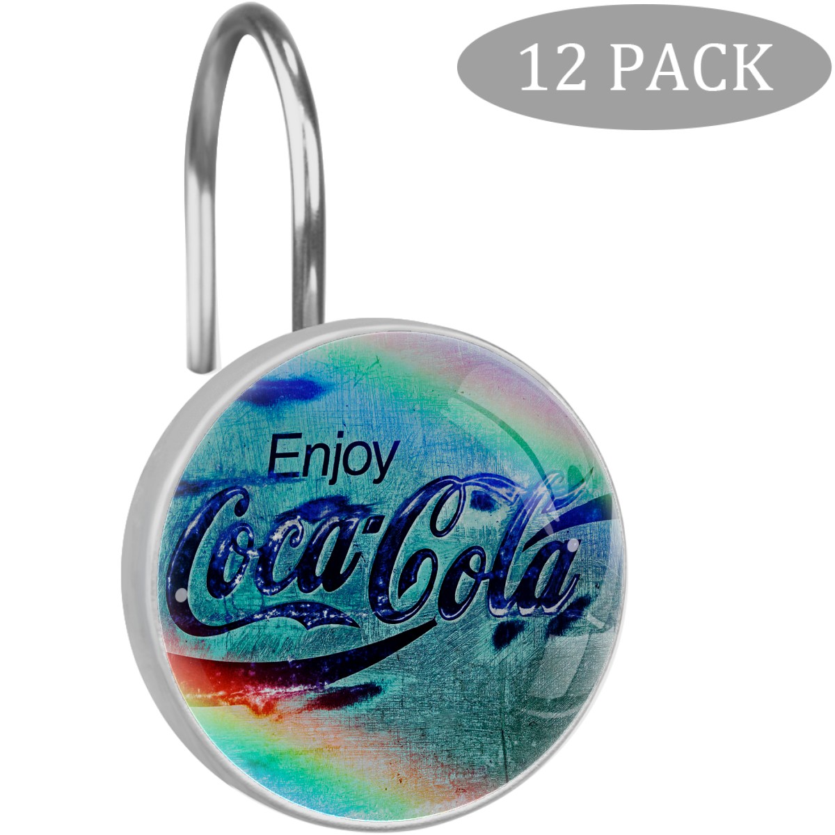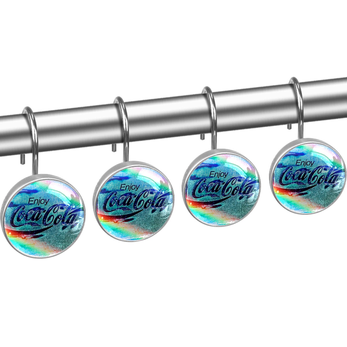 Coca Cola Rainbow Sign Shower Curtain Hooks,12PCS Diamond Shaped Shower Curtain Rings for Shower Rods Curtain and Liner Home Decor