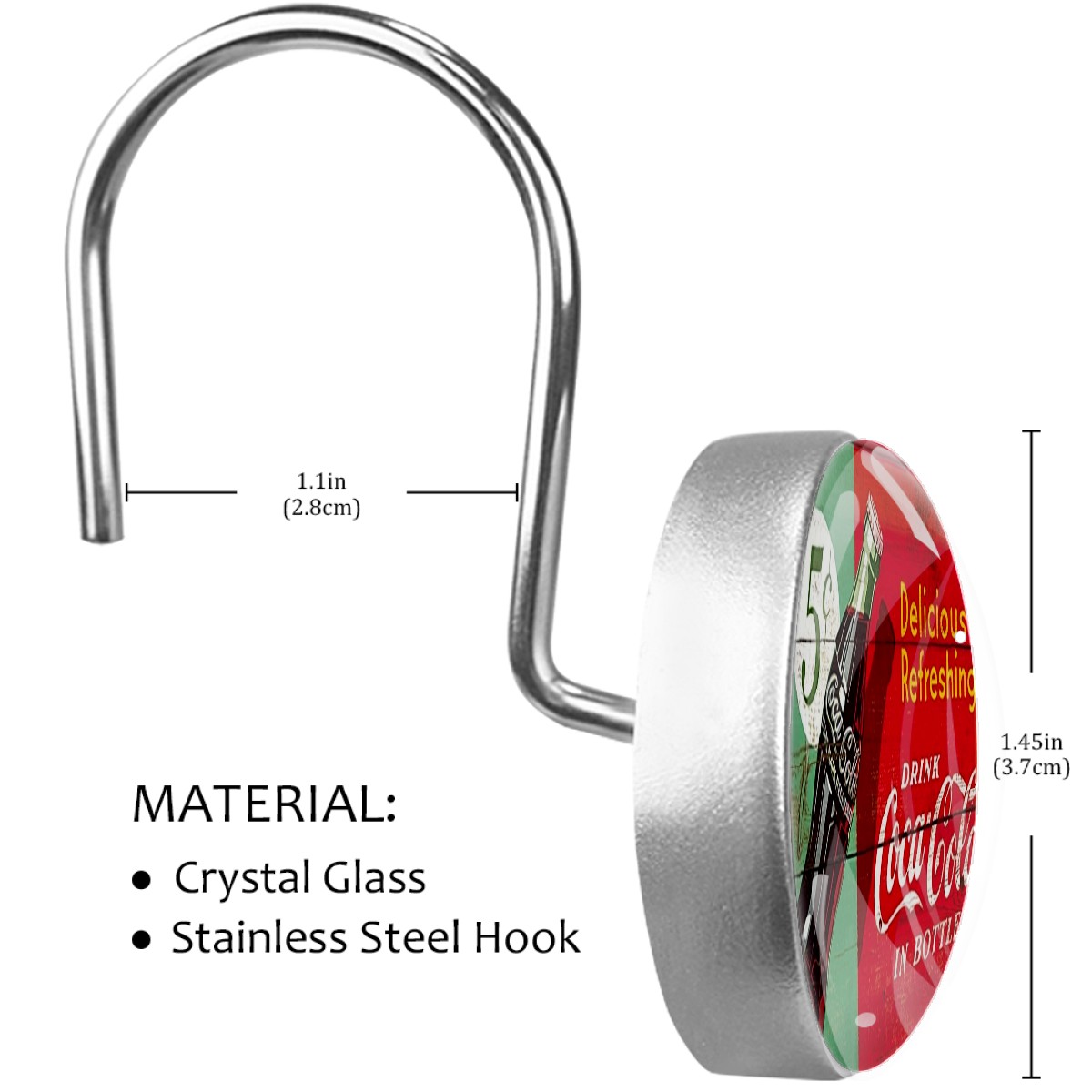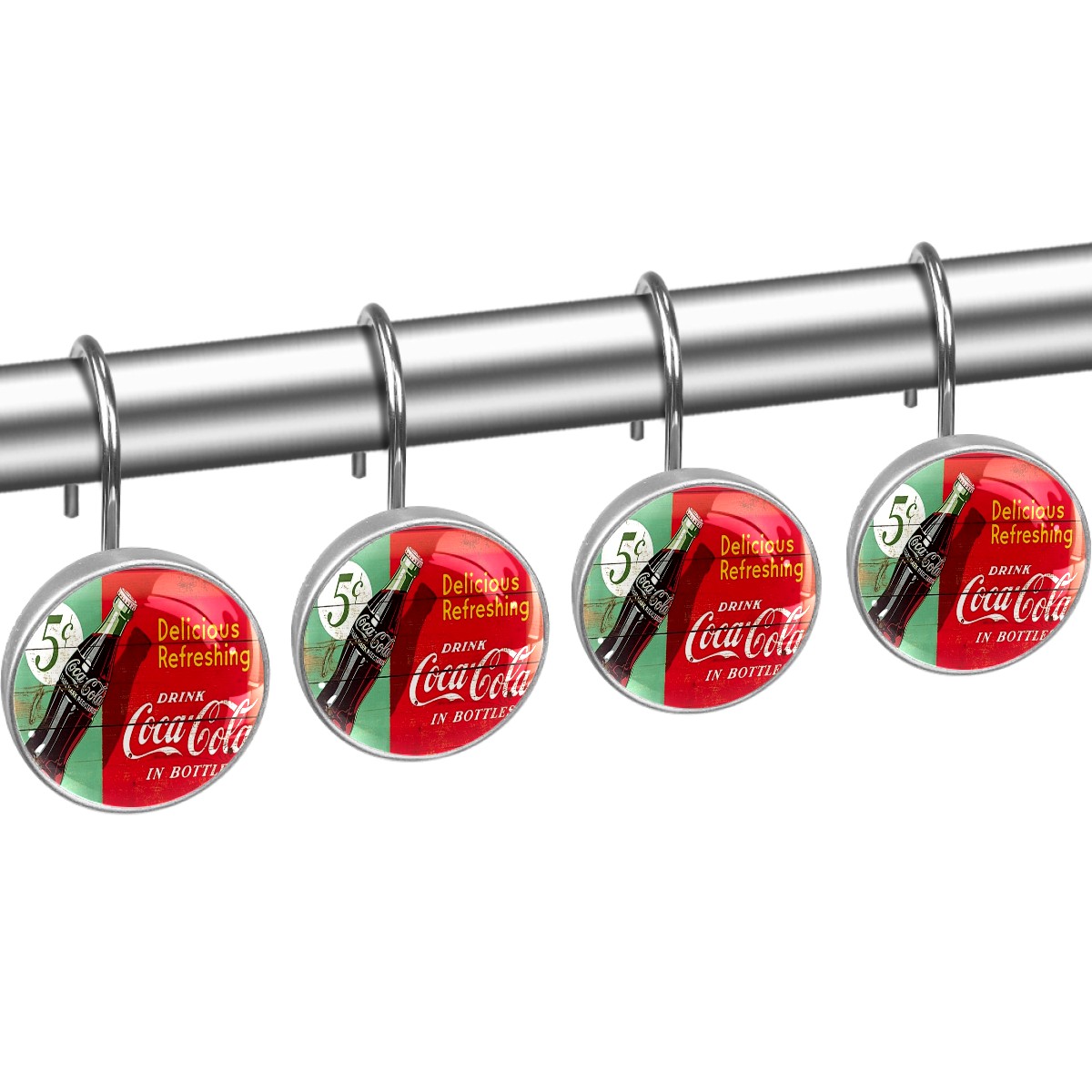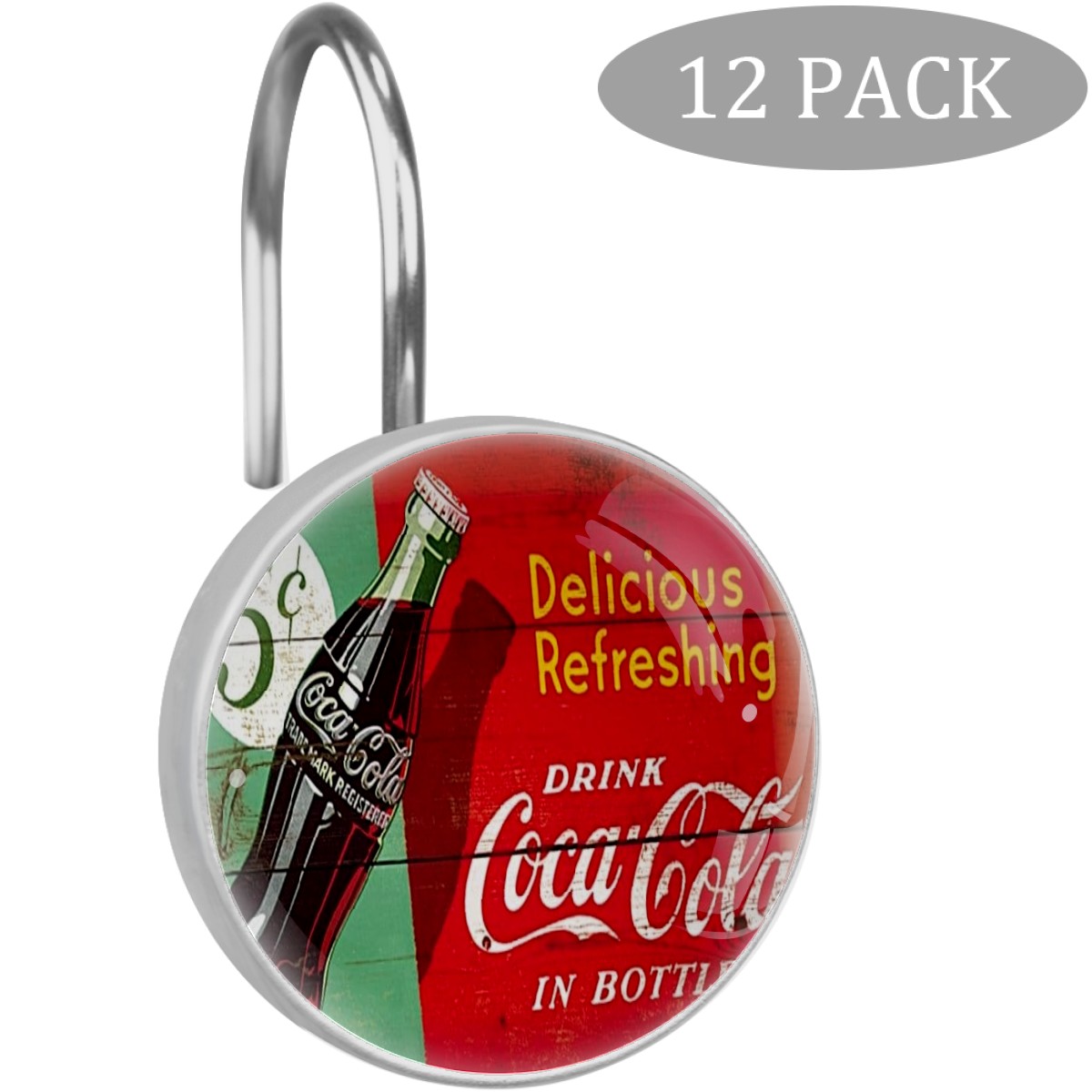Coca Cola Retro Wood Sign Shower Curtain Hooks,12PCS Diamond Shaped Shower Curtain Rings for Shower Rods Curtain and Liner Home Decor