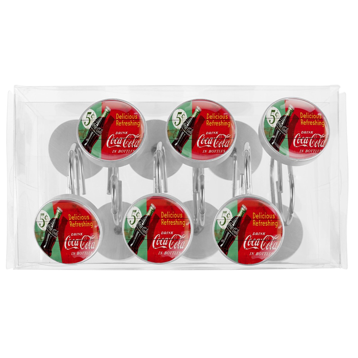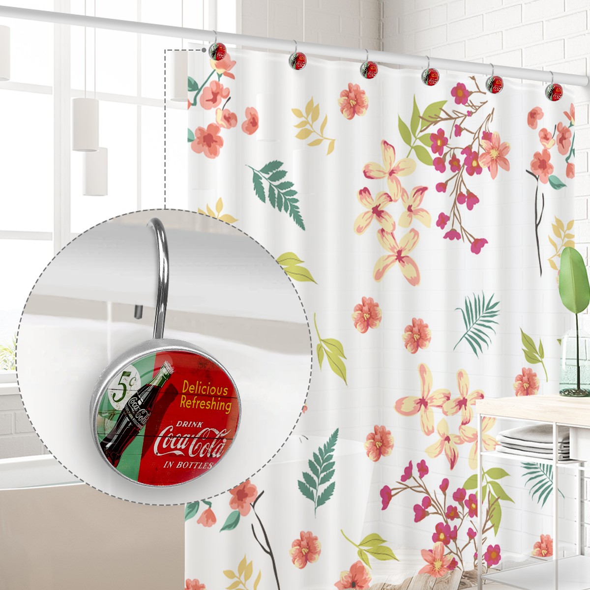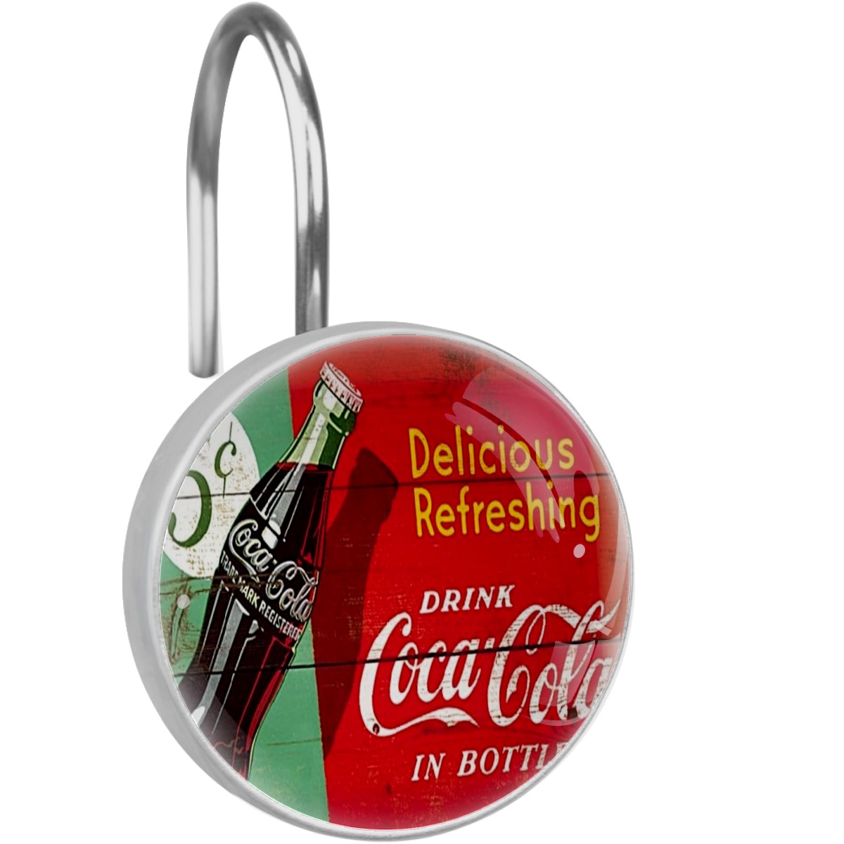 Coca Cola Retro Wood Sign Shower Curtain Hooks,12PCS Diamond Shaped Shower Curtain Rings for Shower Rods Curtain and Liner Home Decor
