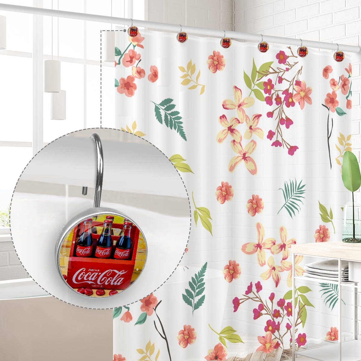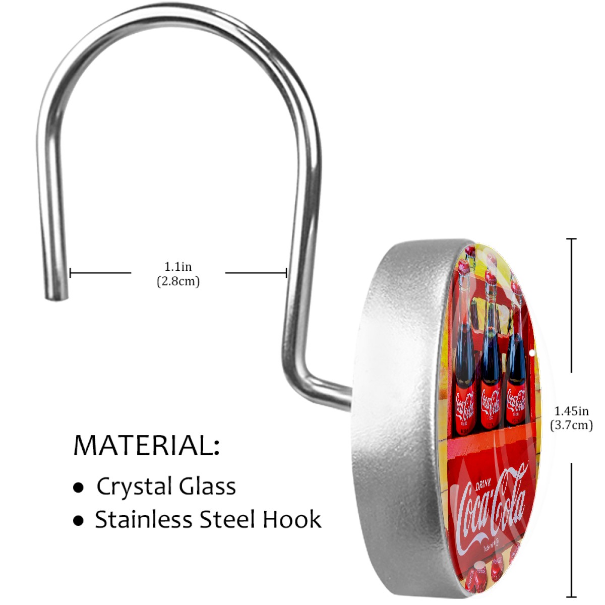 Coca Cola Cokes Shower Curtain Hooks,12PCS Diamond Shaped Shower Curtain Rings for Shower Rods Curtain and Liner Home Decor