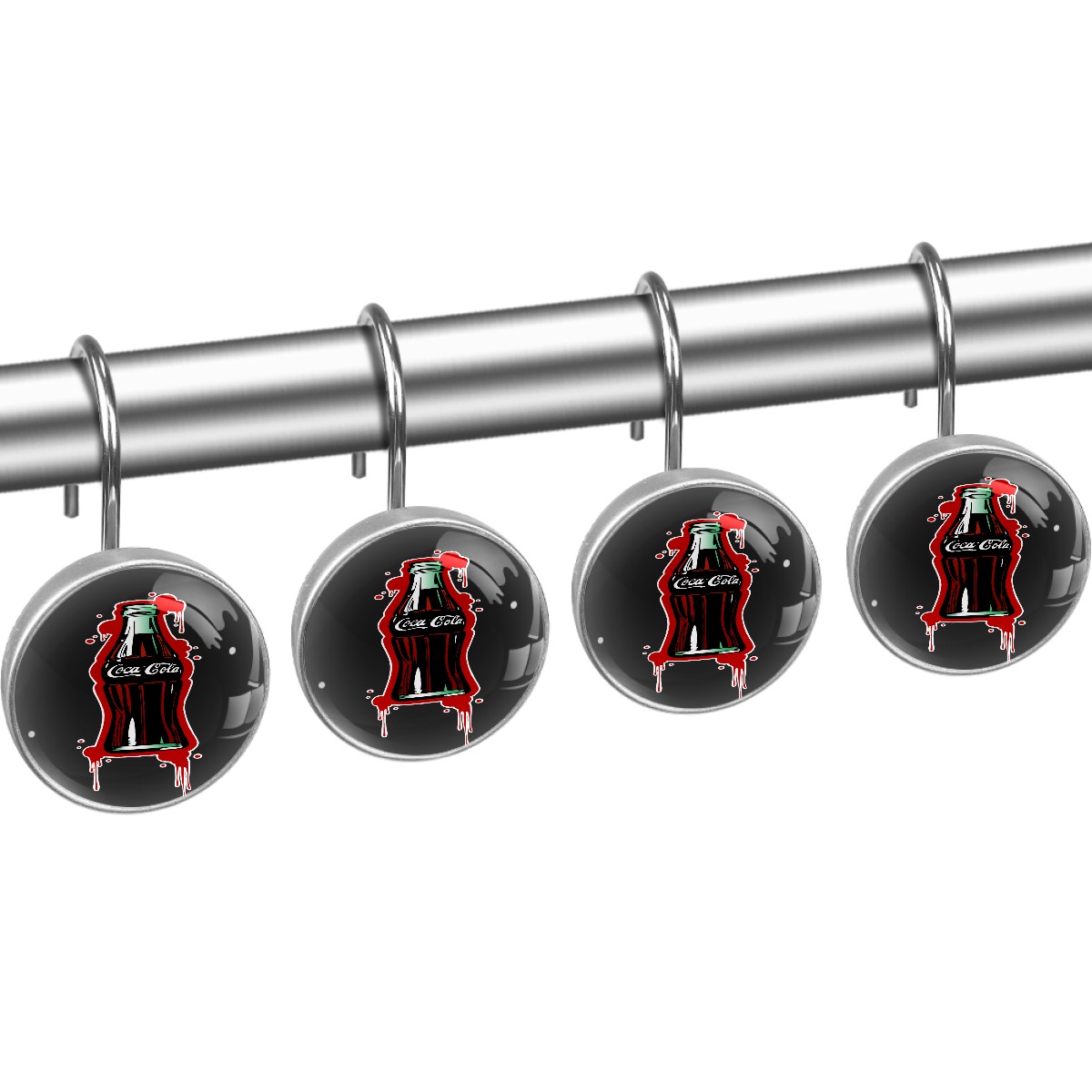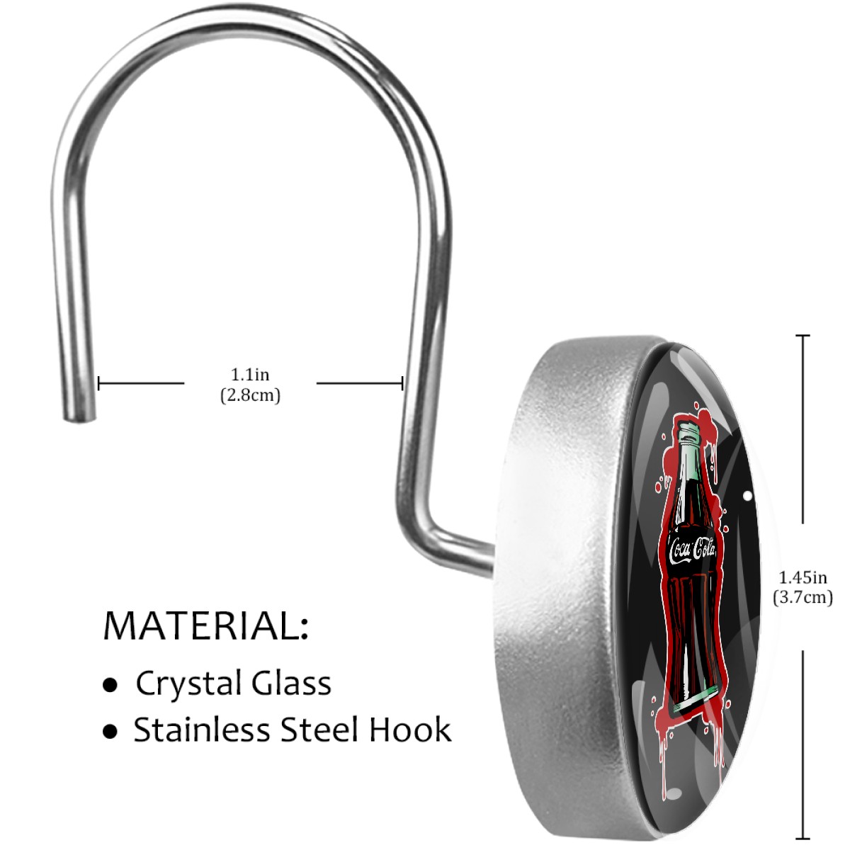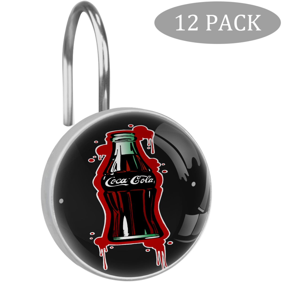 Coca Cola Bottle Shower Curtain Hooks,12PCS Diamond Shaped Shower Curtain Rings for Shower Rods Curtain and Liner Home Decor