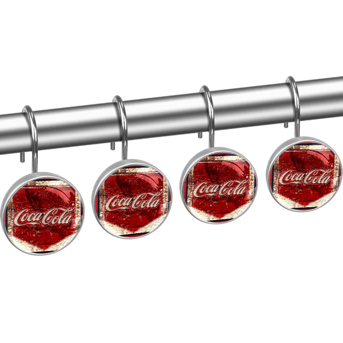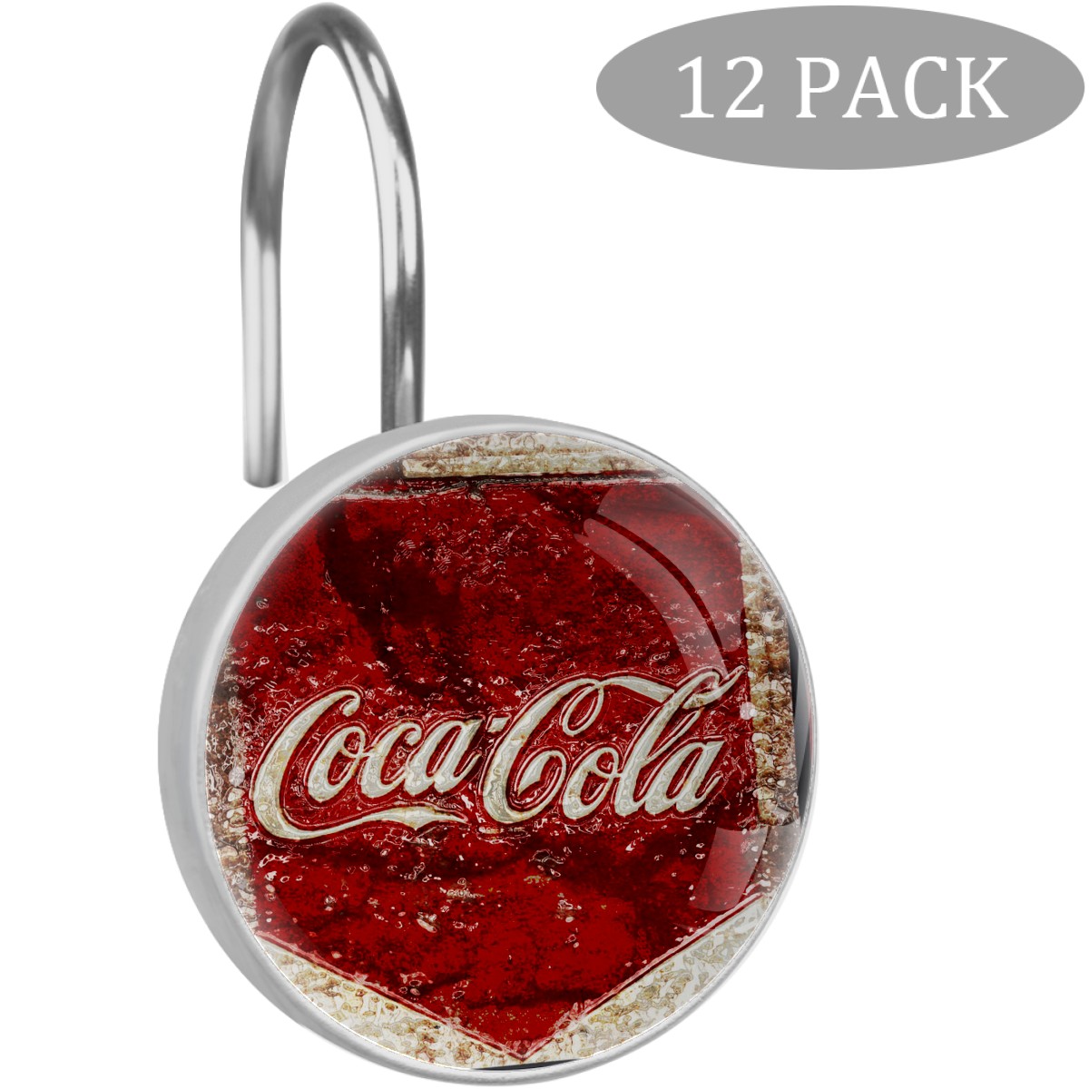 Coca Cola Classic Vintage Rusty Sign Shower Curtain Hooks,12PCS Diamond Shaped Shower Curtain Rings for Shower Rods Curtain and Liner Home Decor