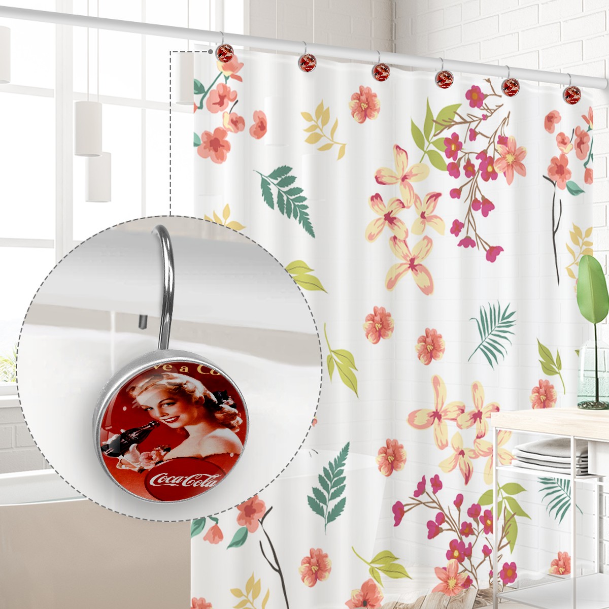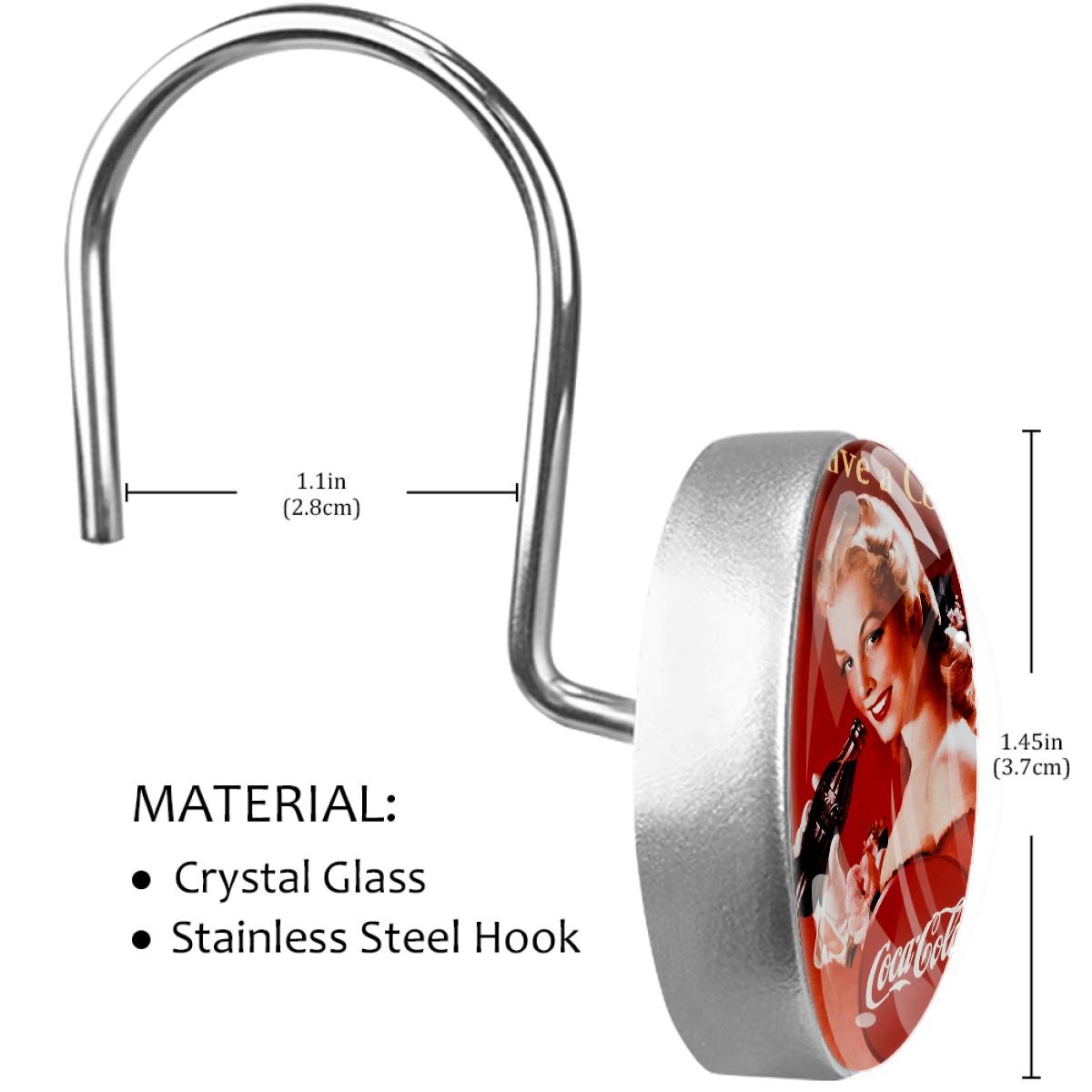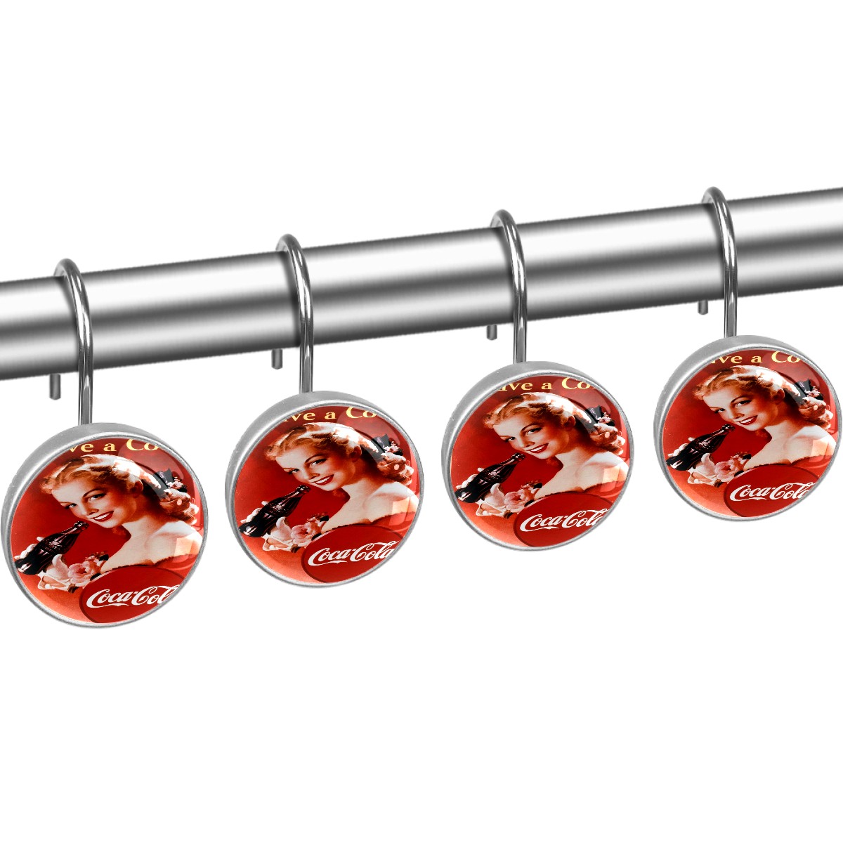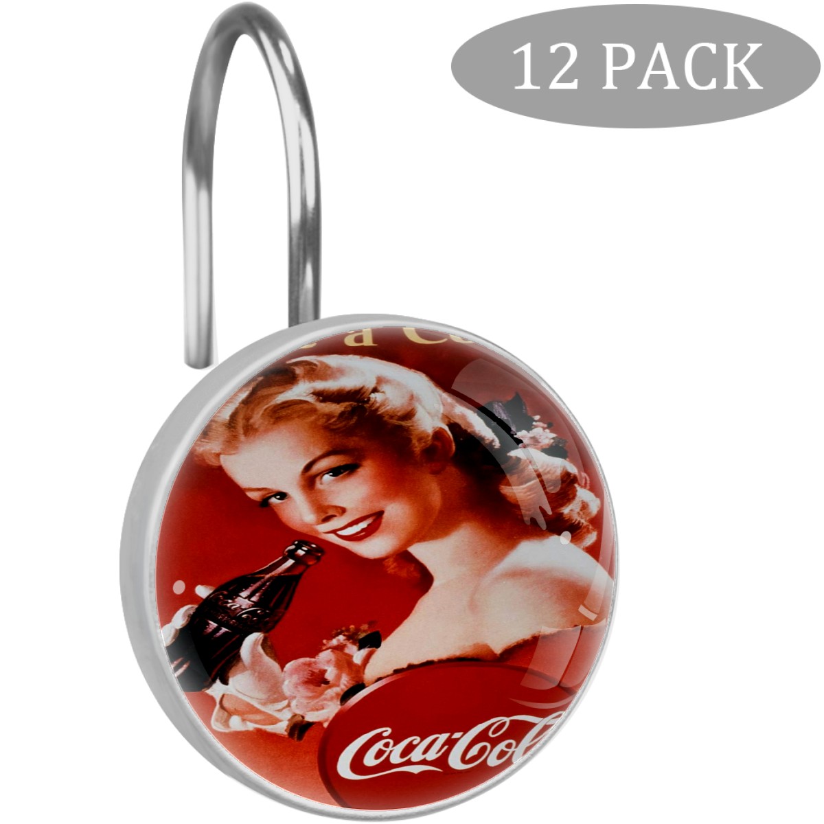 Coca Cola Coke Poster Vintage Shower Curtain Hooks,12PCS Diamond Shaped Shower Curtain Rings for Shower Rods Curtain and Liner Home Decor