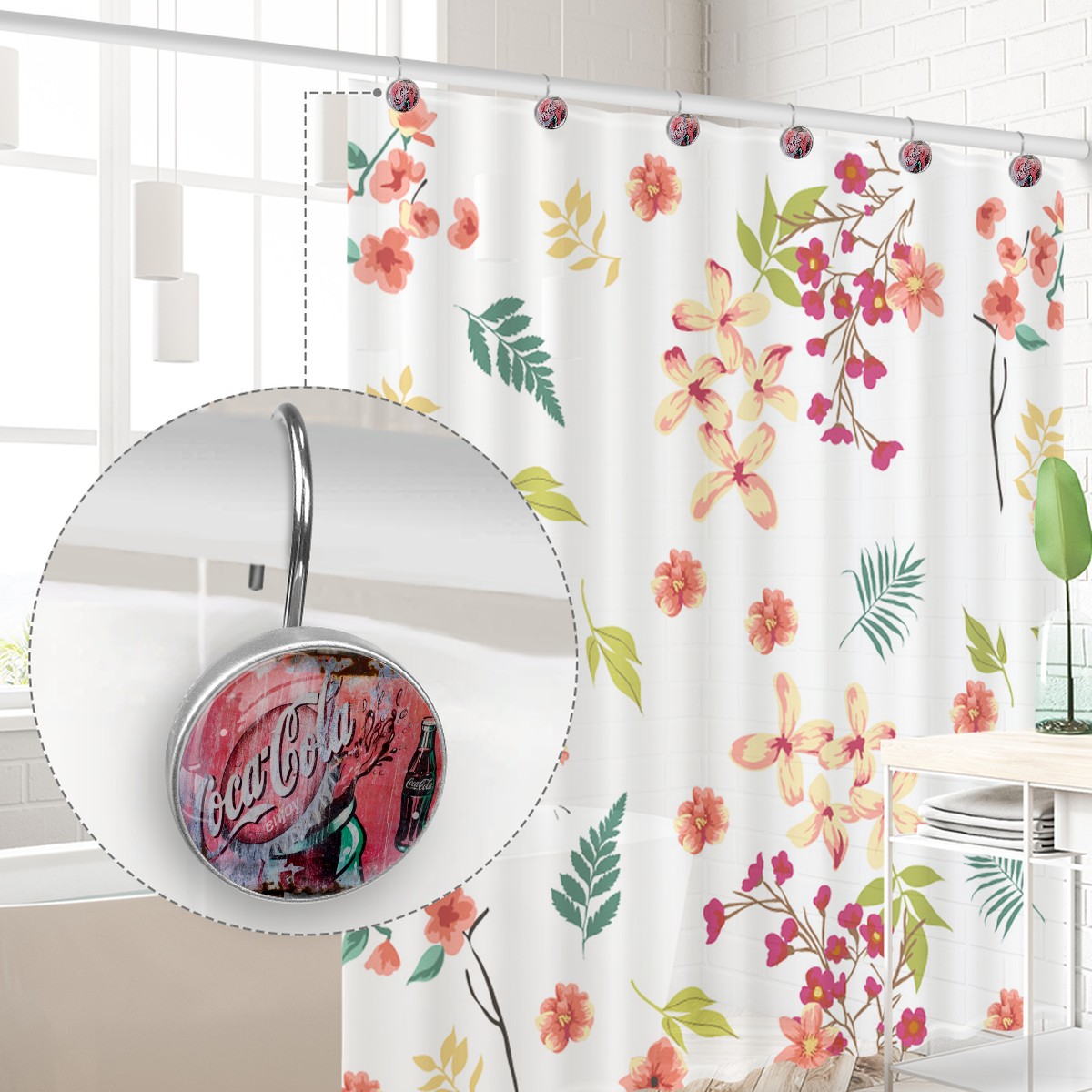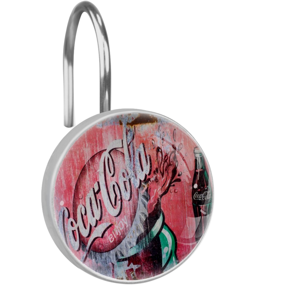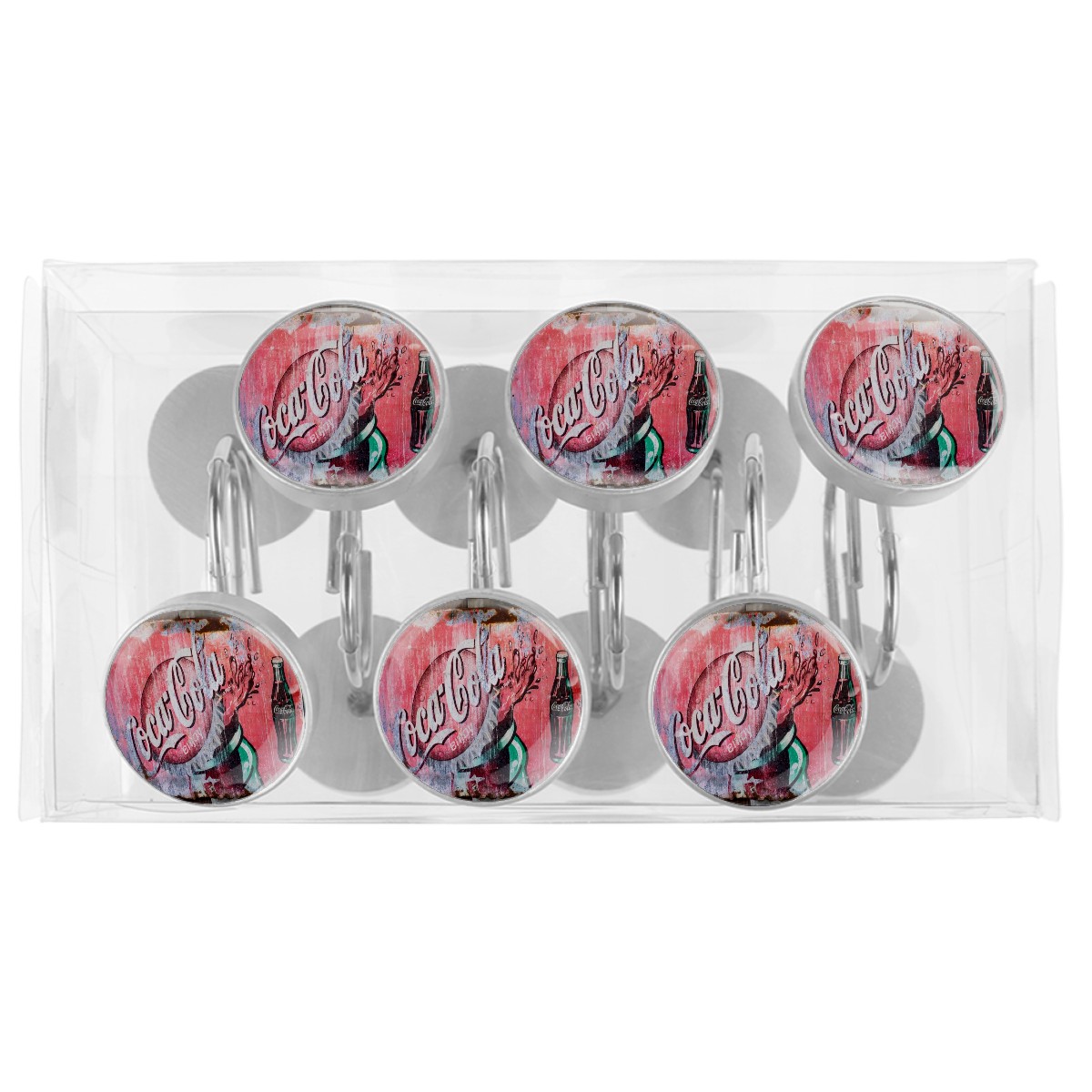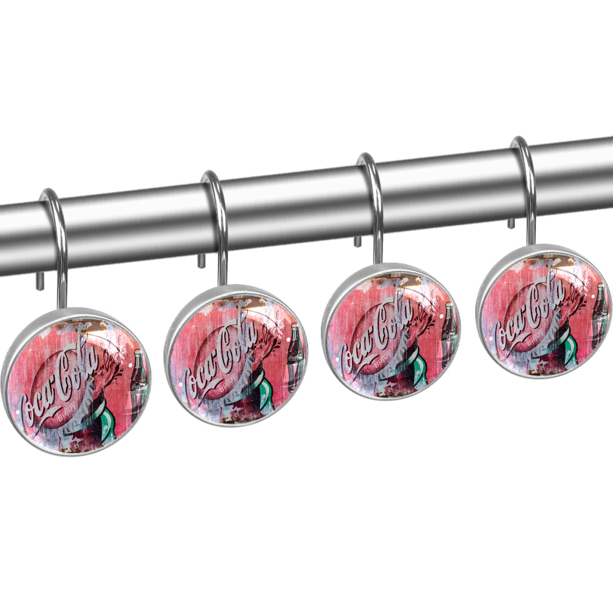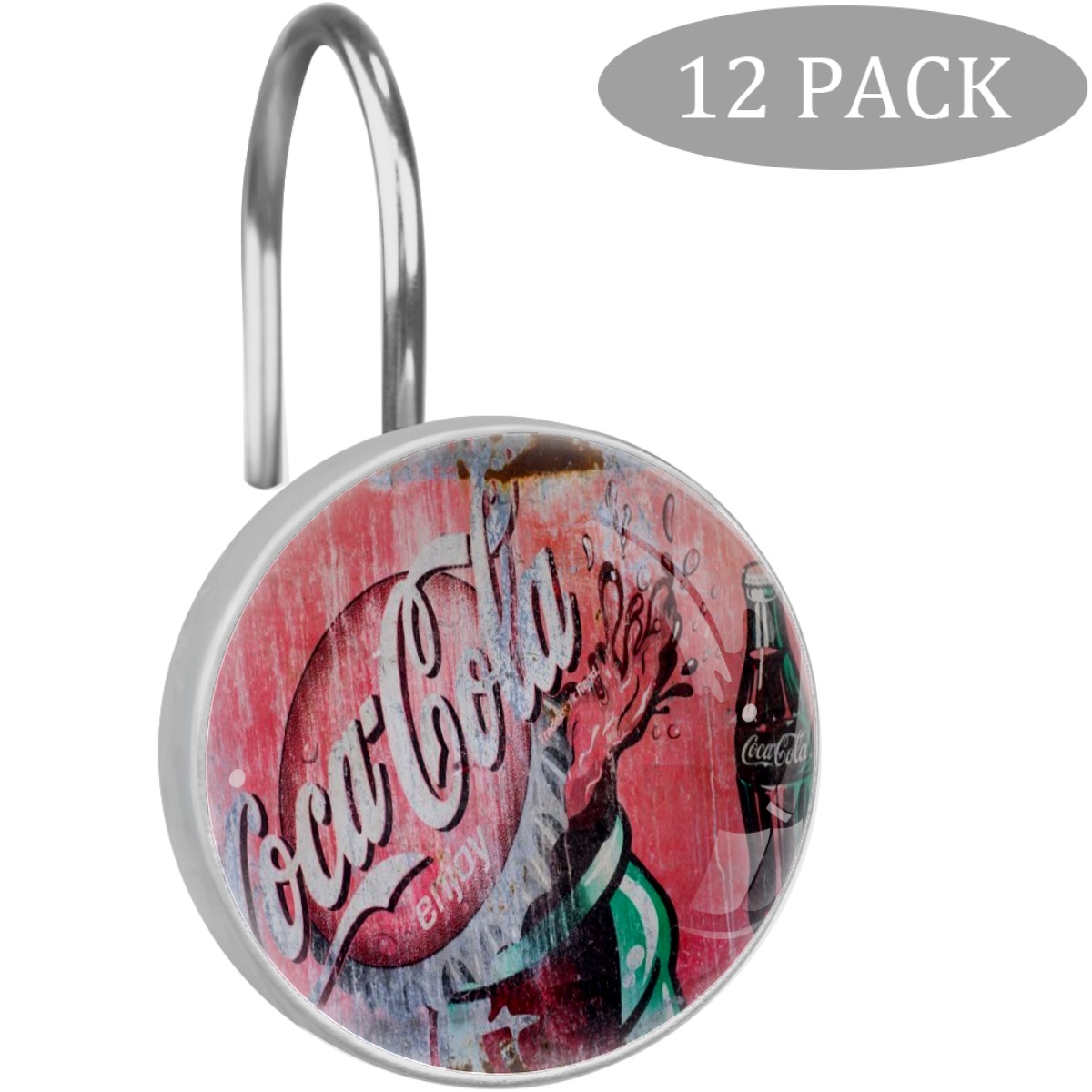 Classic Coca Cola Sign Shower Curtain Hooks,12PCS Diamond Shaped Shower Curtain Rings for Shower Rods Curtain and Liner Home Decor