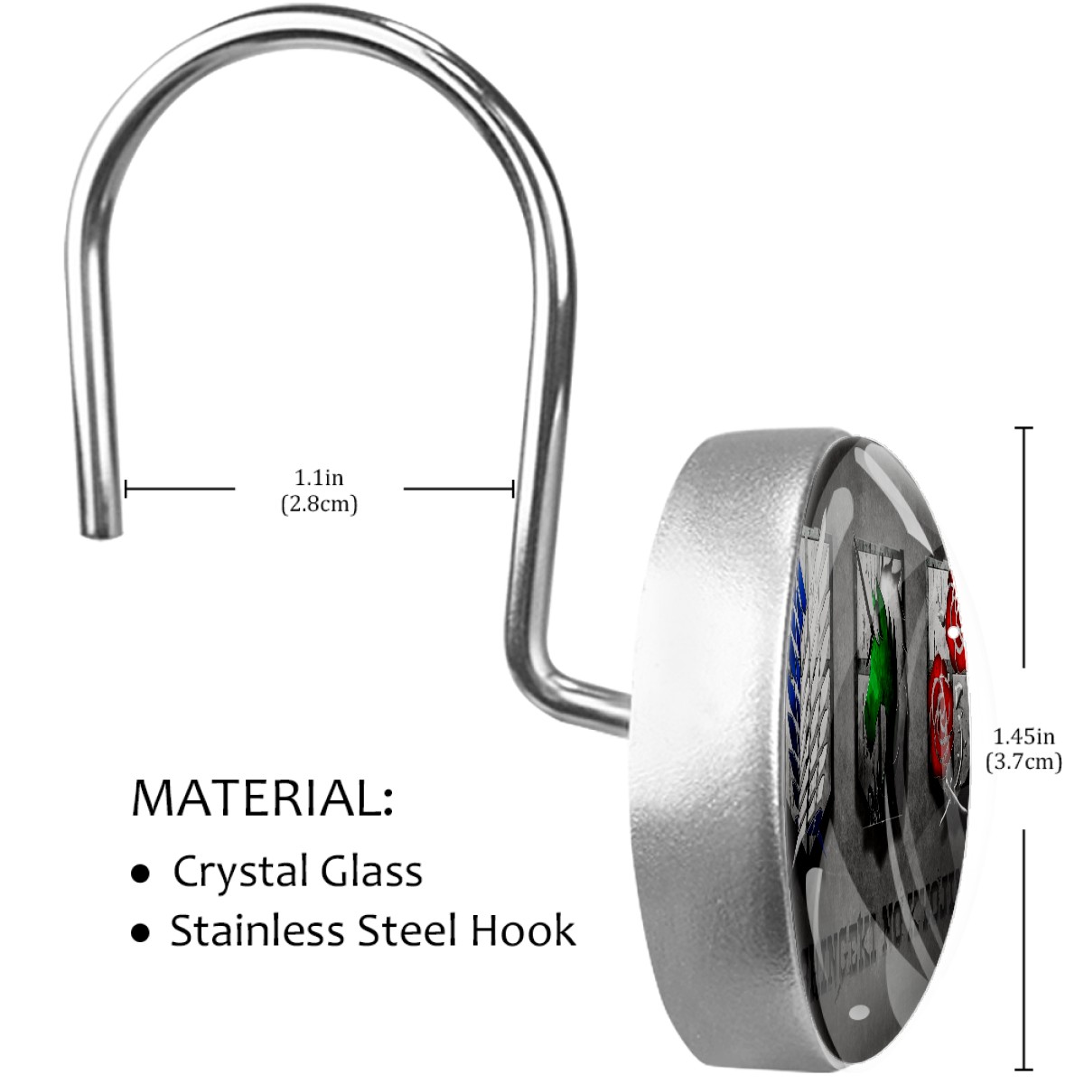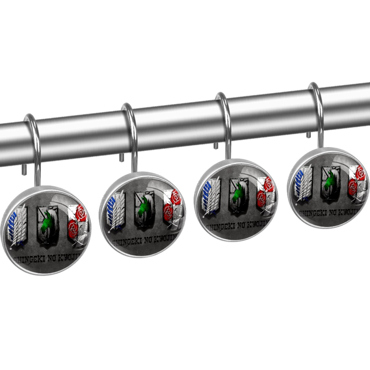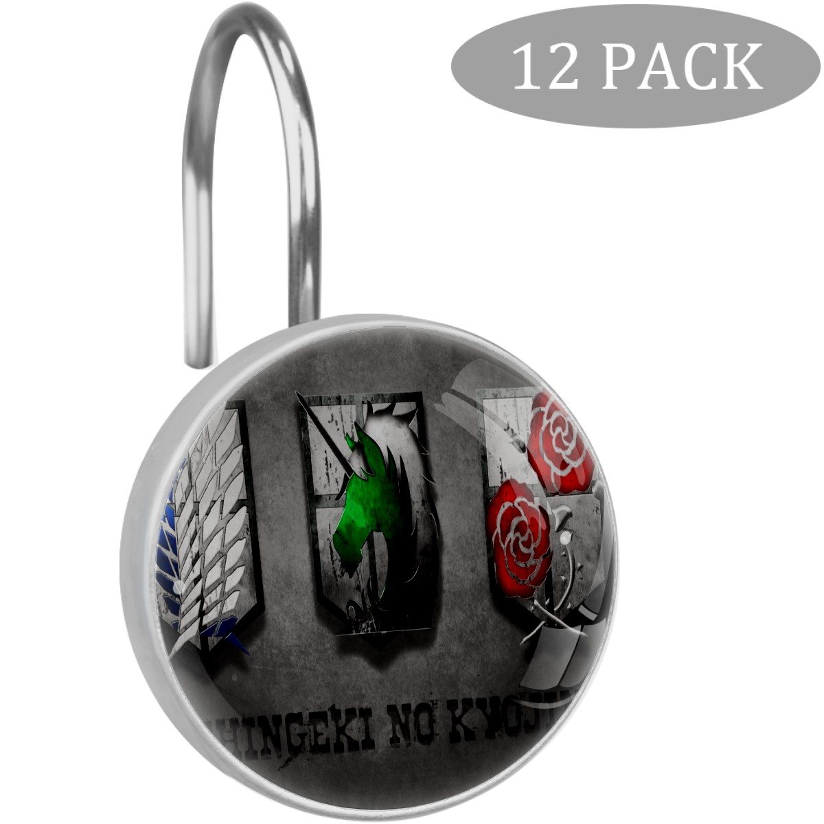 Attack On Titan Japanese Anime Shower Curtain Hooks,12PCS Diamond Shaped Shower Curtain Rings for Shower Rods Curtain and Liner Home Decor