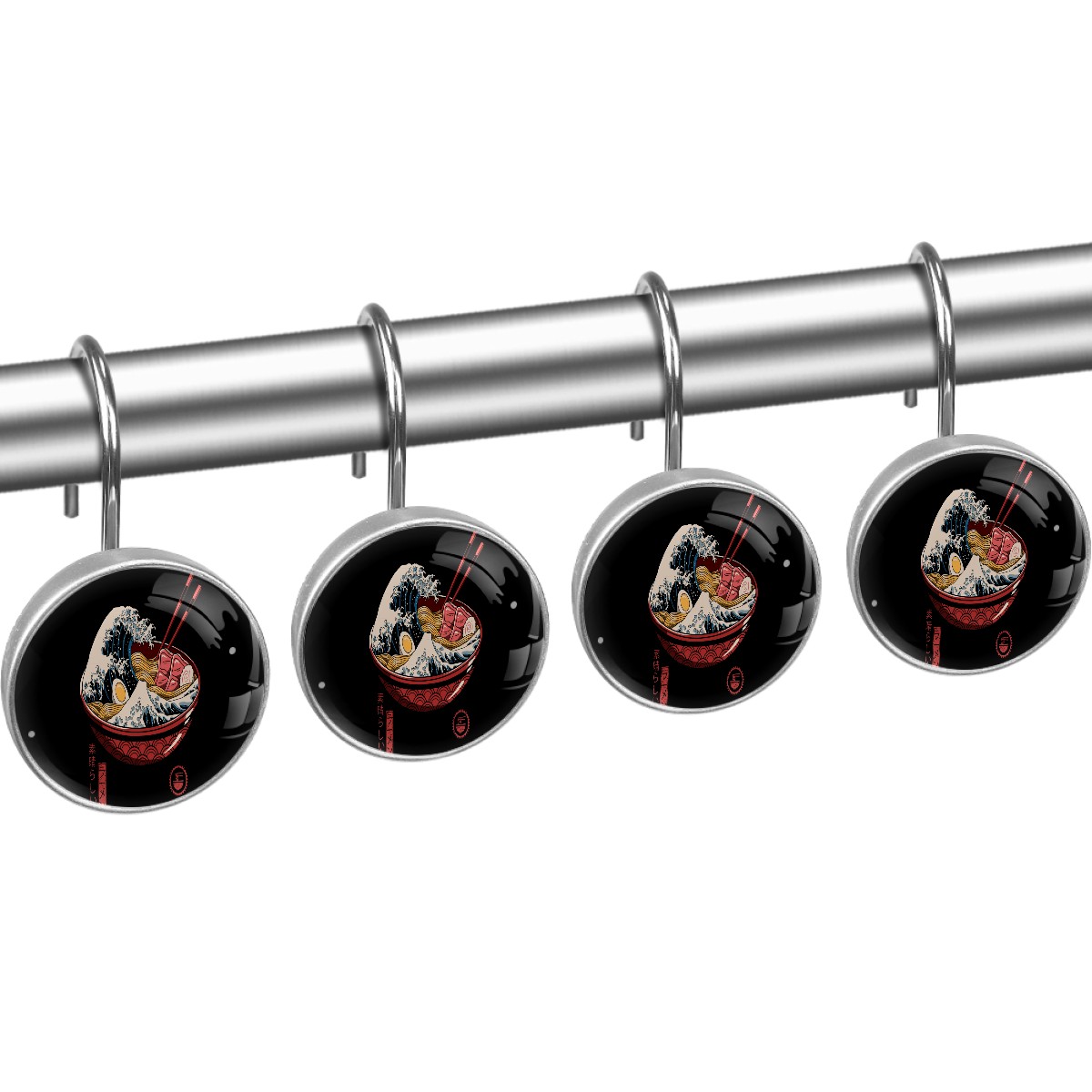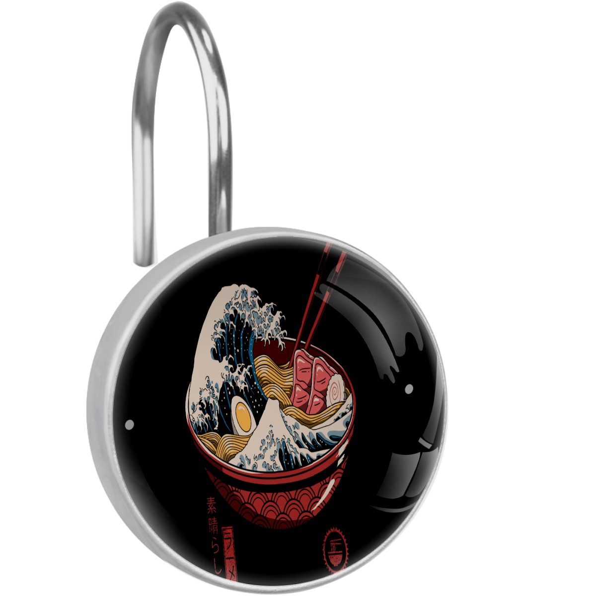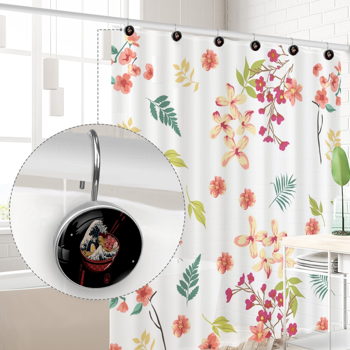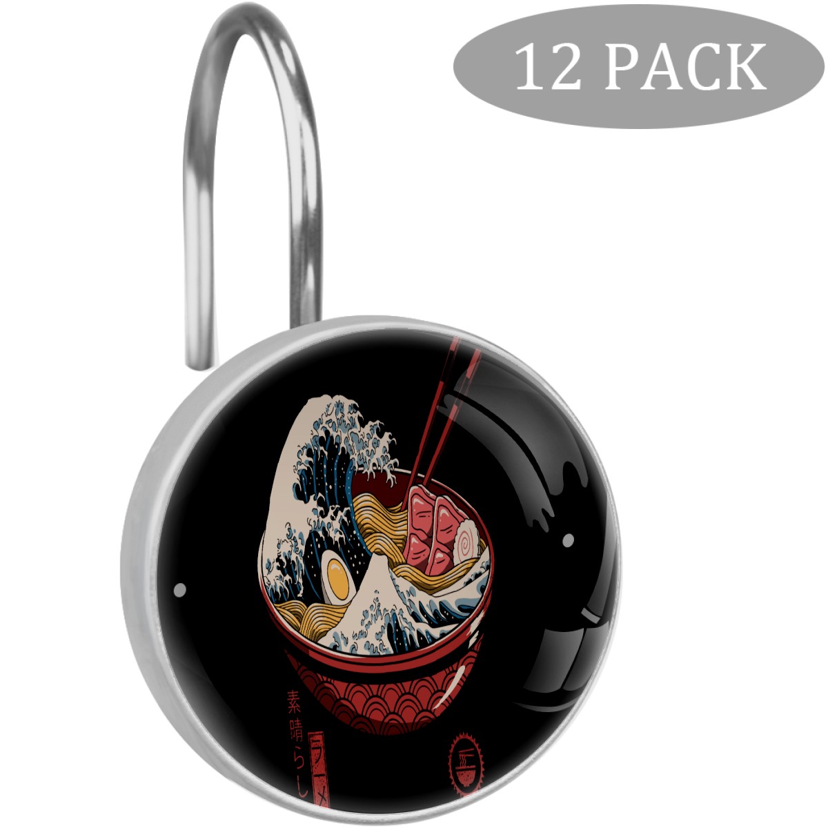 Funny Japanese Wave With Sushi Shower Curtain Hooks,12PCS Diamond Shaped Shower Curtain Rings for Shower Rods Curtain and Liner Home Decor