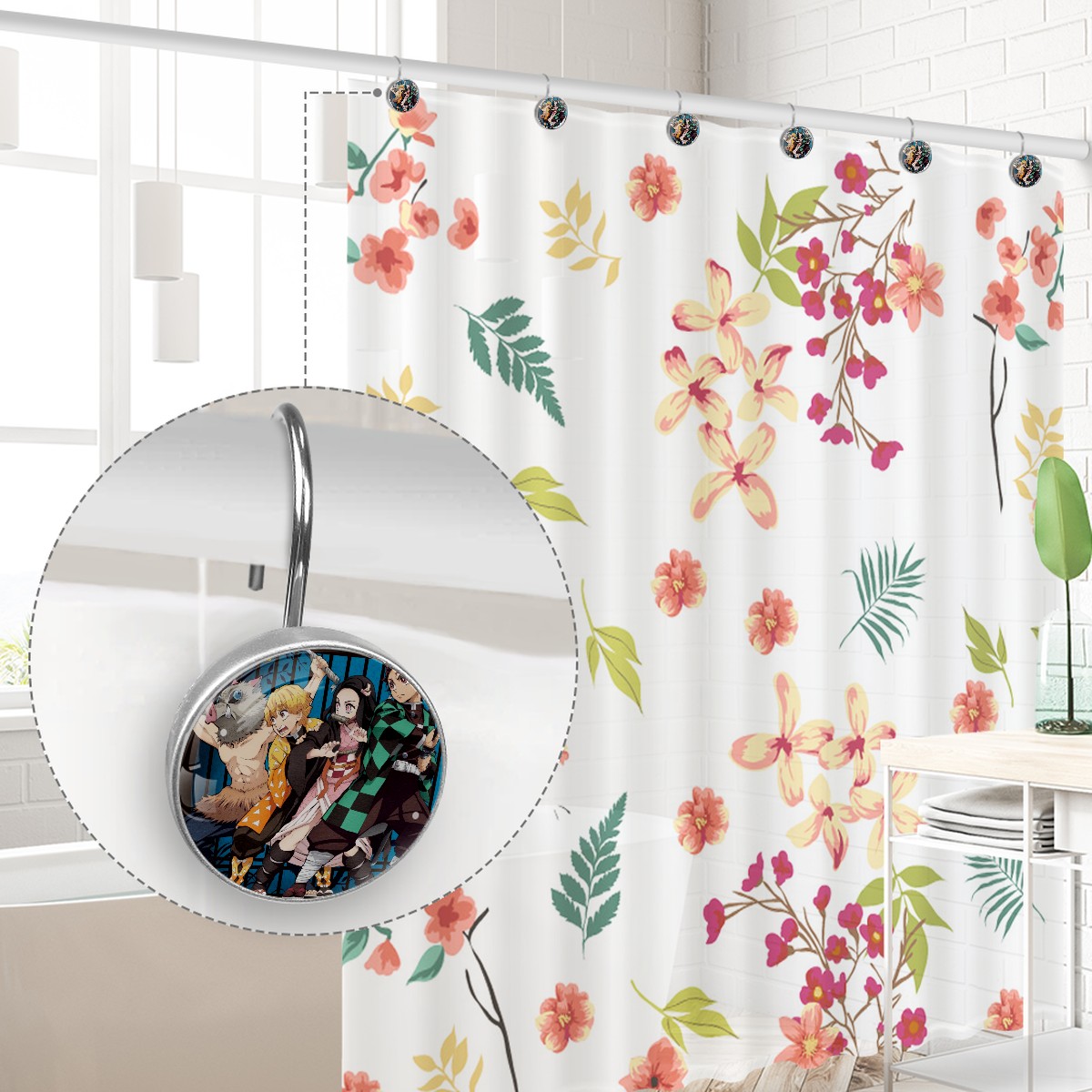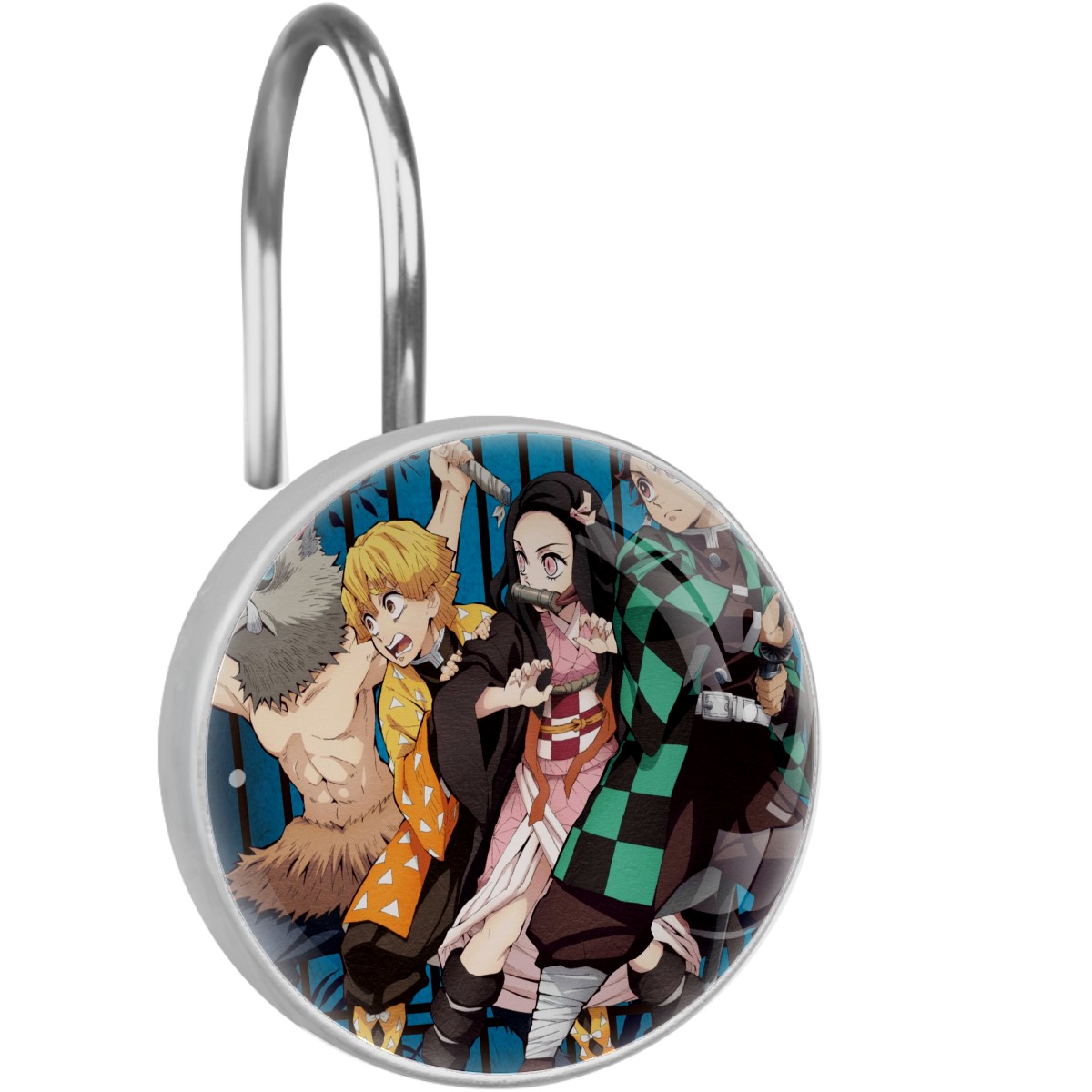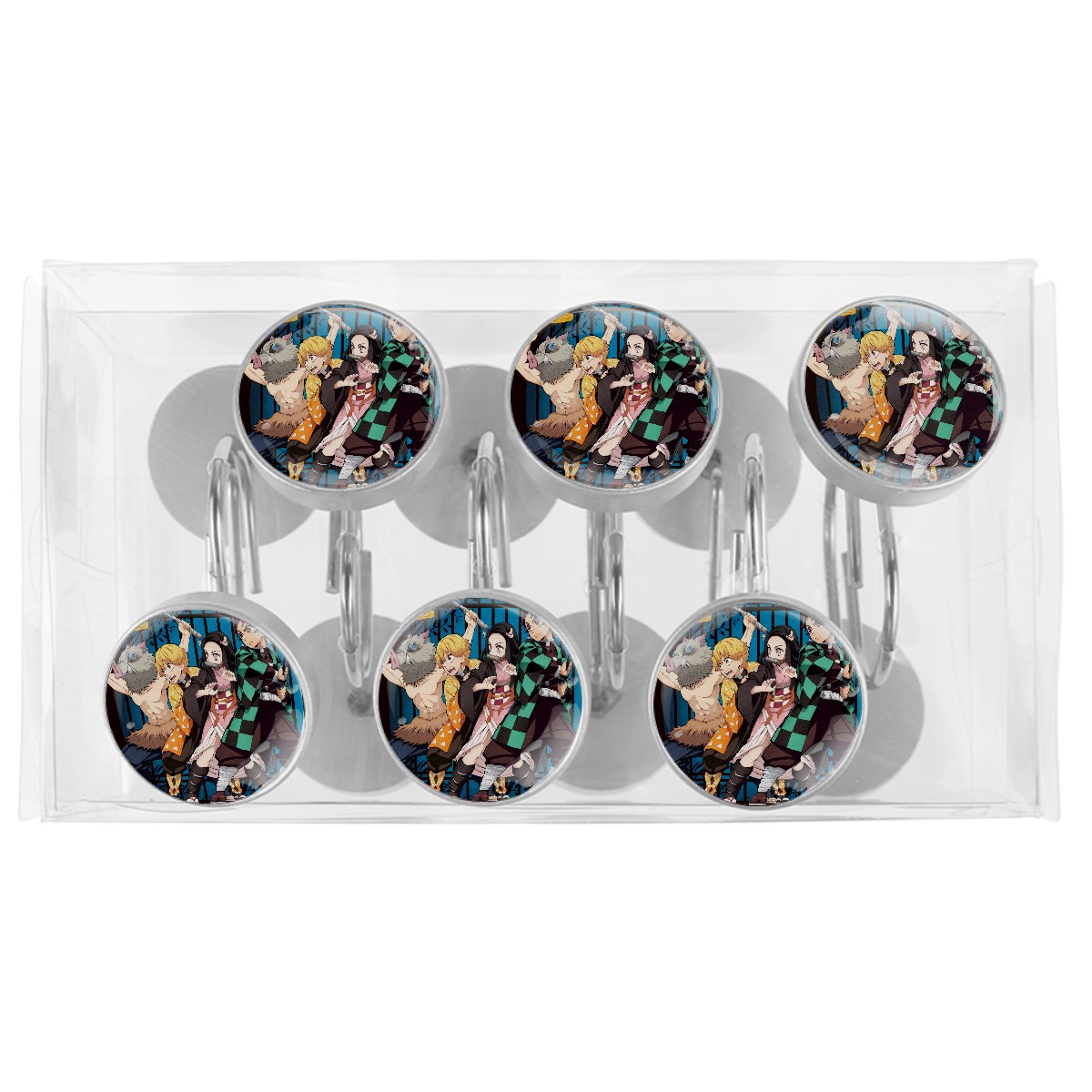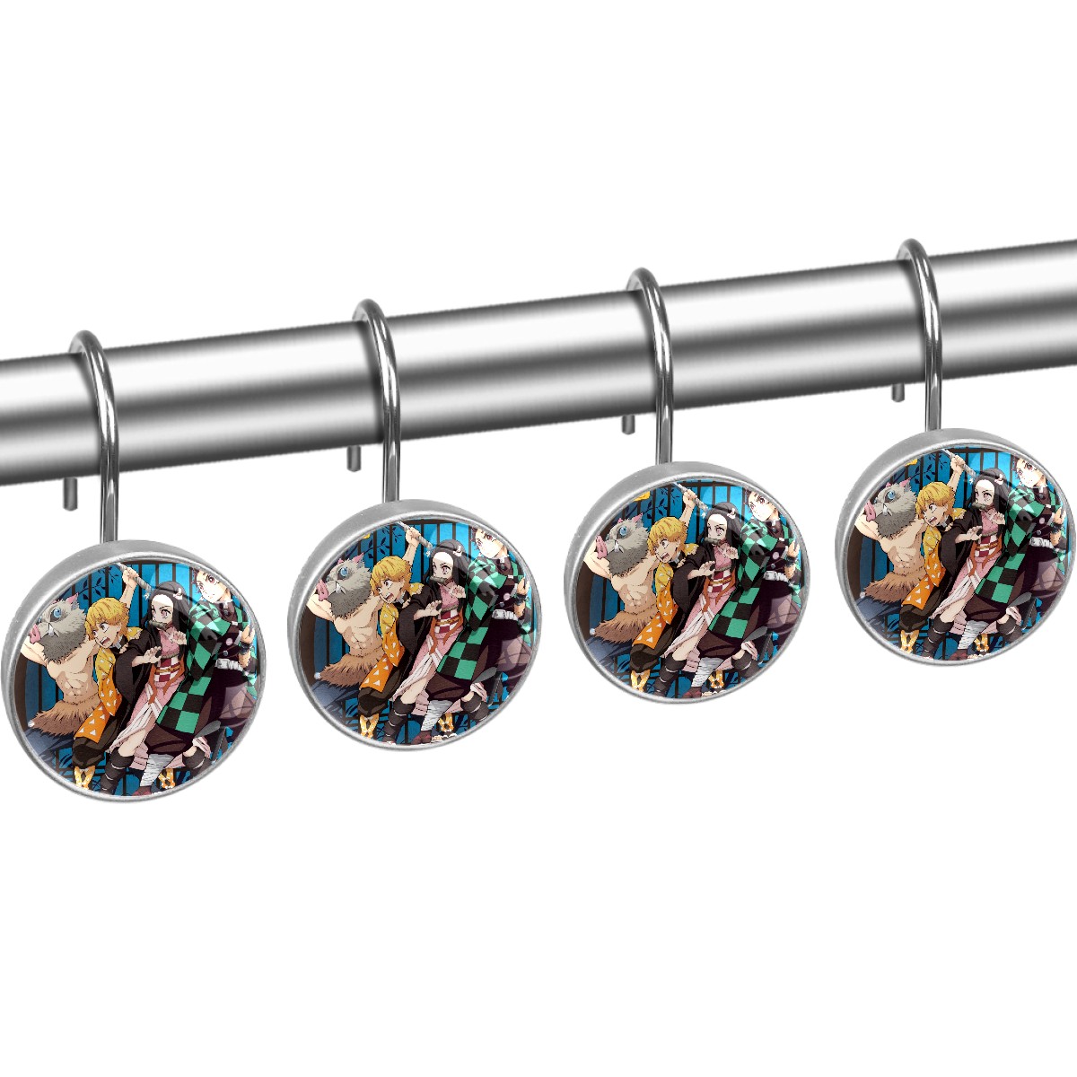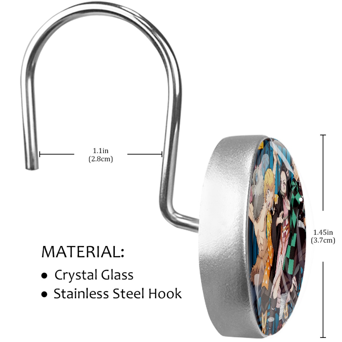Anime Demon Slayer Manga Shower Curtain Hooks,12PCS Diamond Shaped Shower Curtain Rings for Shower Rods Curtain and Liner Home Decor
