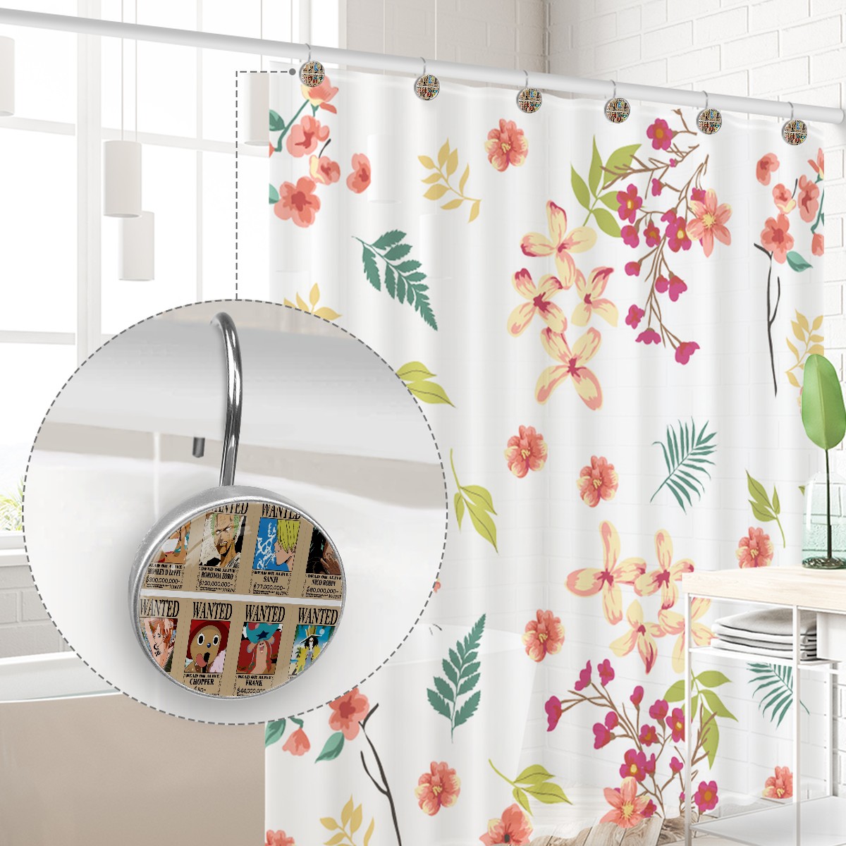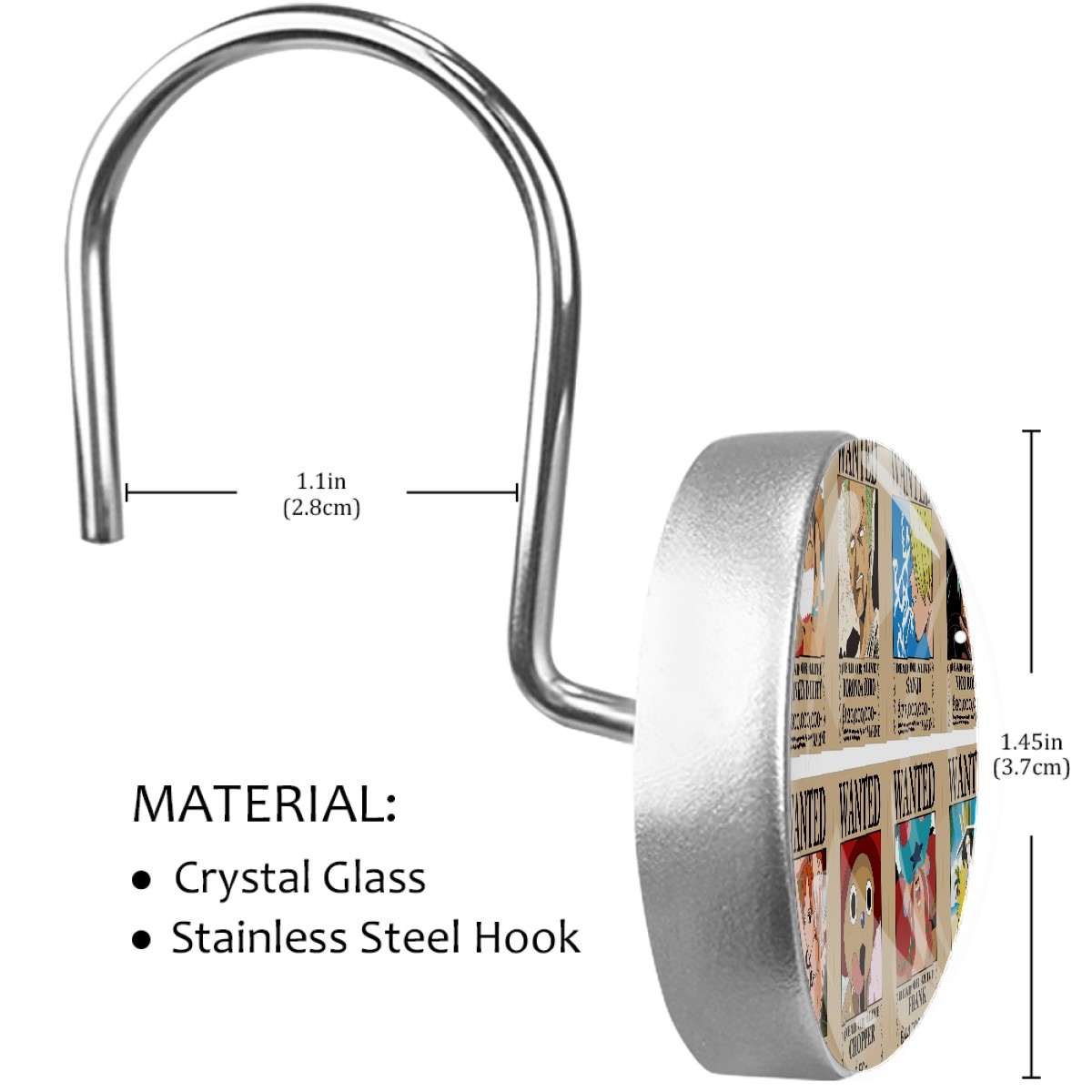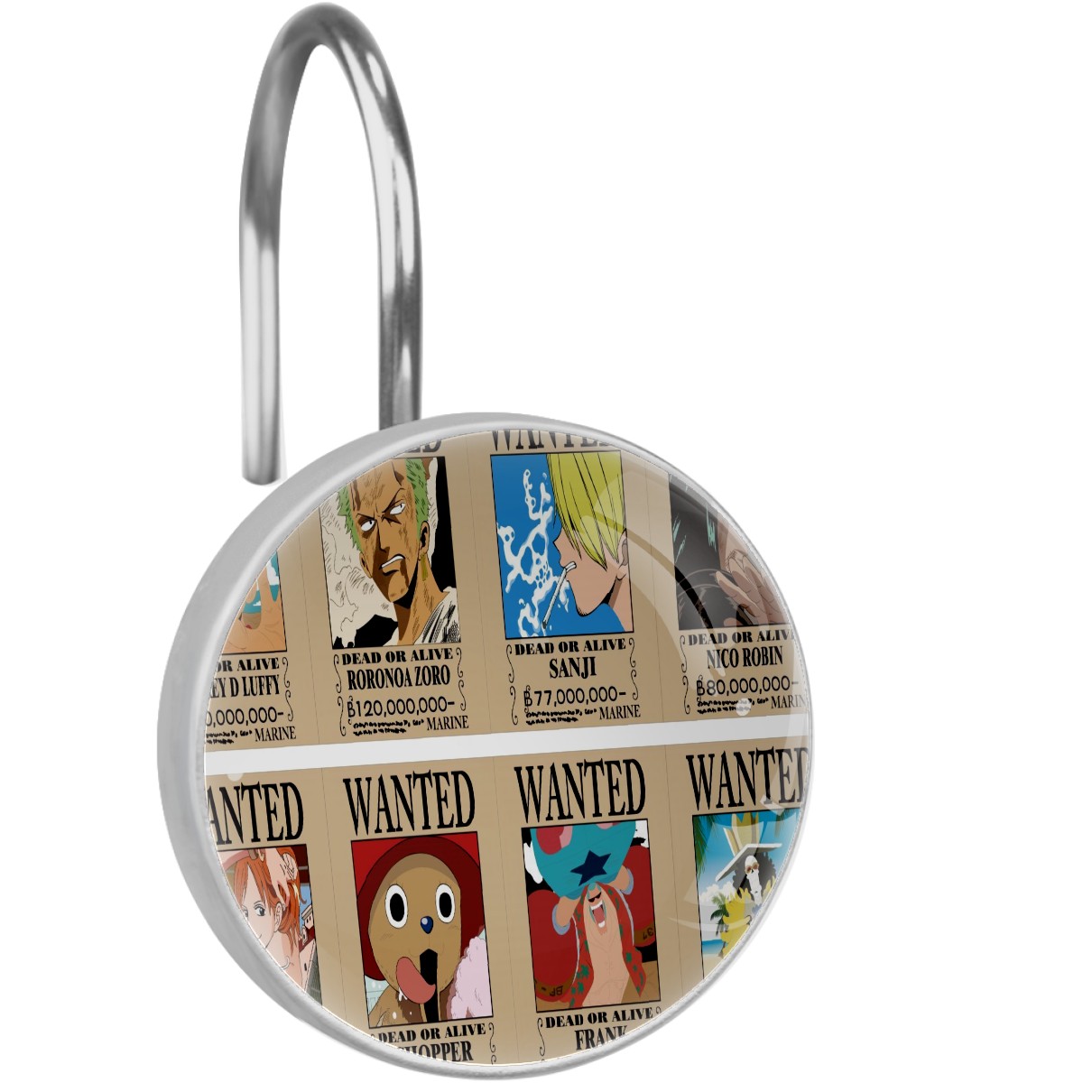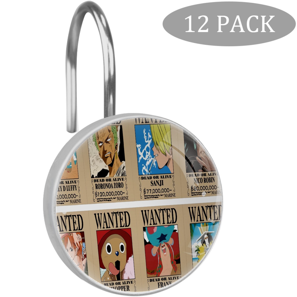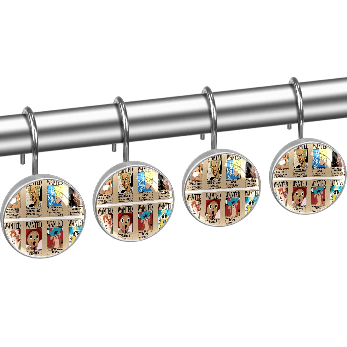 Wanted Japanese One Piece Anime Shower Curtain Hooks,12PCS Diamond Shaped Shower Curtain Rings for Shower Rods Curtain and Liner Home Decor