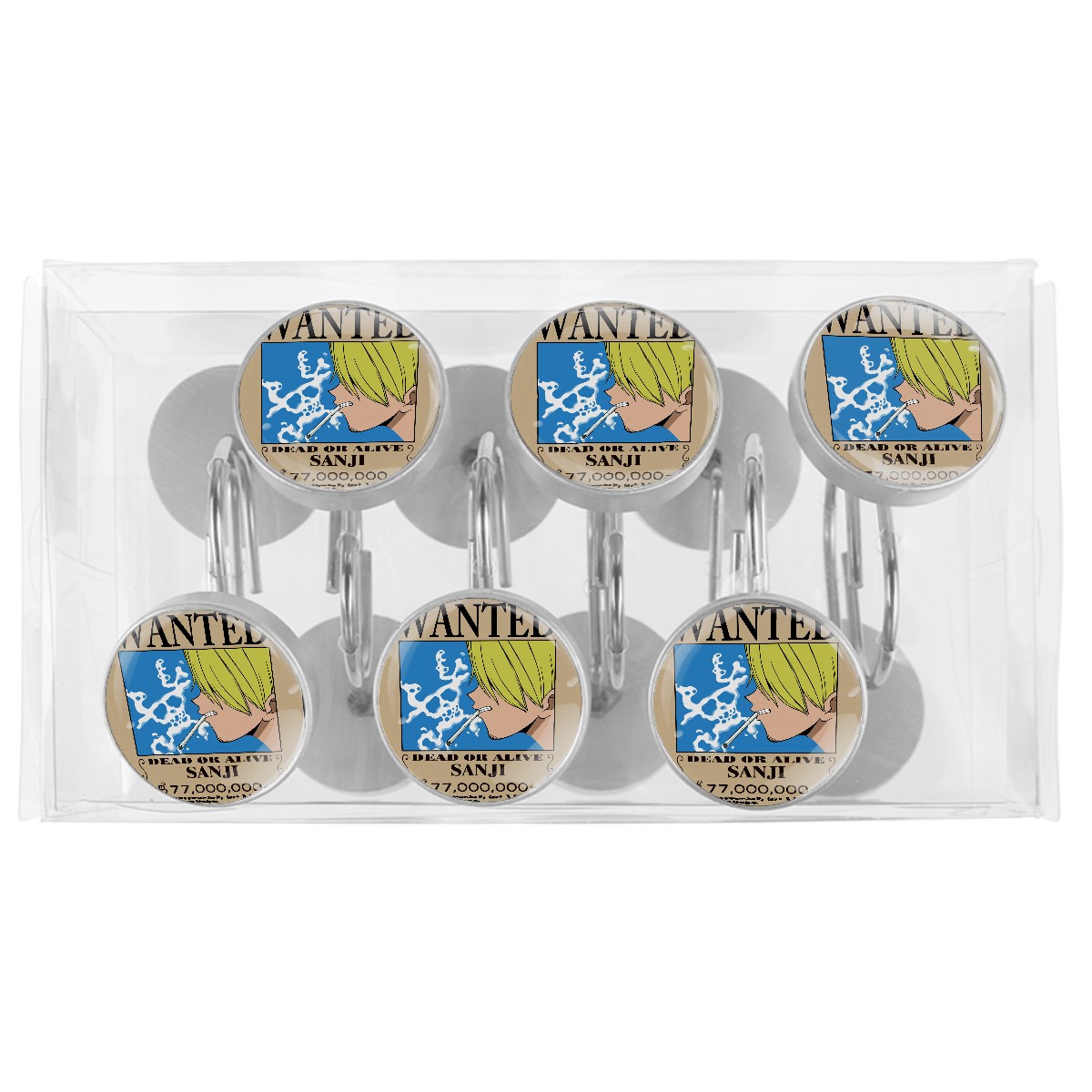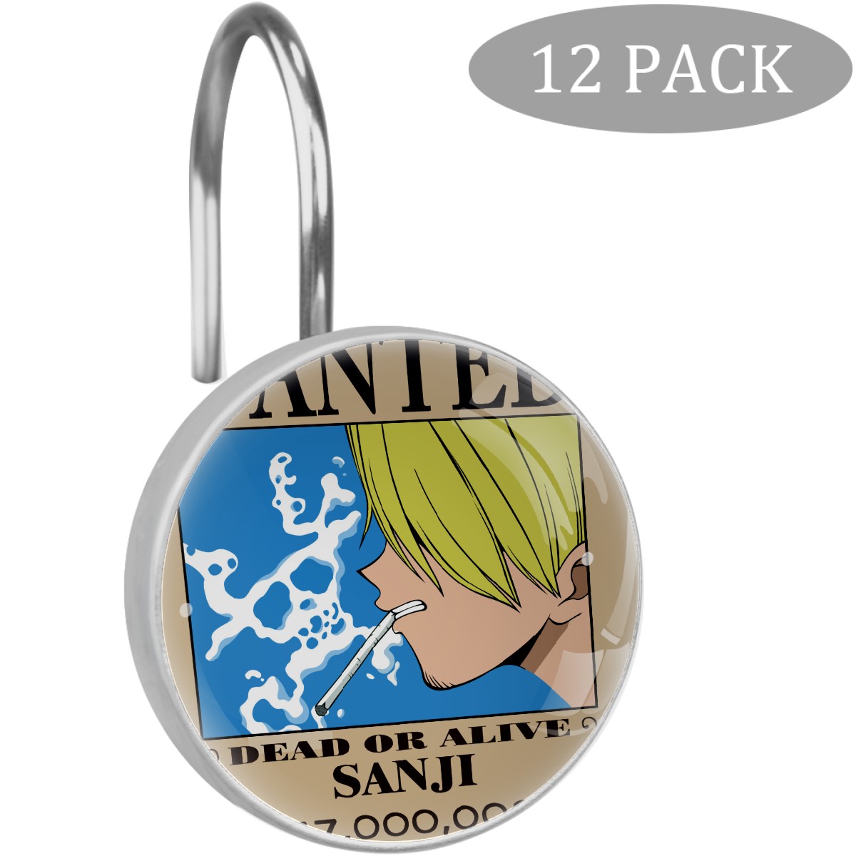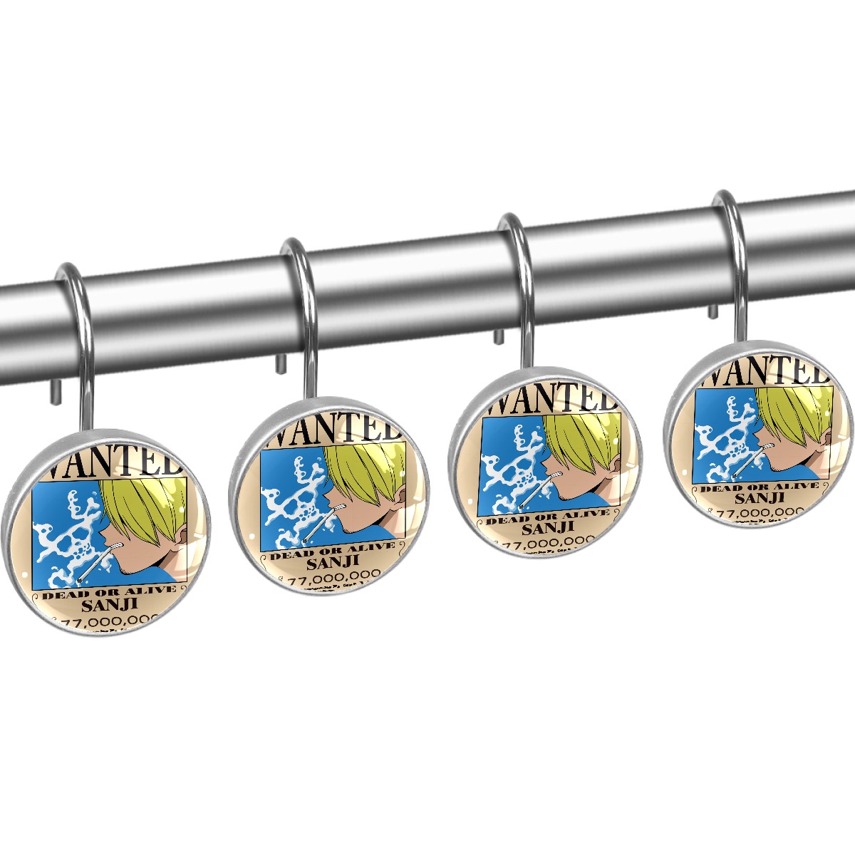 Sanji Wanted One Piece Japanese Anime Shower Curtain Hooks,12PCS Diamond Shaped Shower Curtain Rings for Shower Rods Curtain and Liner Home Decor