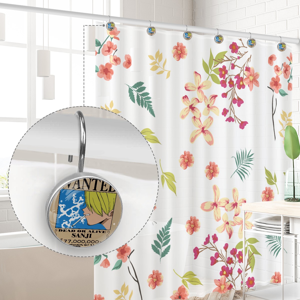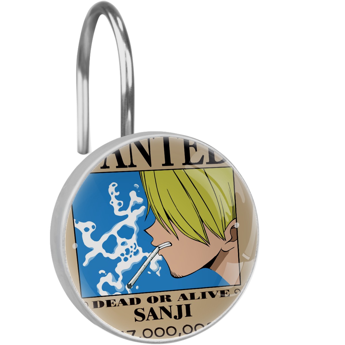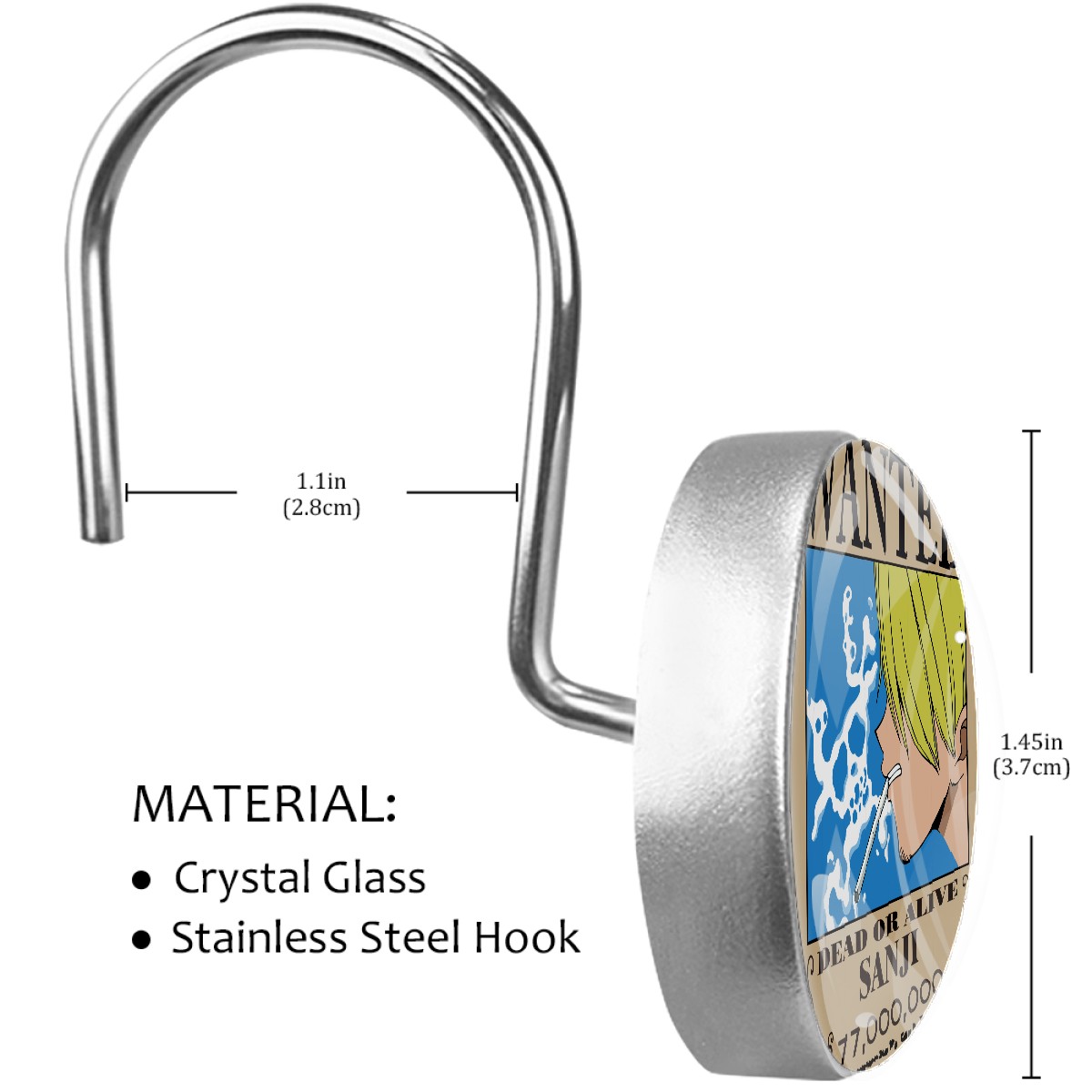 Sanji Wanted One Piece Japanese Anime Shower Curtain Hooks,12PCS Diamond Shaped Shower Curtain Rings for Shower Rods Curtain and Liner Home Decor