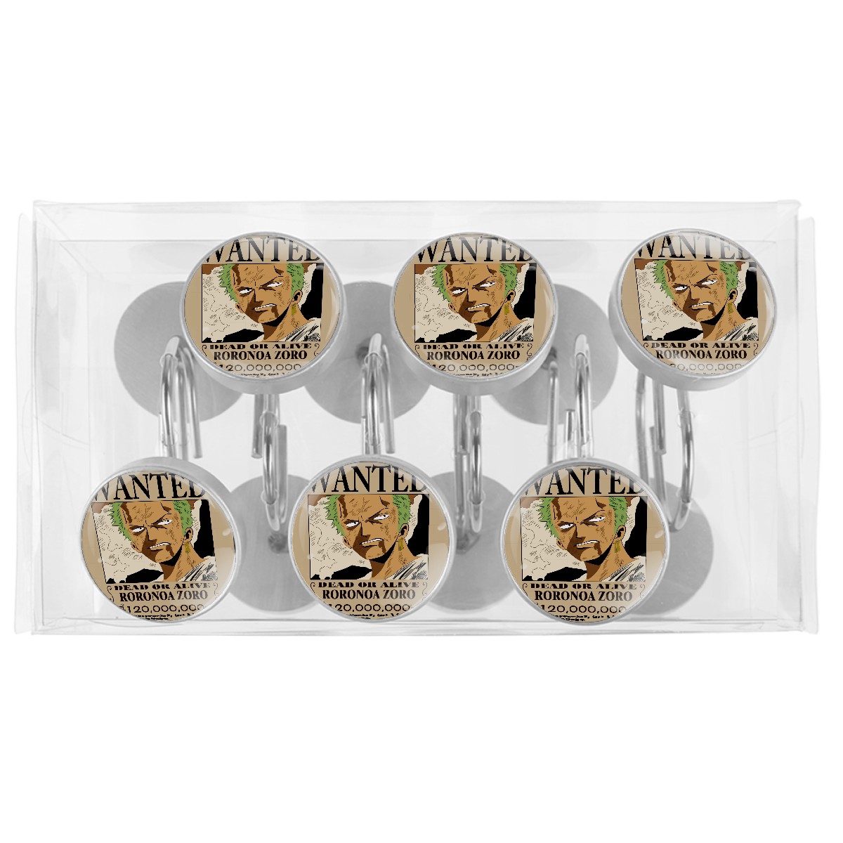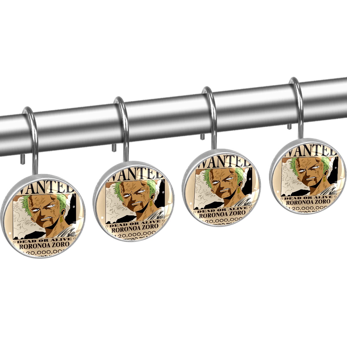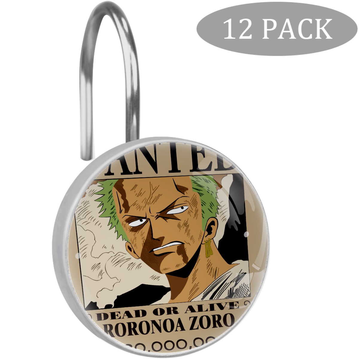 Roronoa Zoro Wanted One Piece Japanese Anime Shower Curtain Hooks,12PCS Diamond Shaped Shower Curtain Rings for Shower Rods Curtain and Liner Home Decor