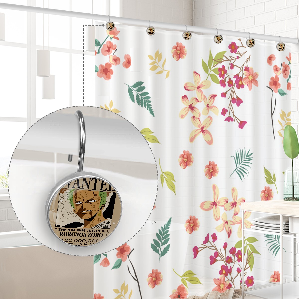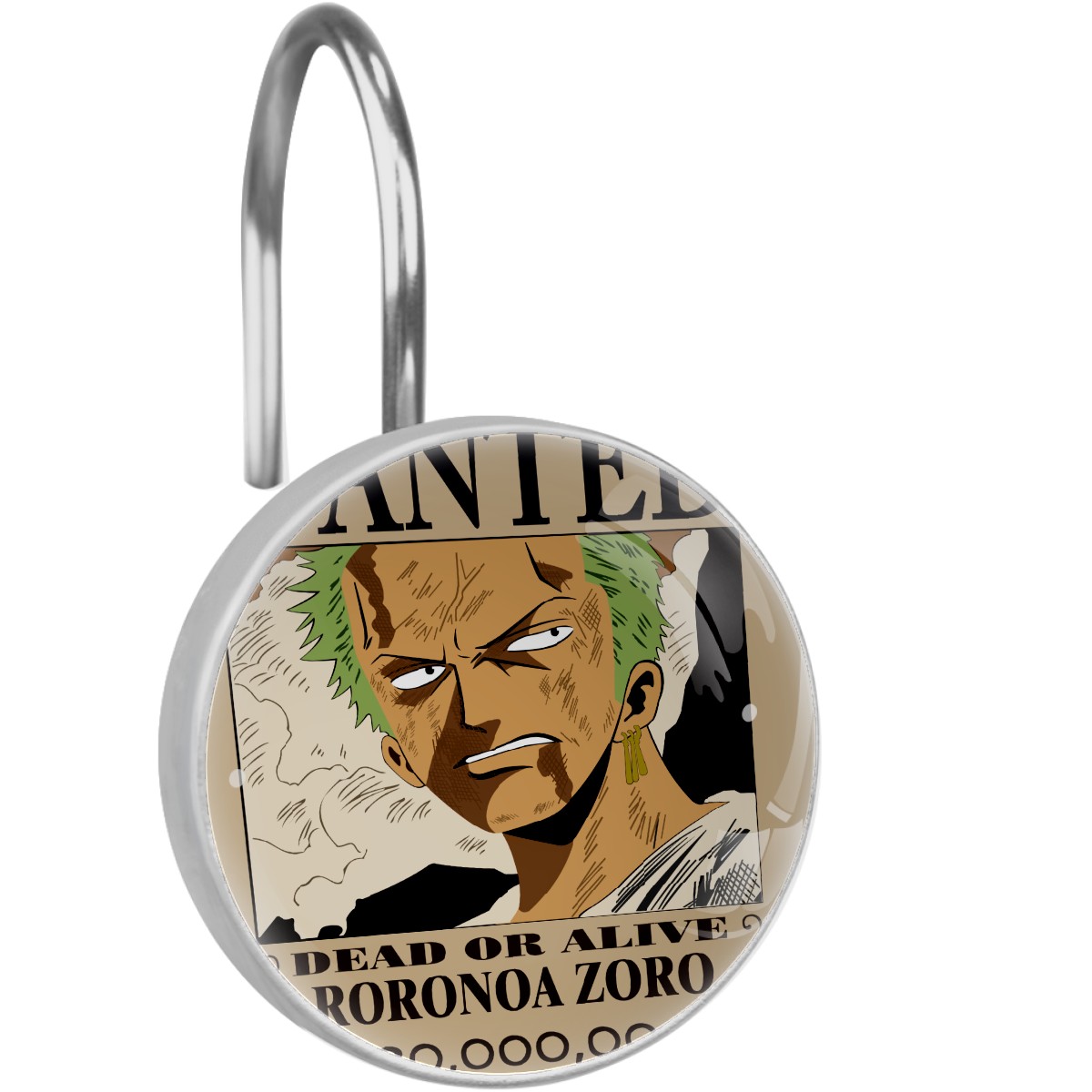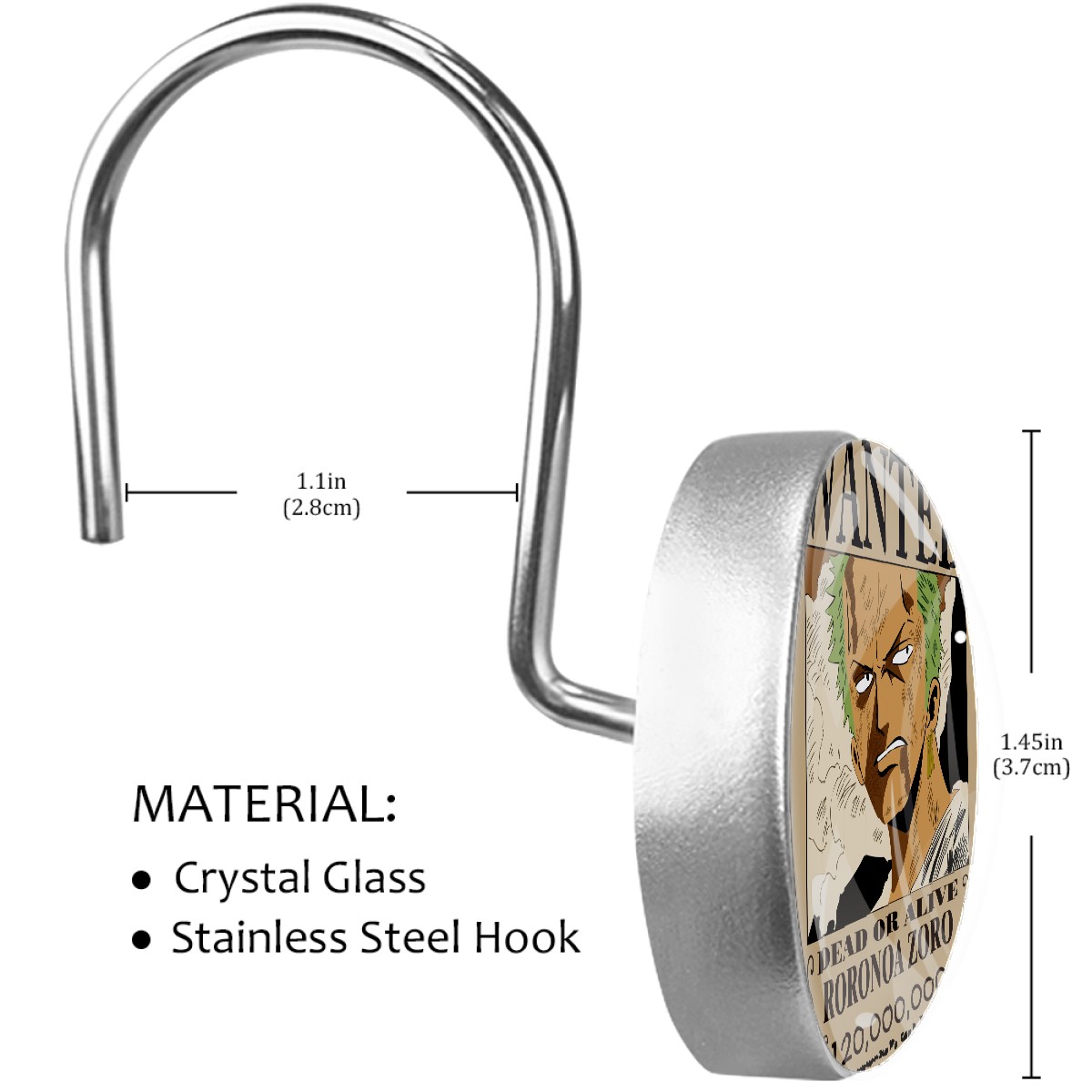 Roronoa Zoro Wanted One Piece Japanese Anime Shower Curtain Hooks,12PCS Diamond Shaped Shower Curtain Rings for Shower Rods Curtain and Liner Home Decor