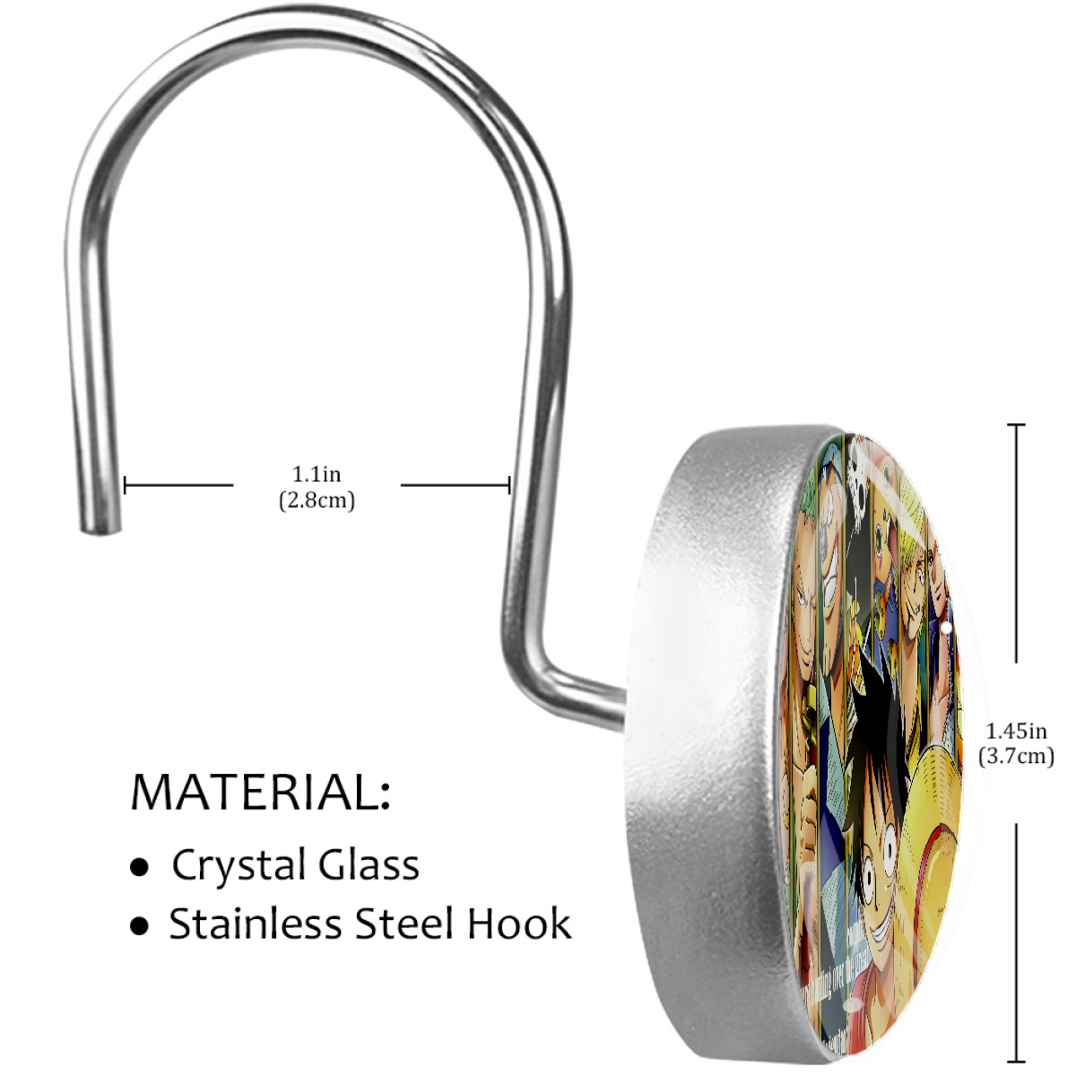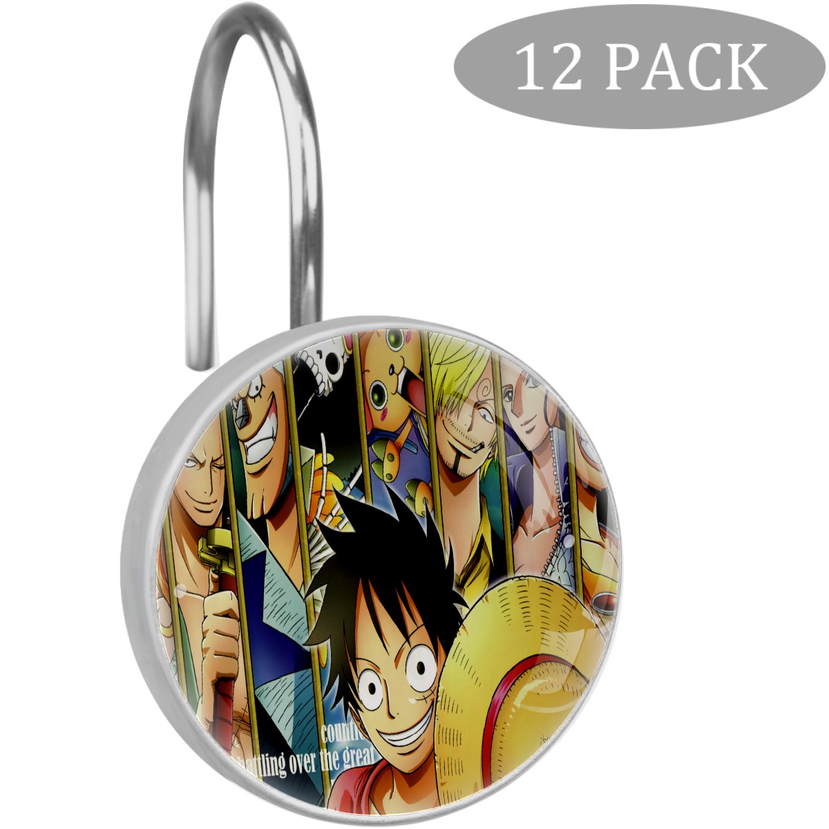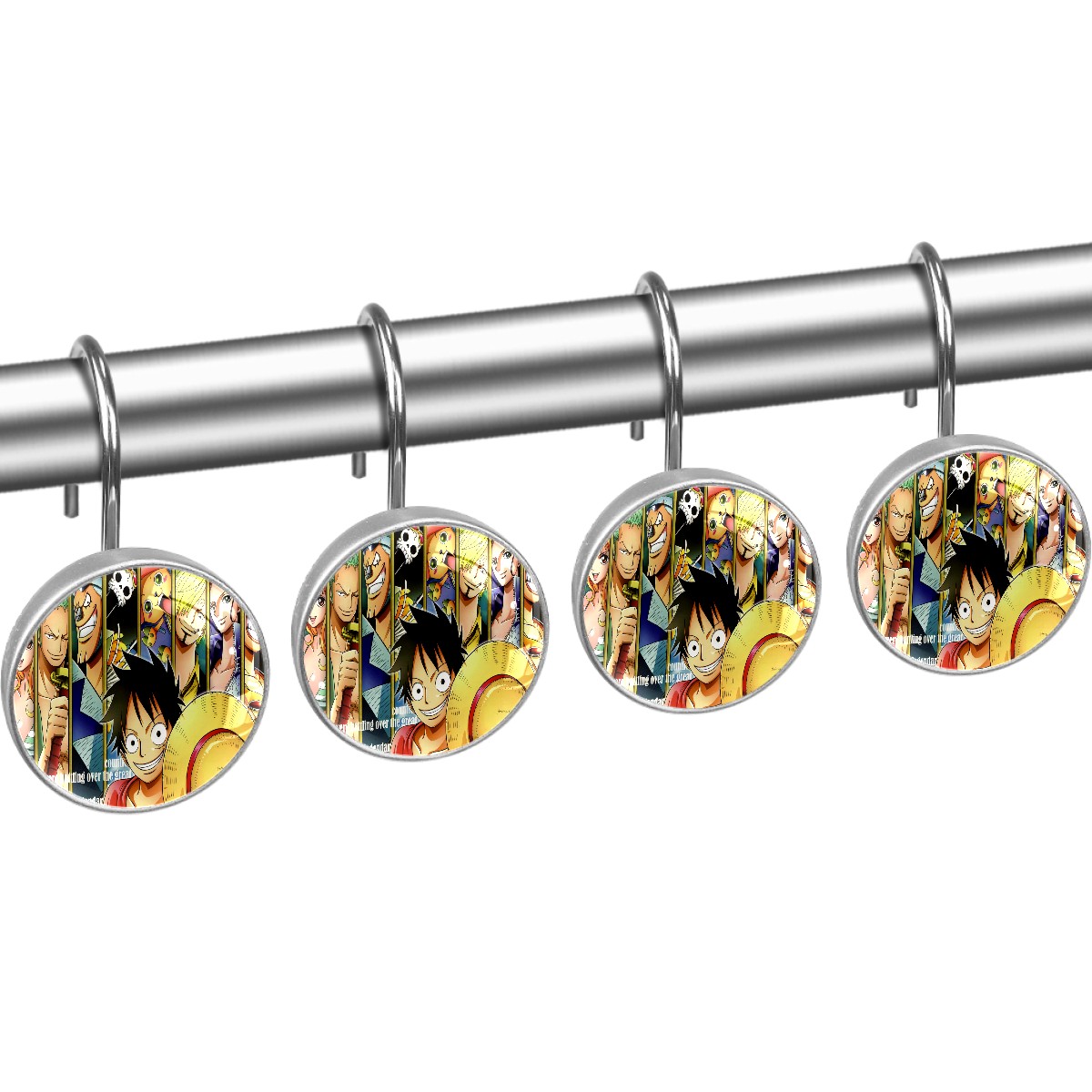 One Piece New World Anime Shower Curtain Hooks,12PCS Diamond Shaped Shower Curtain Rings for Shower Rods Curtain and Liner Home Decor