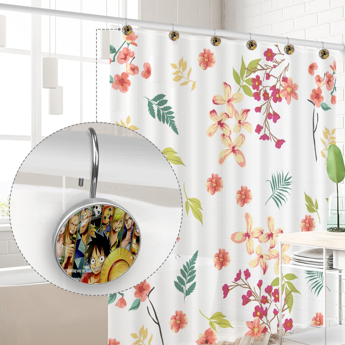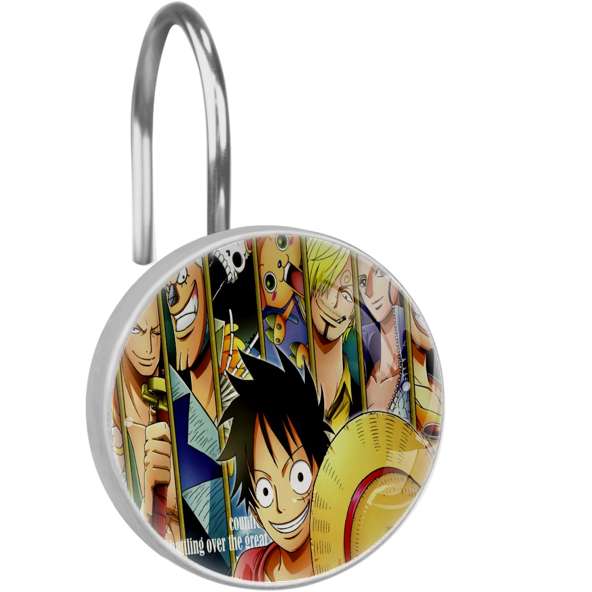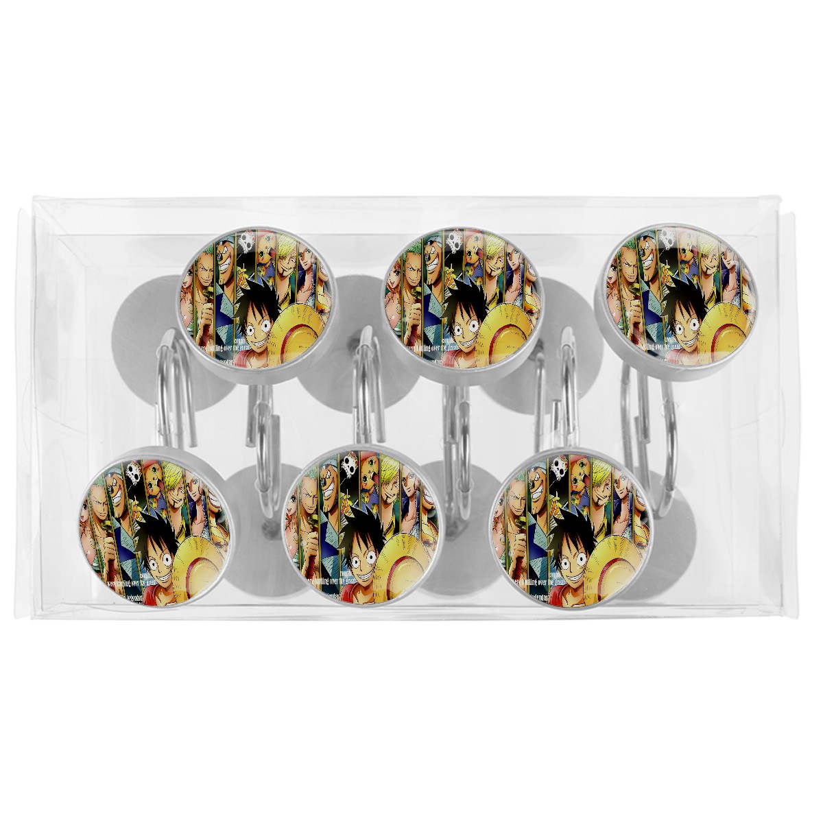 One Piece New World Anime Shower Curtain Hooks,12PCS Diamond Shaped Shower Curtain Rings for Shower Rods Curtain and Liner Home Decor