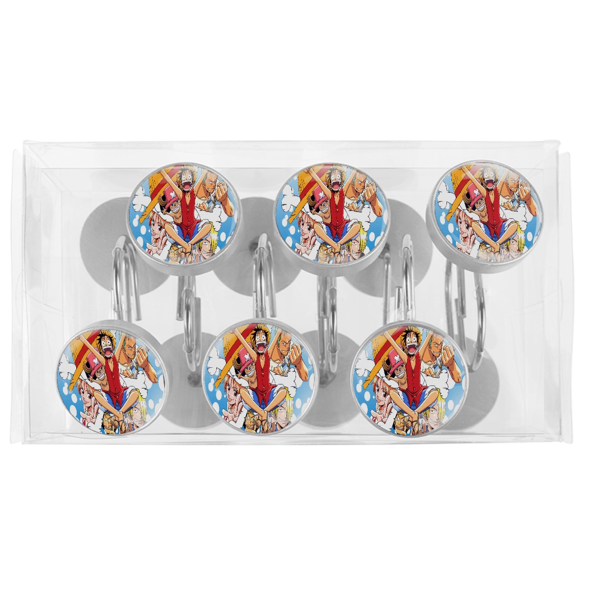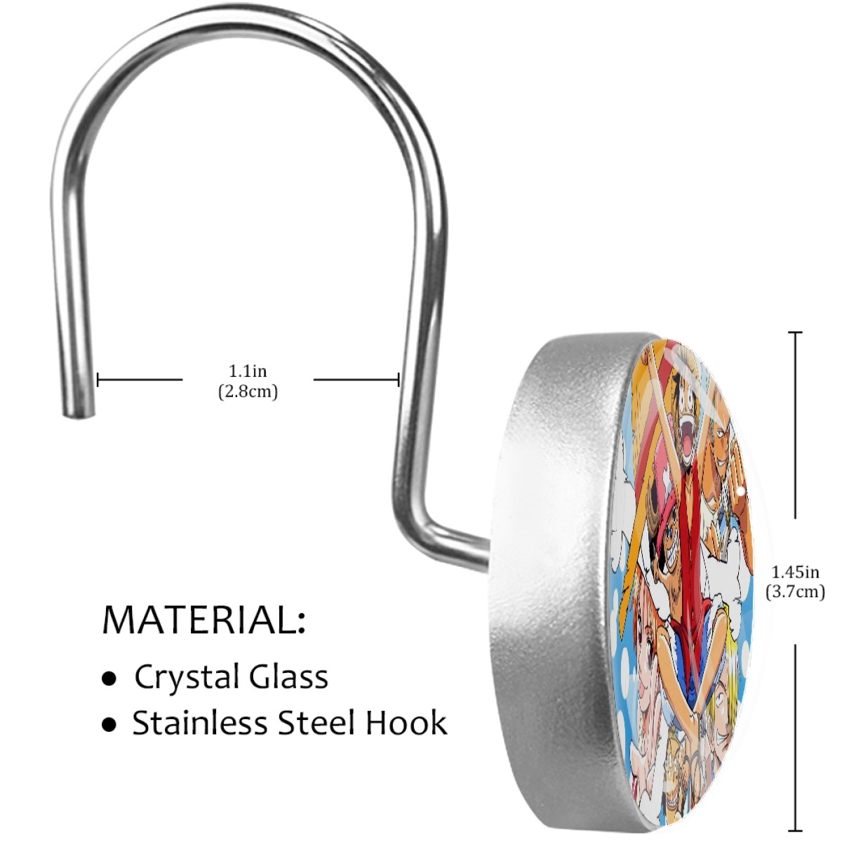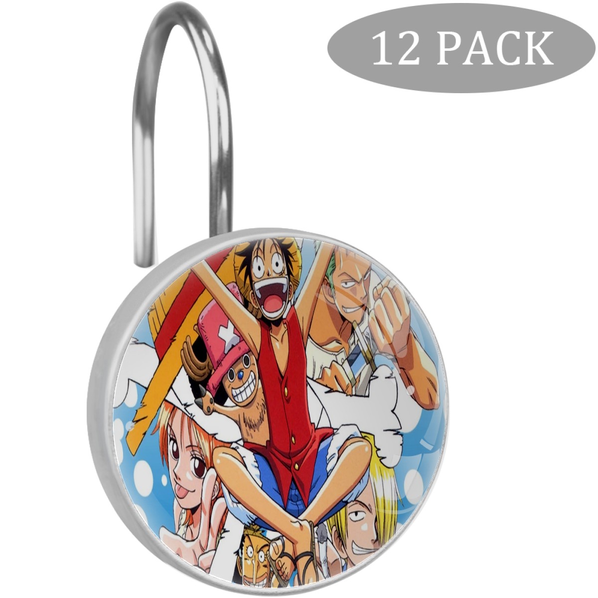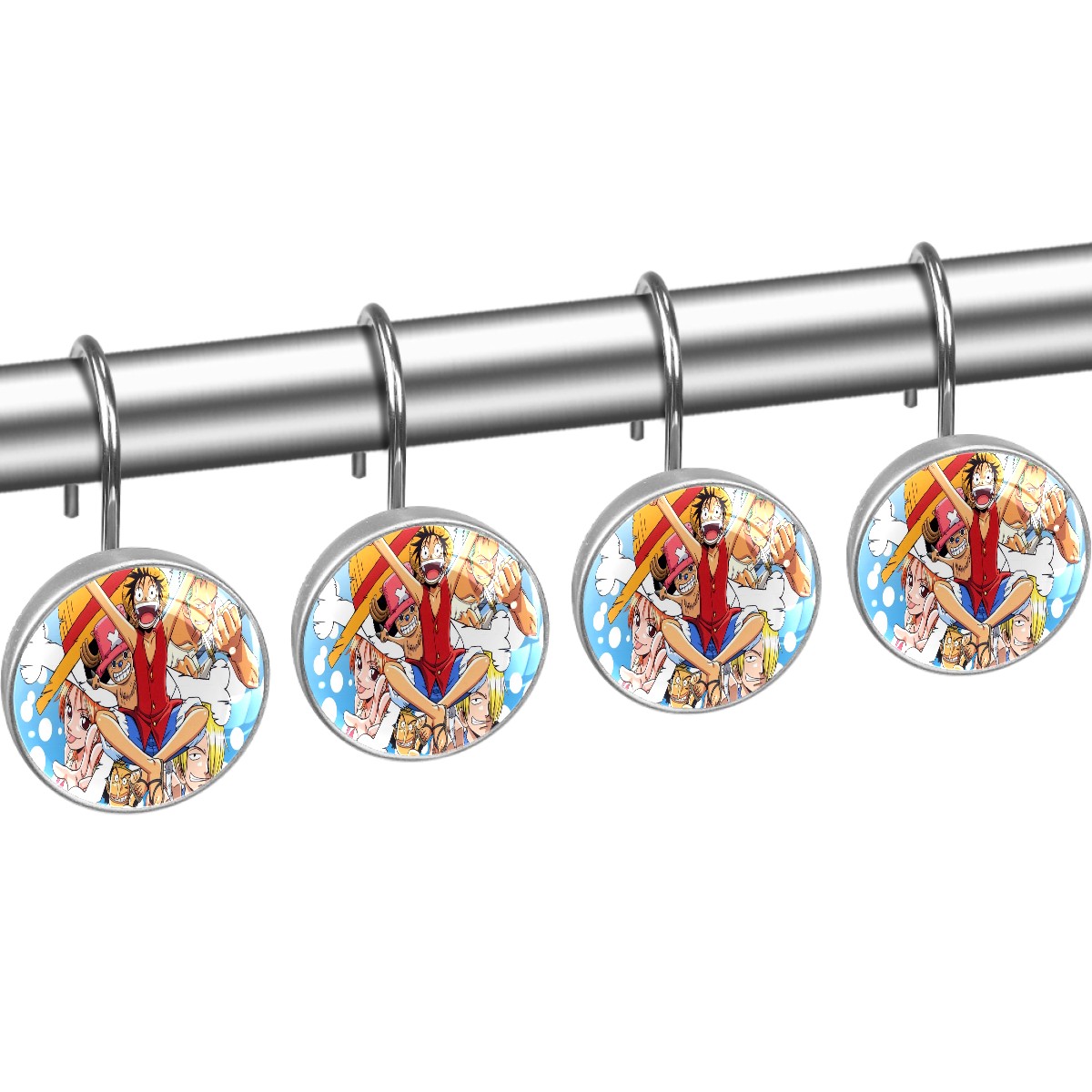 One Piece Japanese Anime Shower Curtain Hooks,12PCS Diamond Shaped Shower Curtain Rings for Shower Rods Curtain and Liner Home Decor
