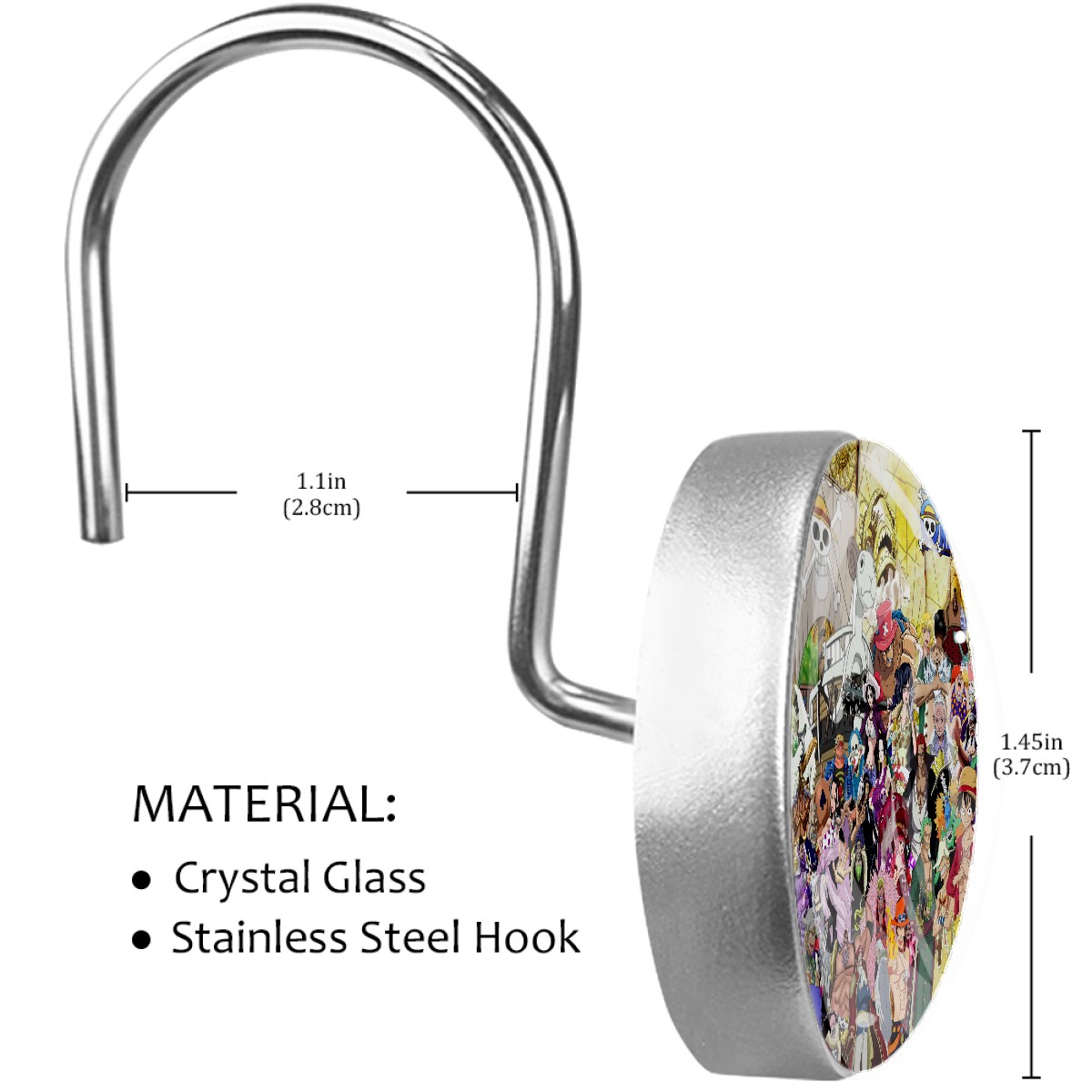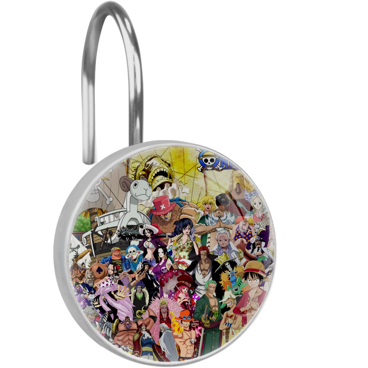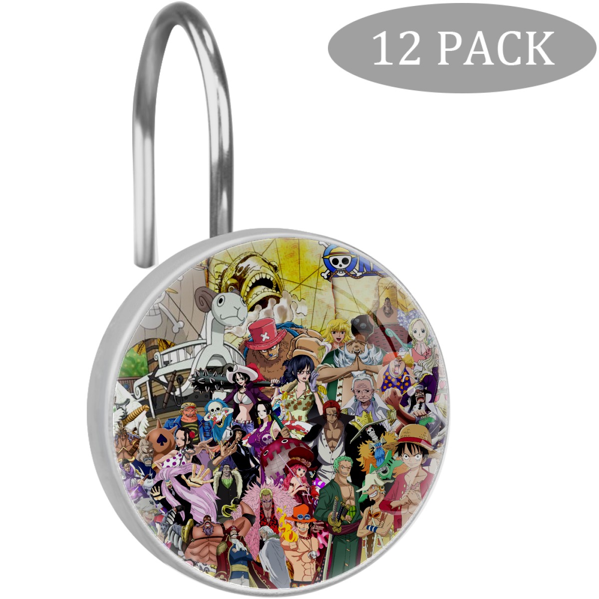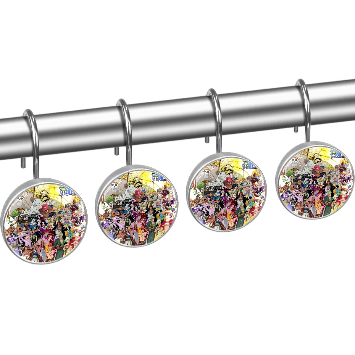 Japanese One Piece Anime Luffy Shower Curtain Hooks,12PCS Diamond Shaped Shower Curtain Rings for Shower Rods Curtain and Liner Home Decor