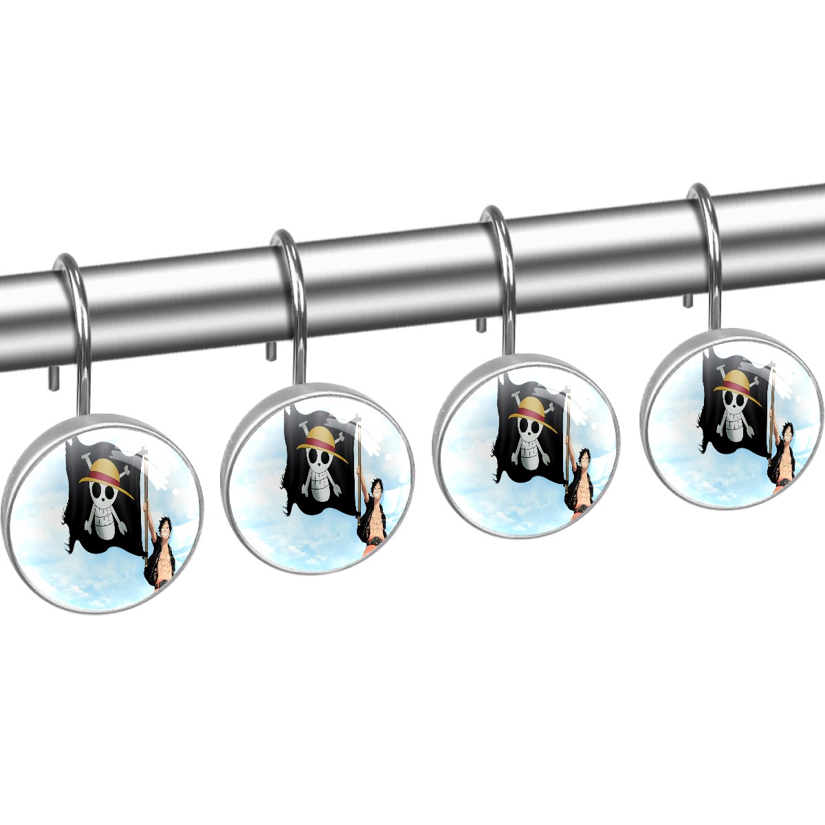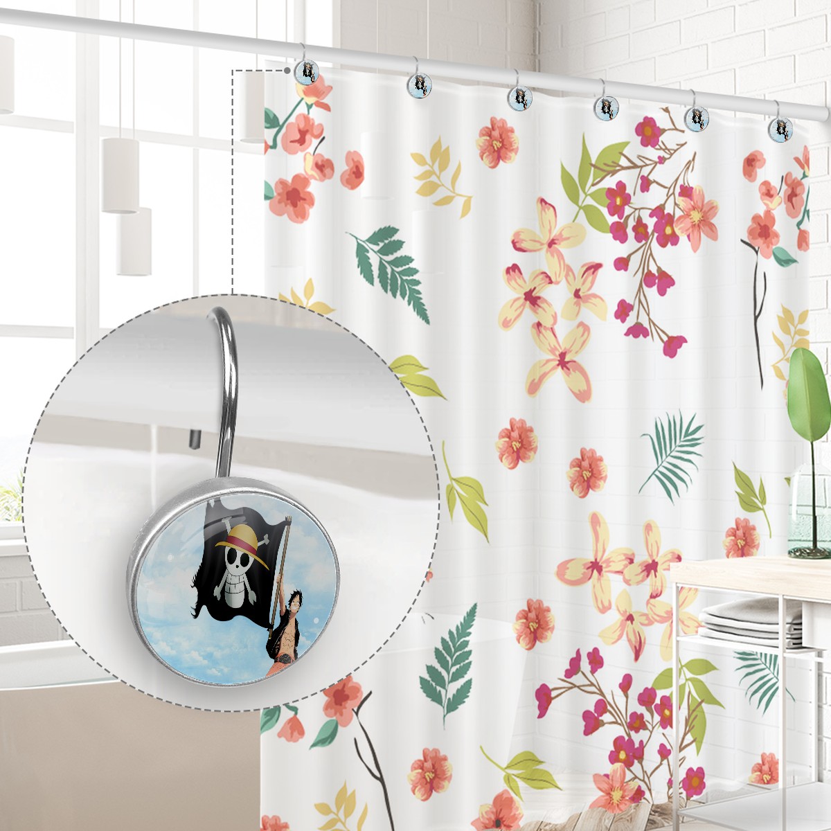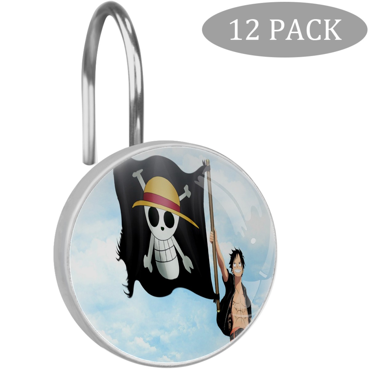 Japanese One Piece Anime Shower Curtain Hooks,12PCS Diamond Shaped Shower Curtain Rings for Shower Rods Curtain and Liner Home Decor