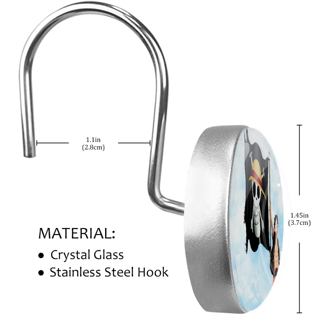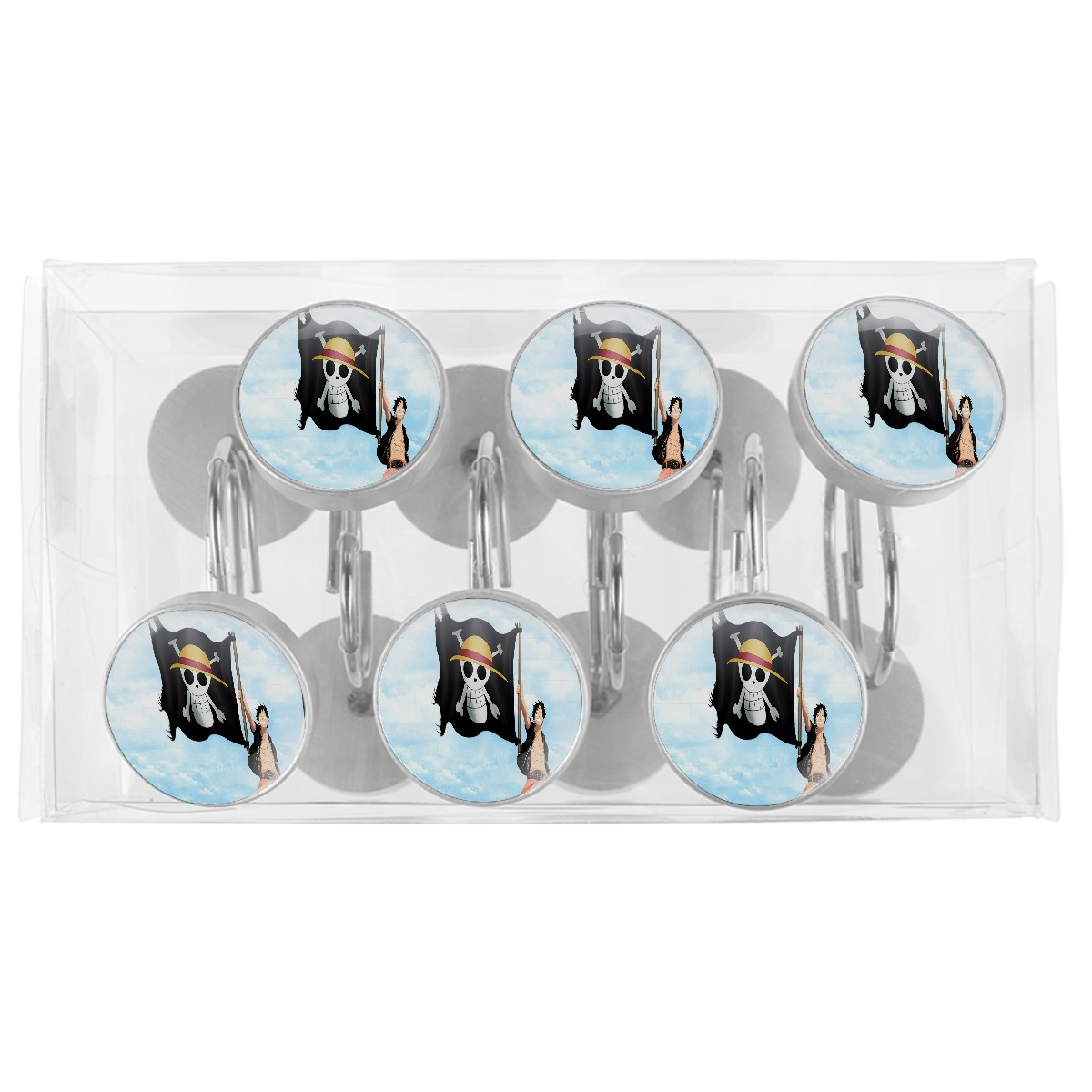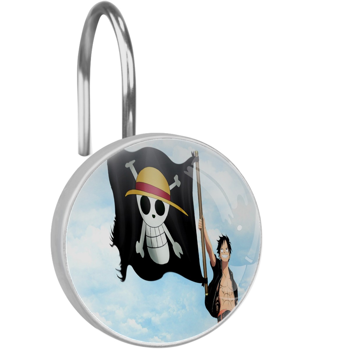 Japanese One Piece Anime Shower Curtain Hooks,12PCS Diamond Shaped Shower Curtain Rings for Shower Rods Curtain and Liner Home Decor