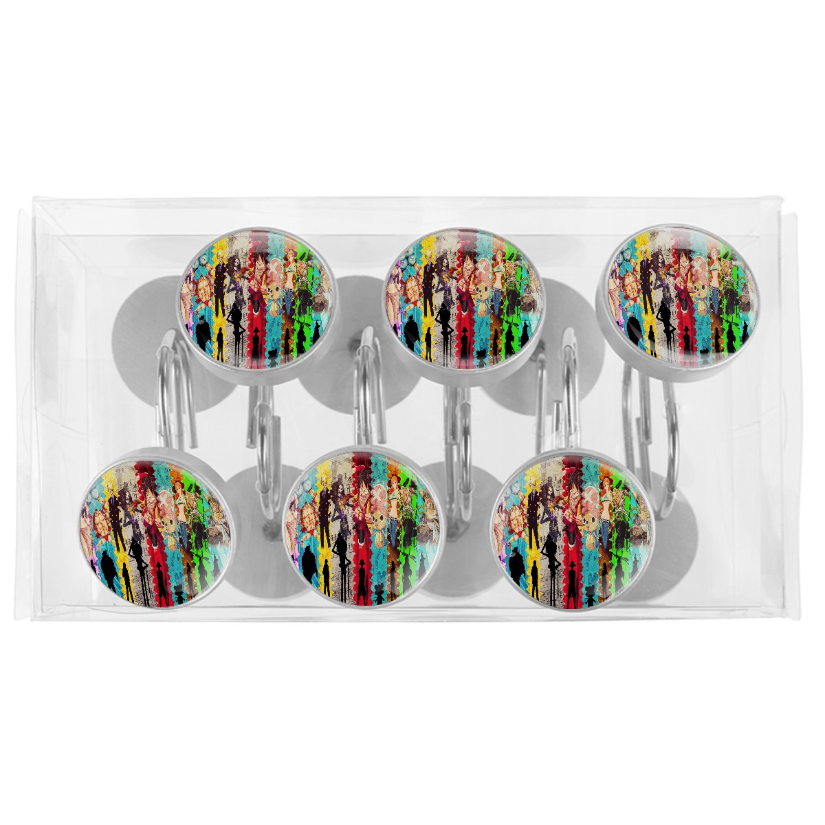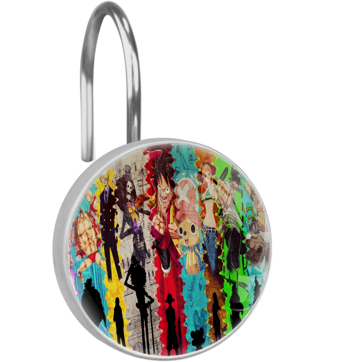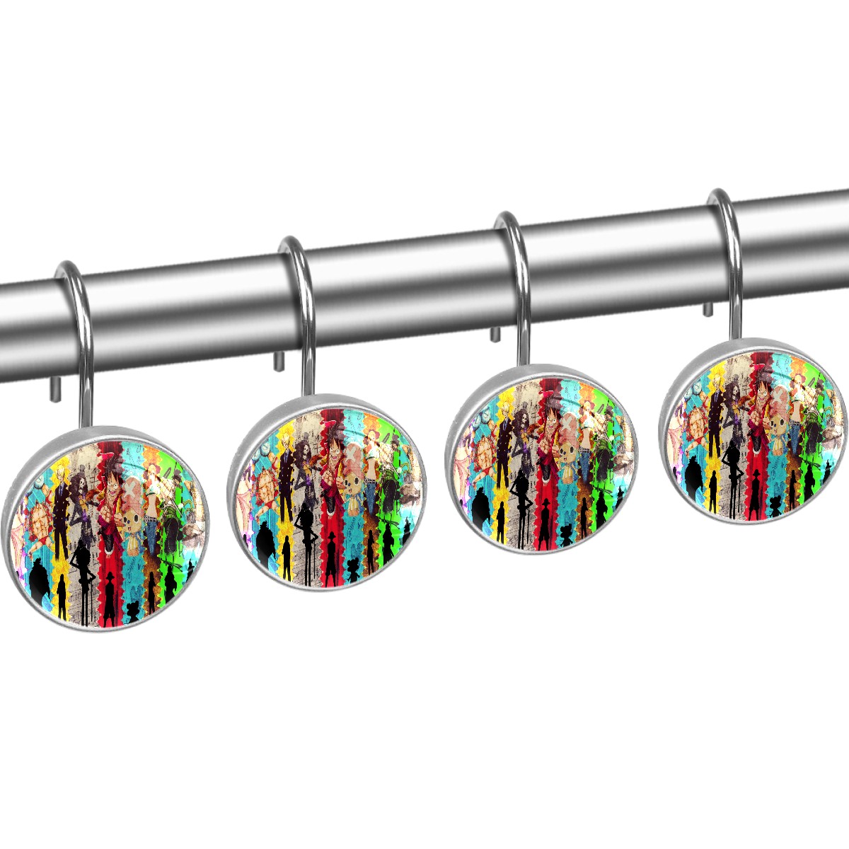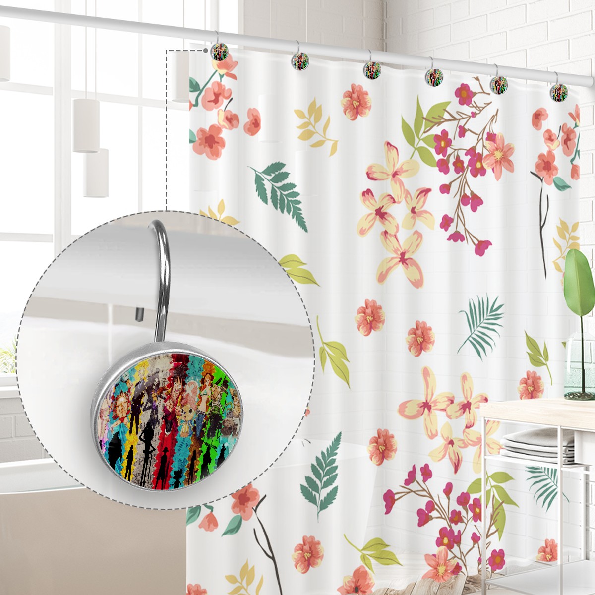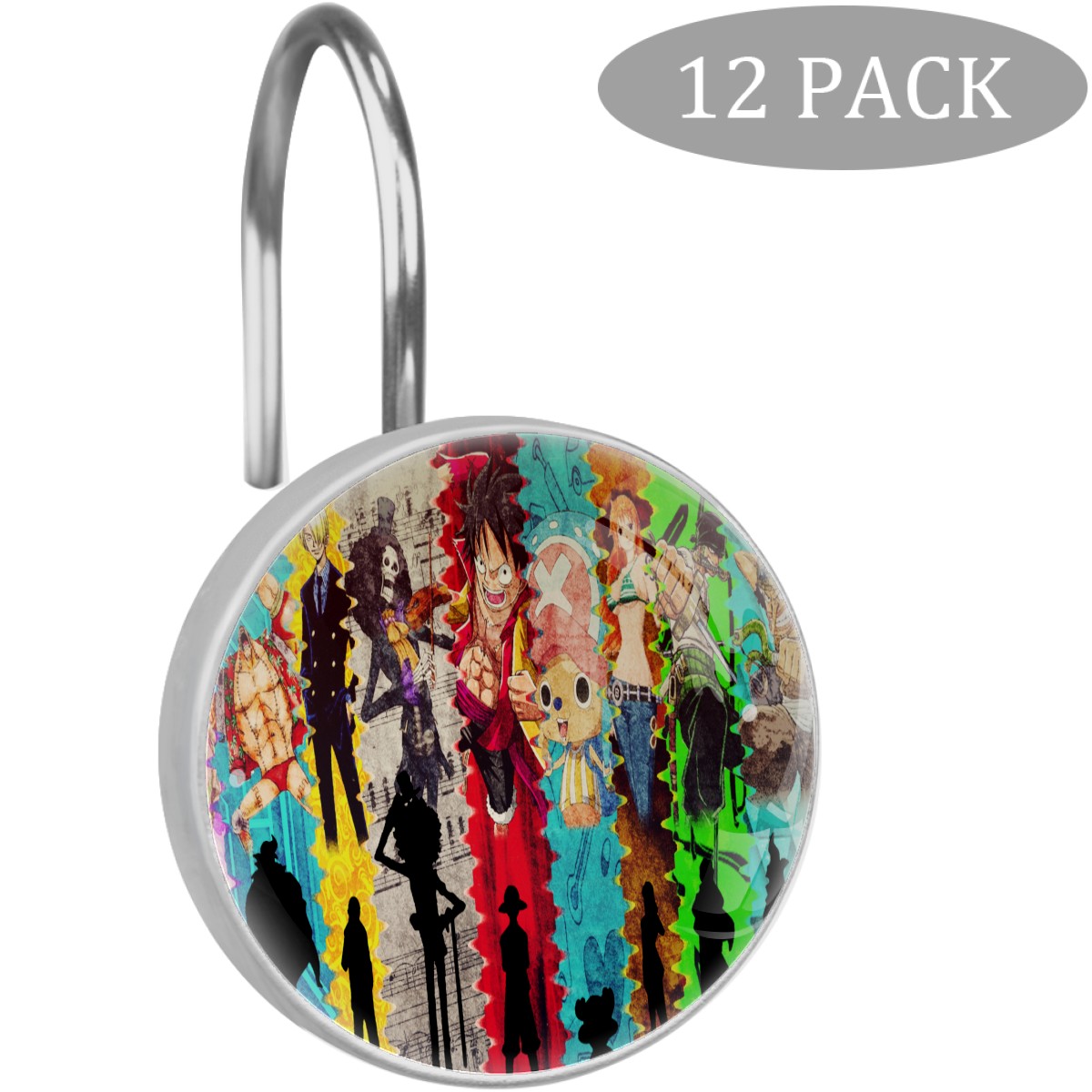 Hand Draw One Piece Japanese Anime Shower Curtain Hooks,12PCS Diamond Shaped Shower Curtain Rings for Shower Rods Curtain and Liner Home Decor