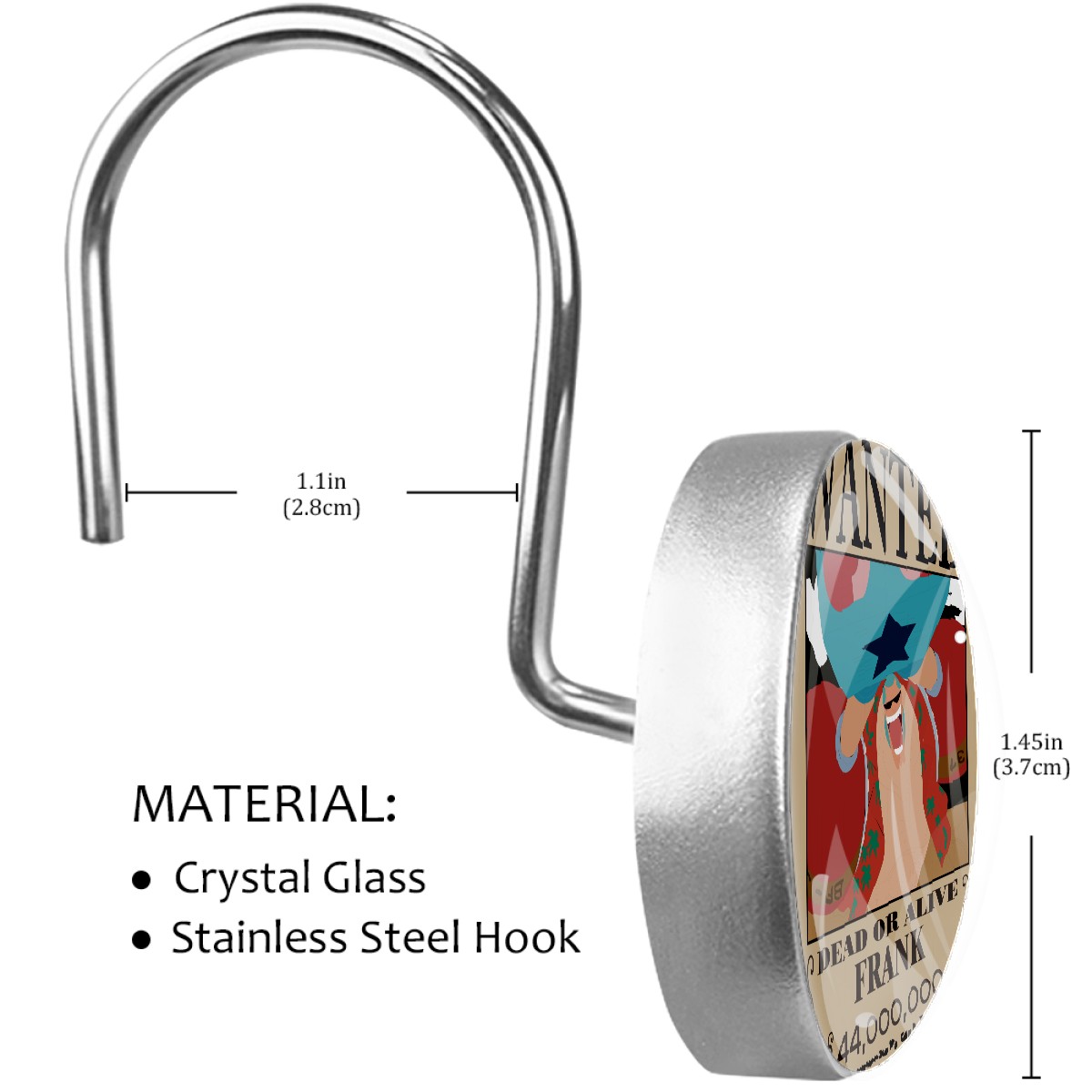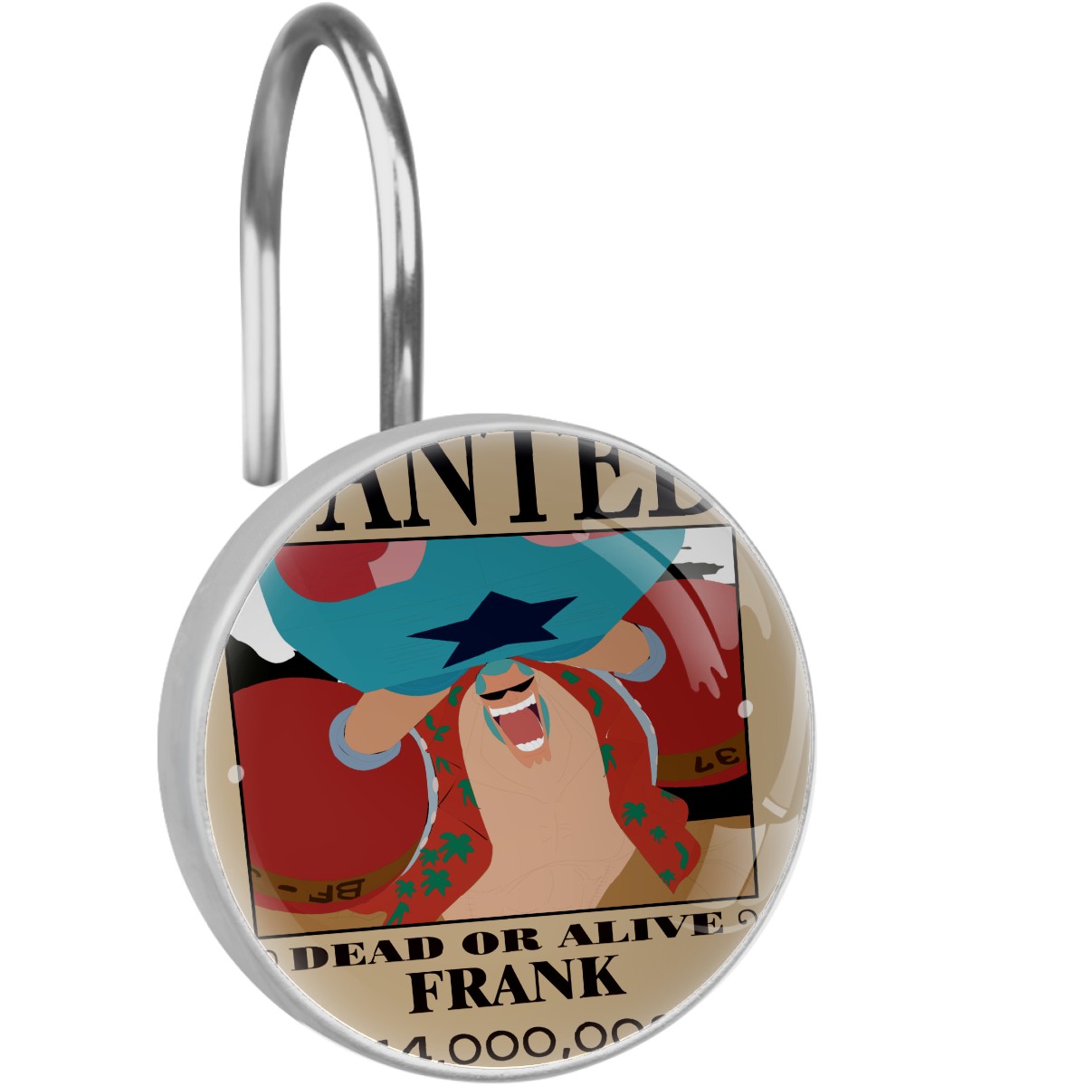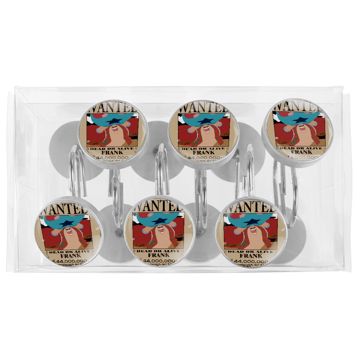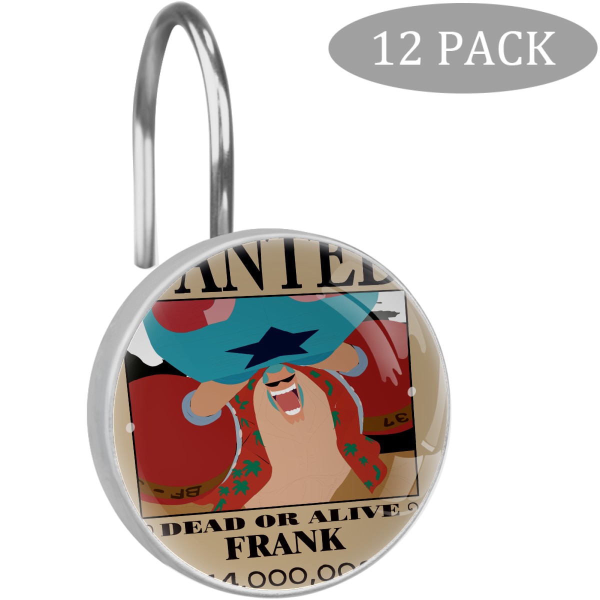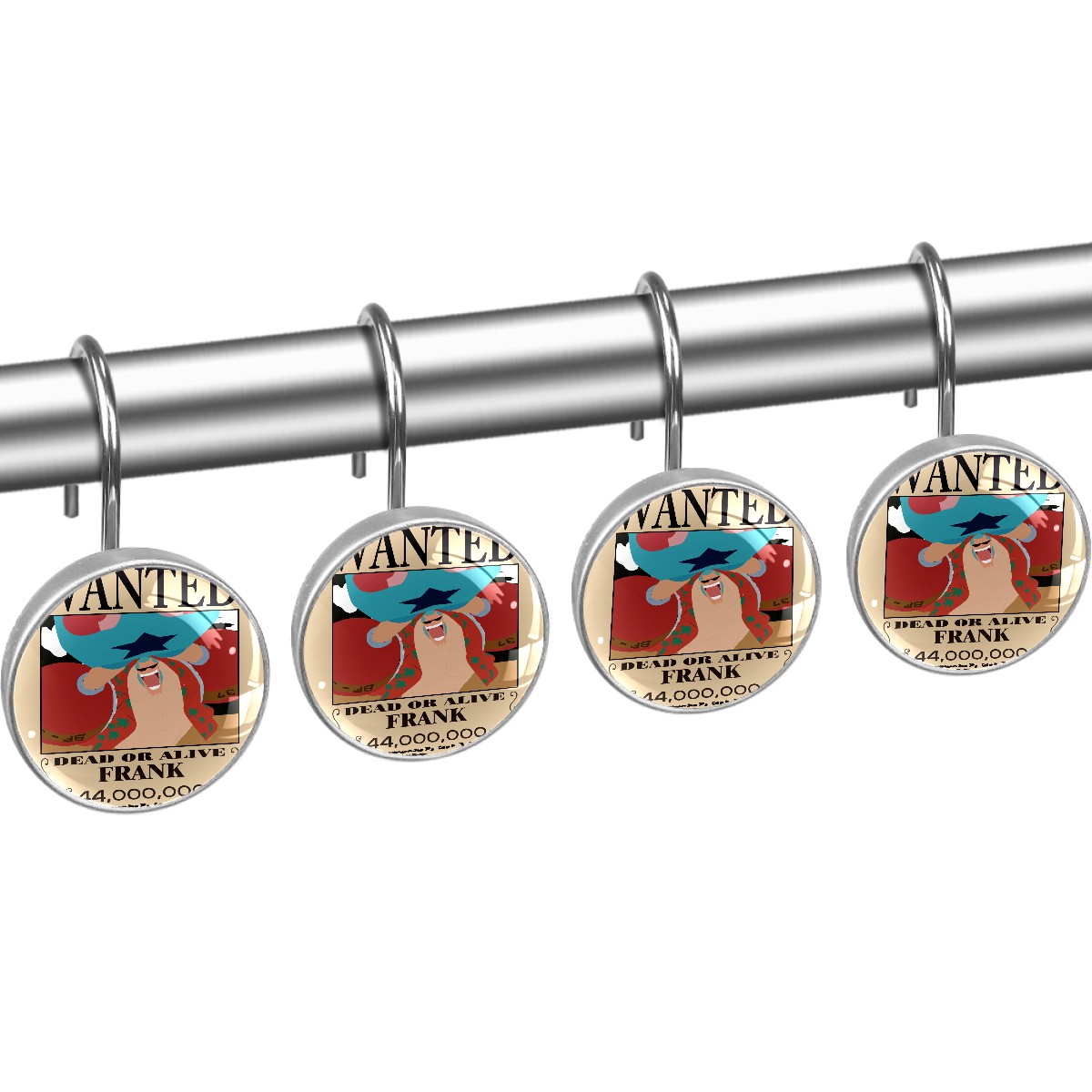 Franky Wanted One Piece Japanese Anime Shower Curtain Hooks,12PCS Diamond Shaped Shower Curtain Rings for Shower Rods Curtain and Liner Home Decor