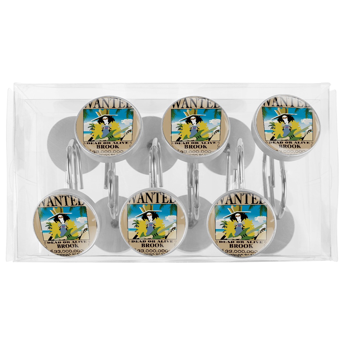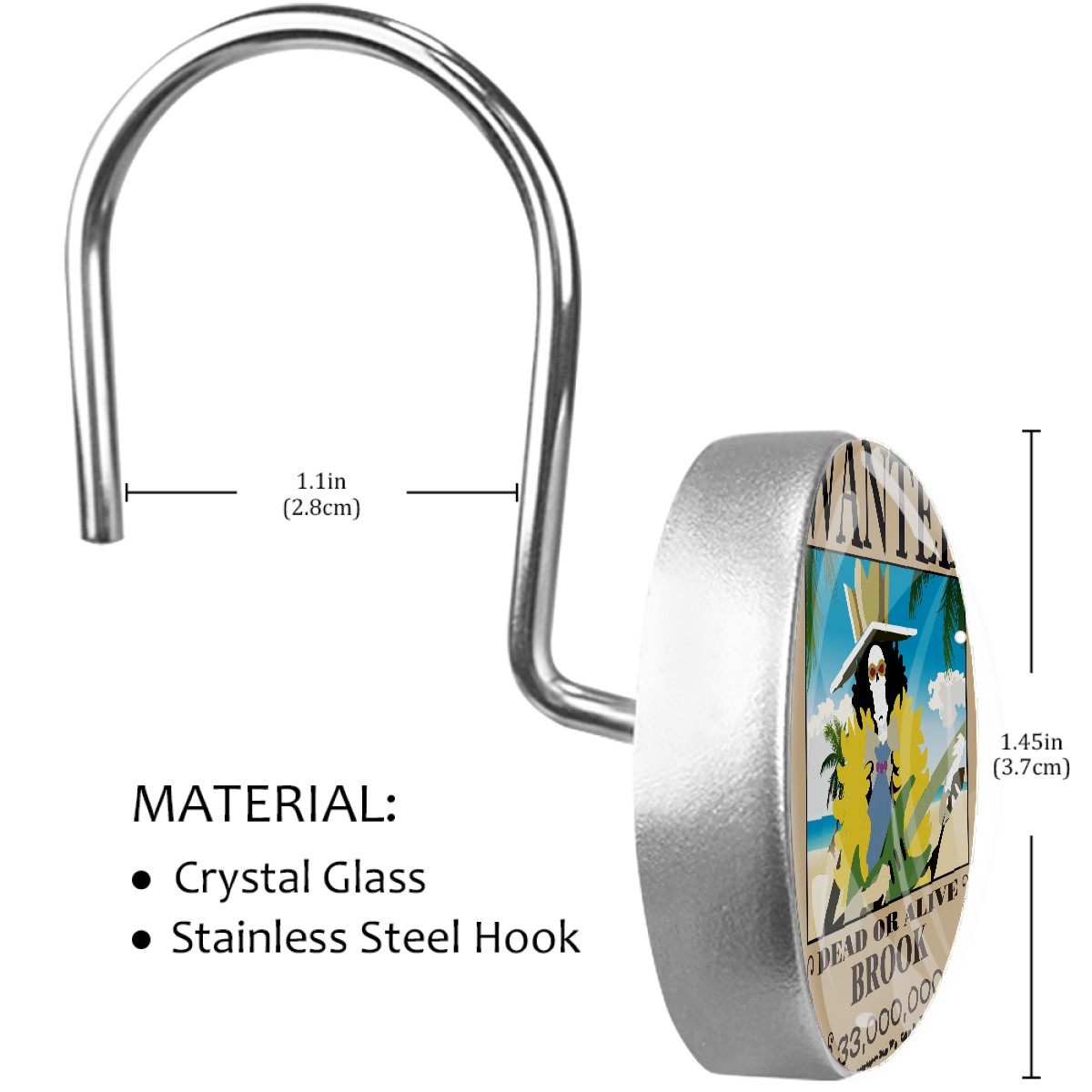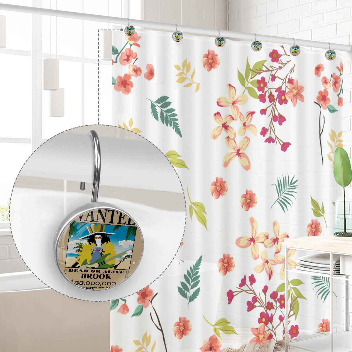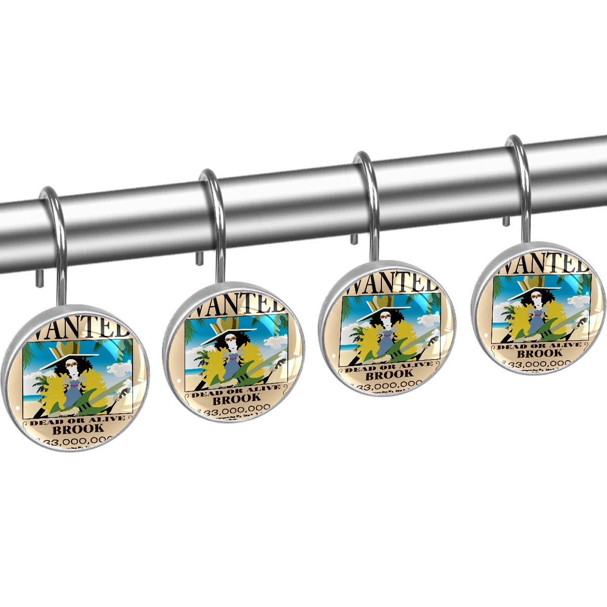 Brook Wanted Japanese One Piece Anime Shower Curtain Hooks,12PCS Diamond Shaped Shower Curtain Rings for Shower Rods Curtain and Liner Home Decor