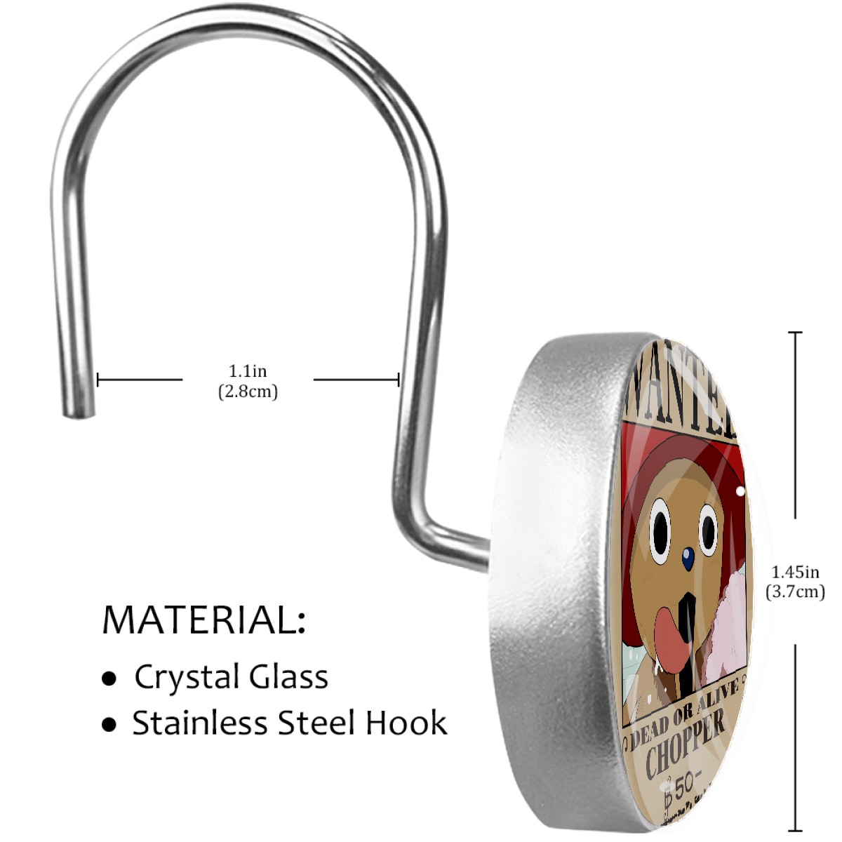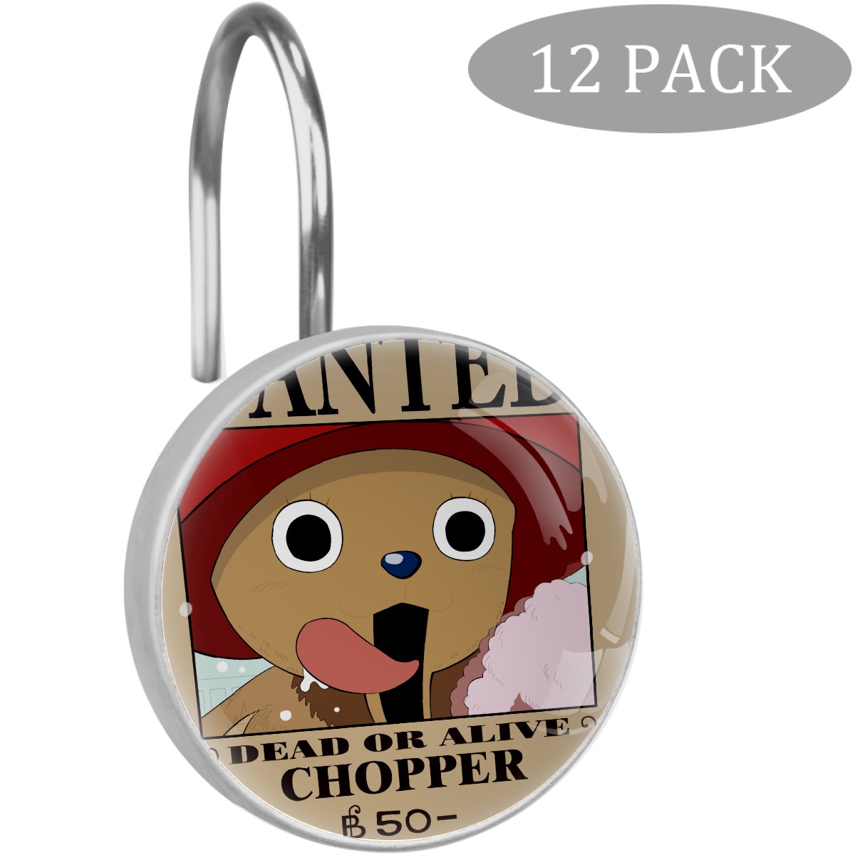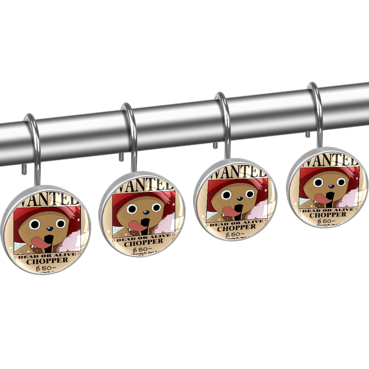 Chopper Wanted One Piece Japanese Anime Shower Curtain Hooks,12PCS Diamond Shaped Shower Curtain Rings for Shower Rods Curtain and Liner Home Decor