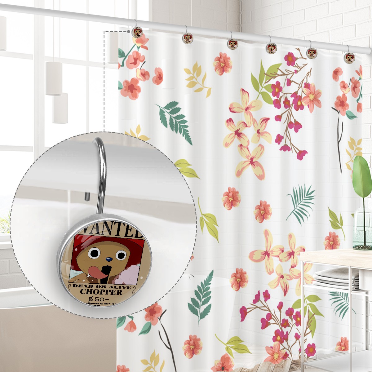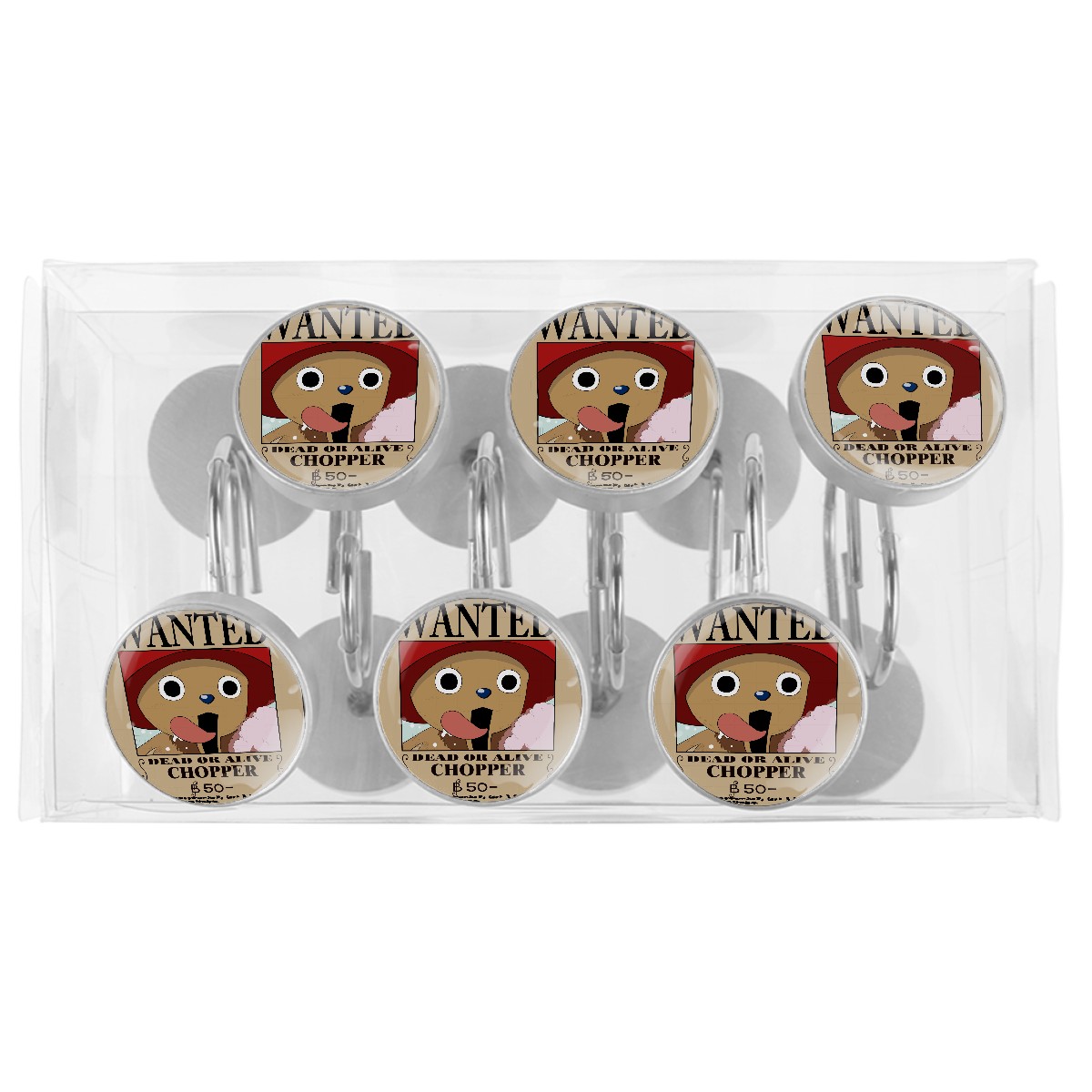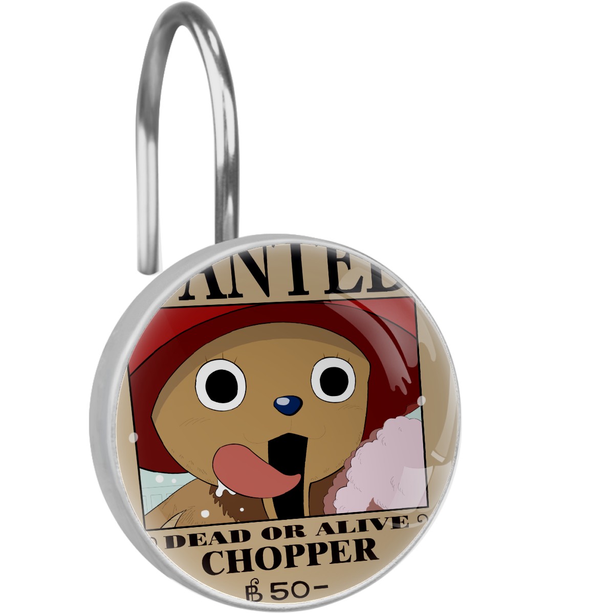 Chopper Wanted One Piece Japanese Anime Shower Curtain Hooks,12PCS Diamond Shaped Shower Curtain Rings for Shower Rods Curtain and Liner Home Decor