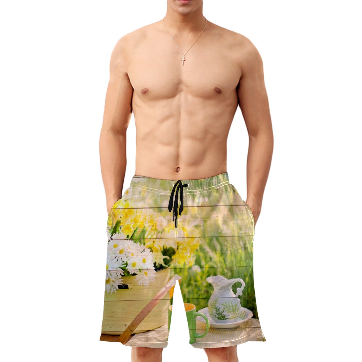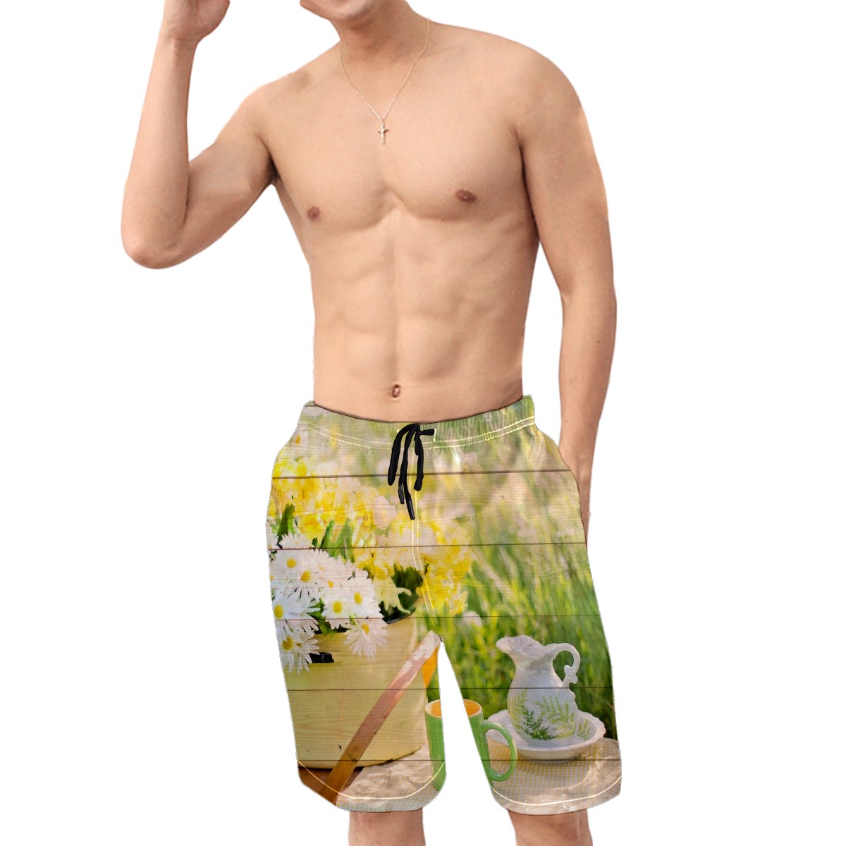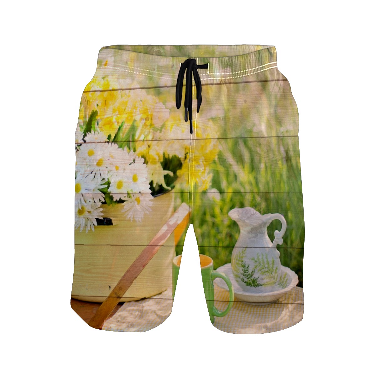 Mens Swim Trunks Wooden Floral Tea Picnic Afternoon Beach Board Shorts