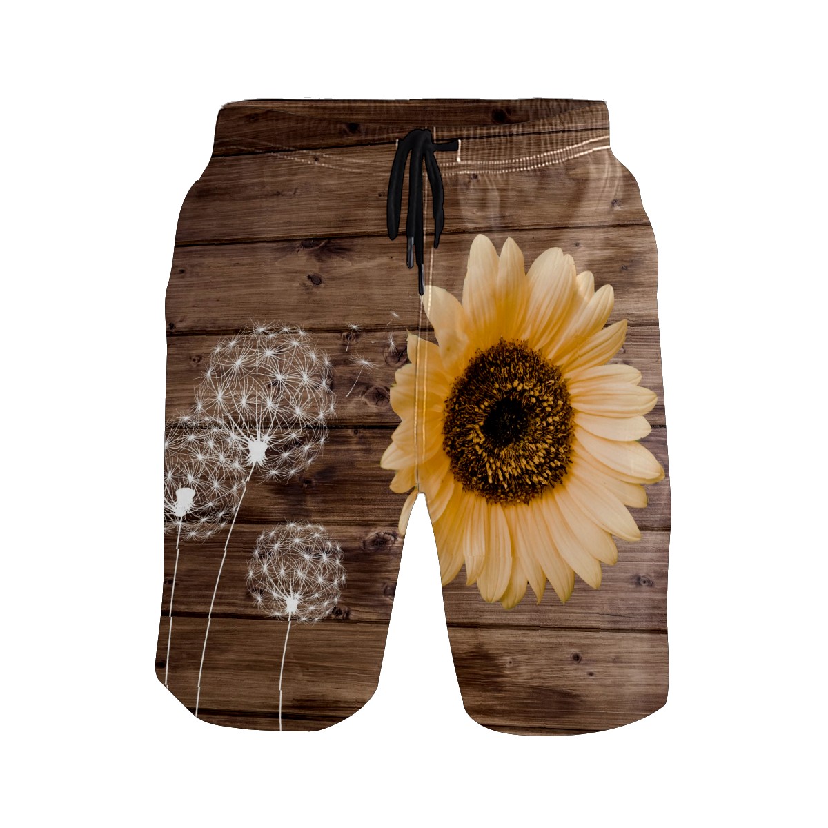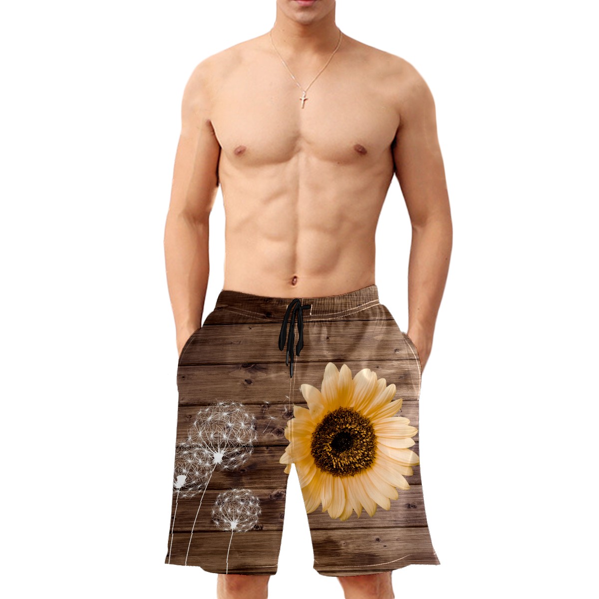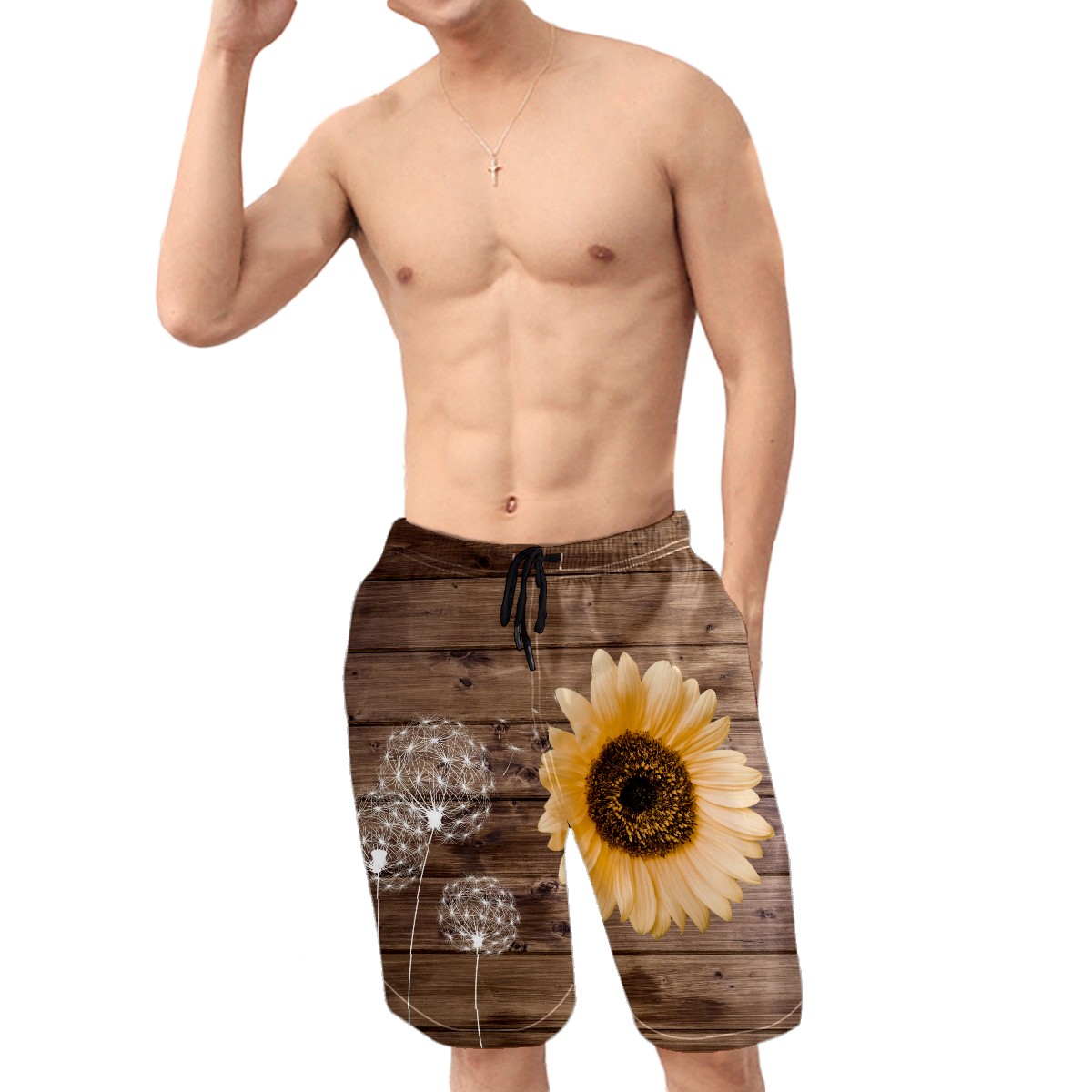 Mens Swim Trunks Wood Dandelions Yellow Sunflower Beach Board Shorts