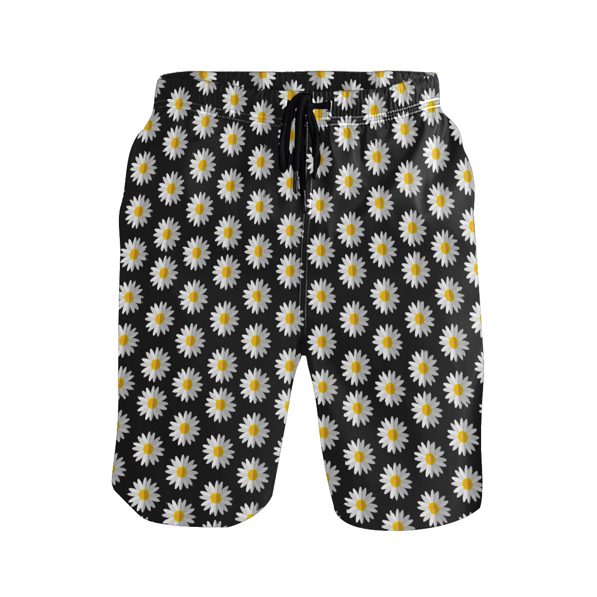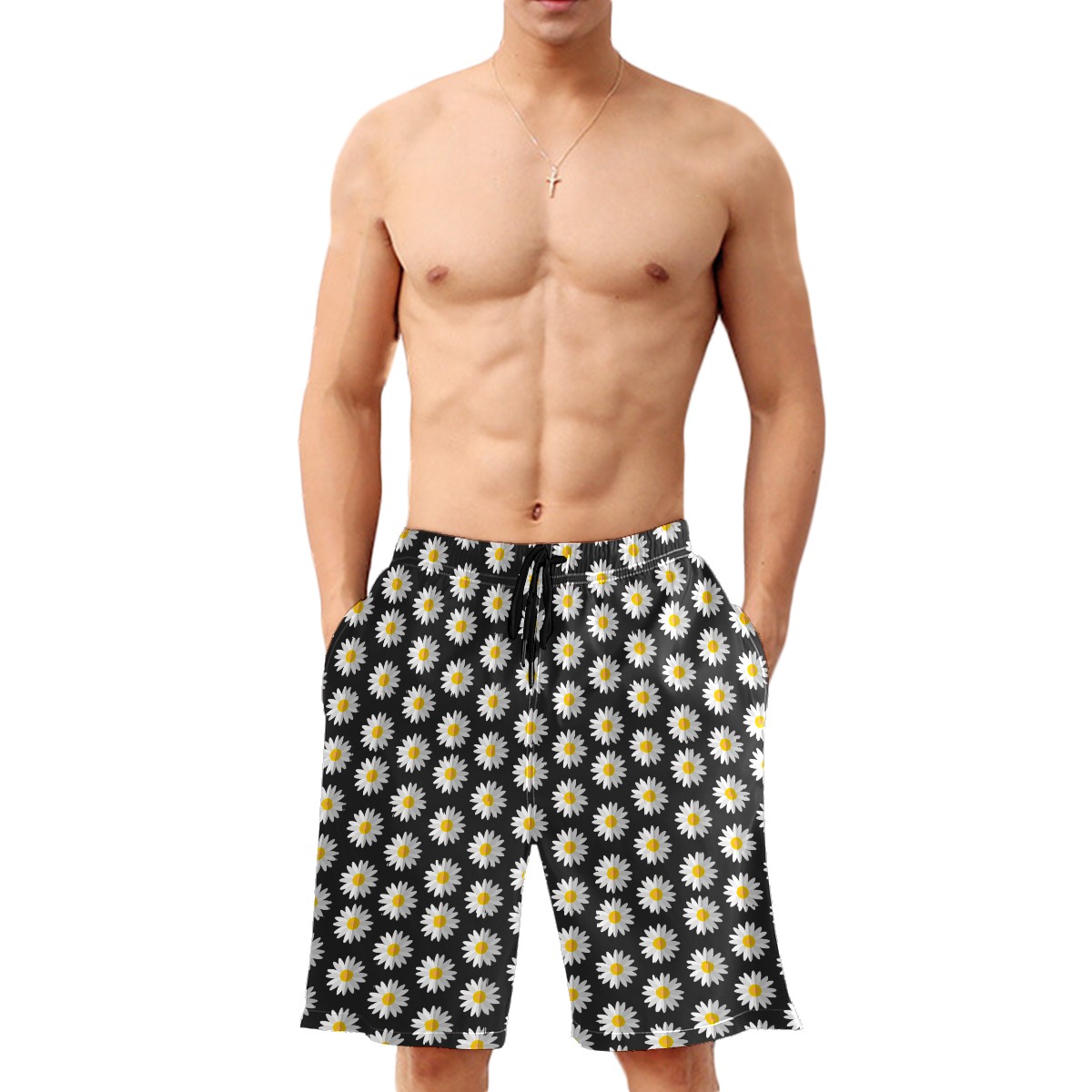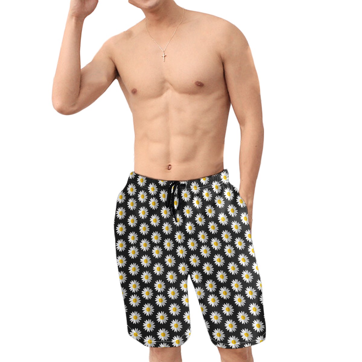 Mens Swim Trunks White Daisy Little Flower Dark Grey Beach Board Shorts
