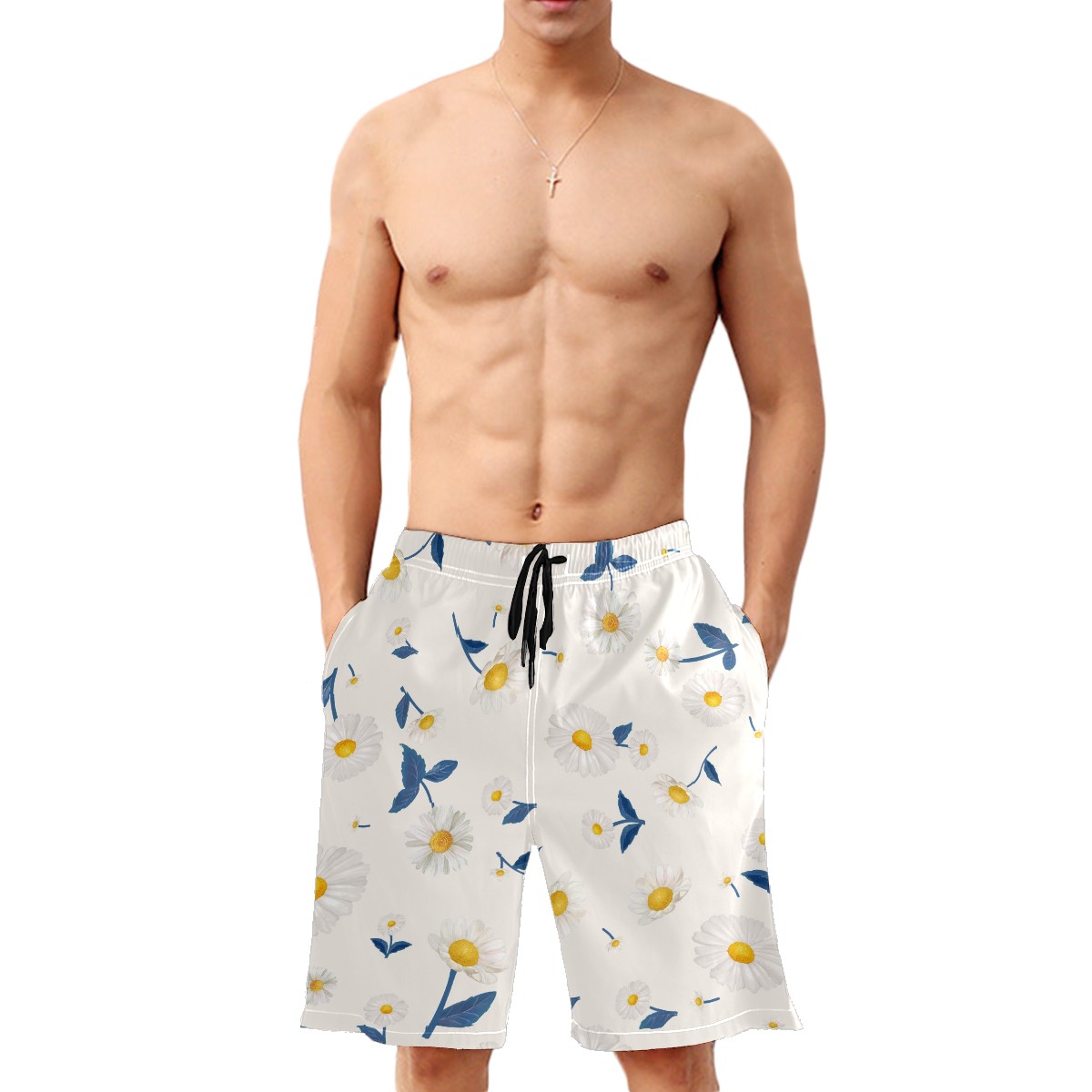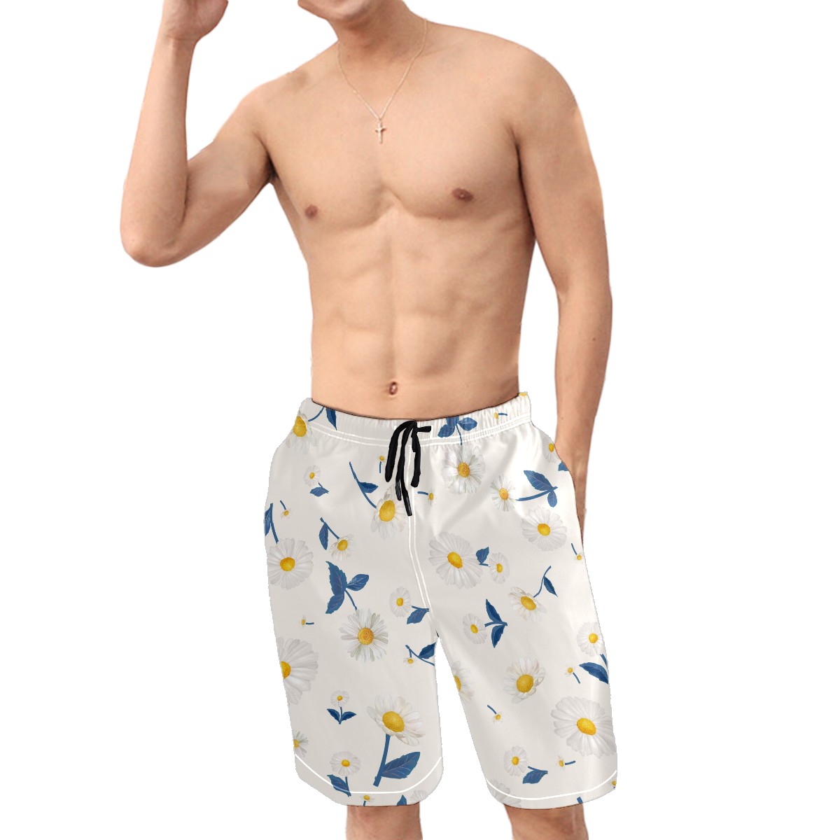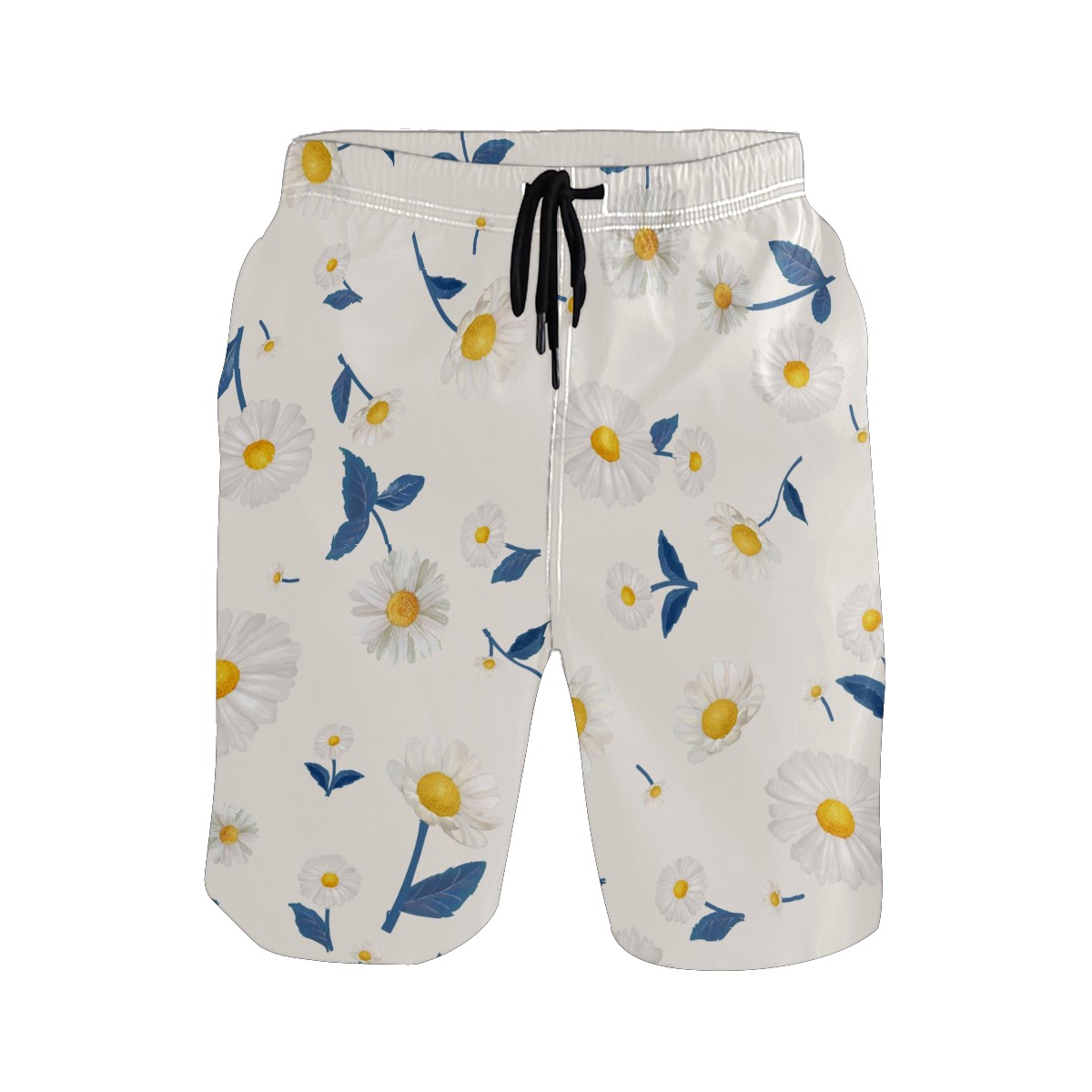 Mens Swim Trunks White Daisy Flower Plant Pattern Beach Board Shorts
