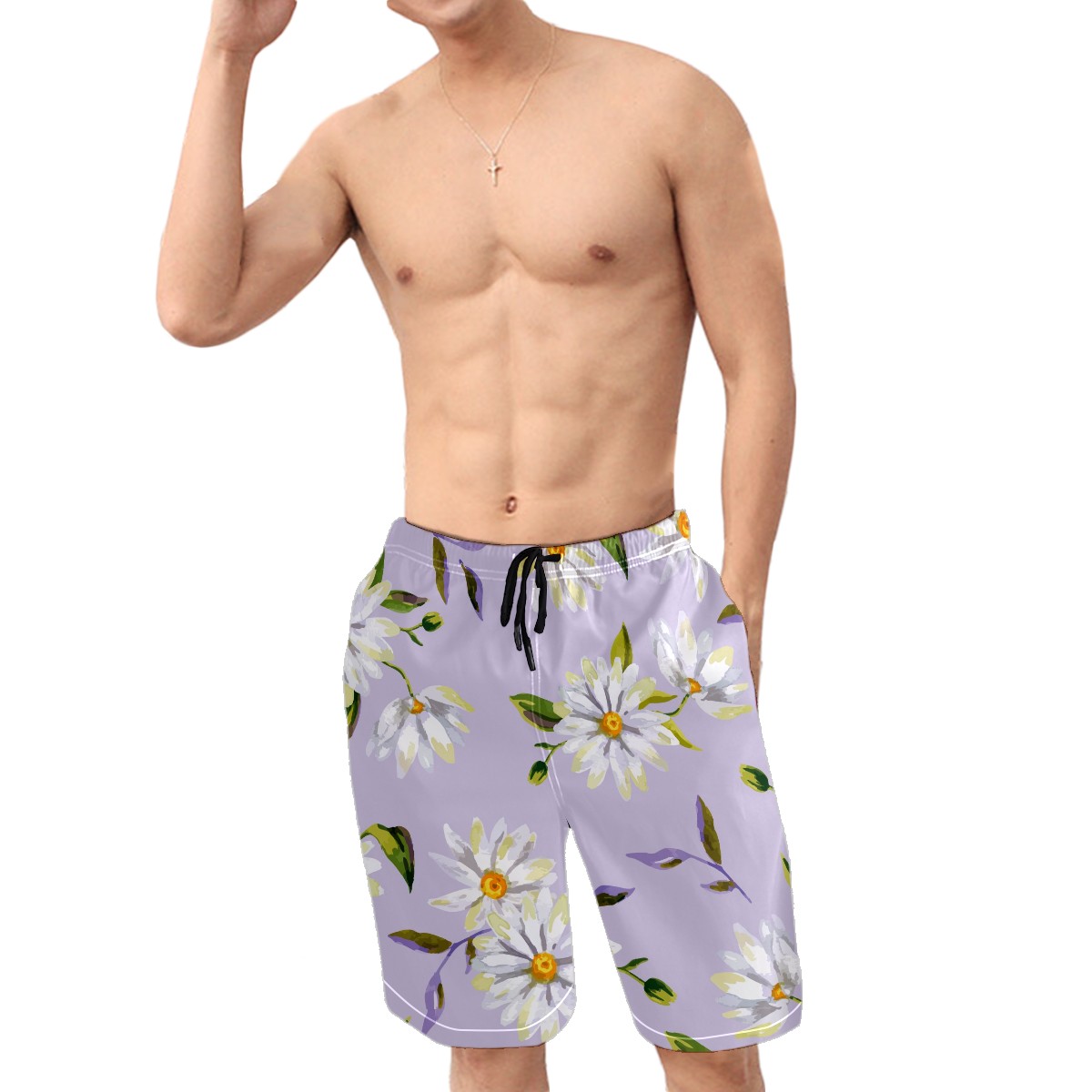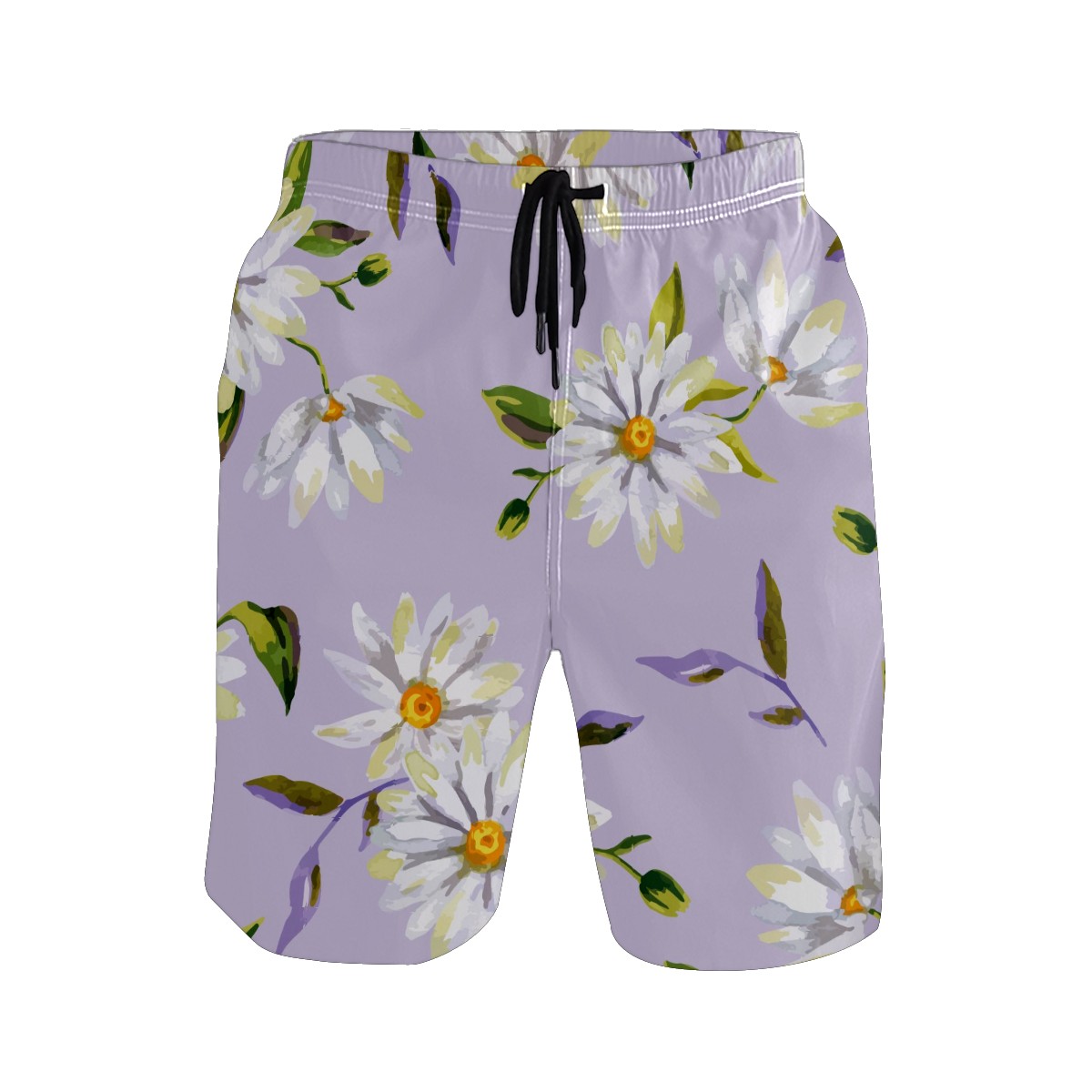 Mens Swim Trunks Watercolor White Daisy PurpleBackground Beach Board Shorts