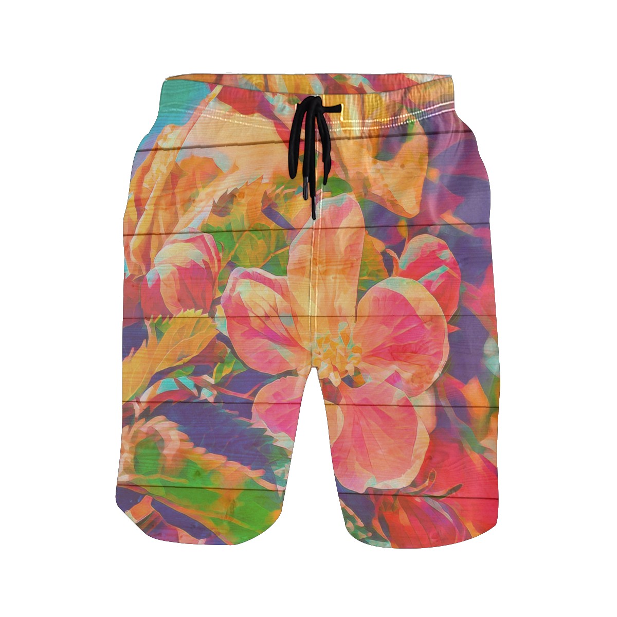 Mens Swim Trunks Watercolor Big Floral Wooden Barn Beach Board Shorts