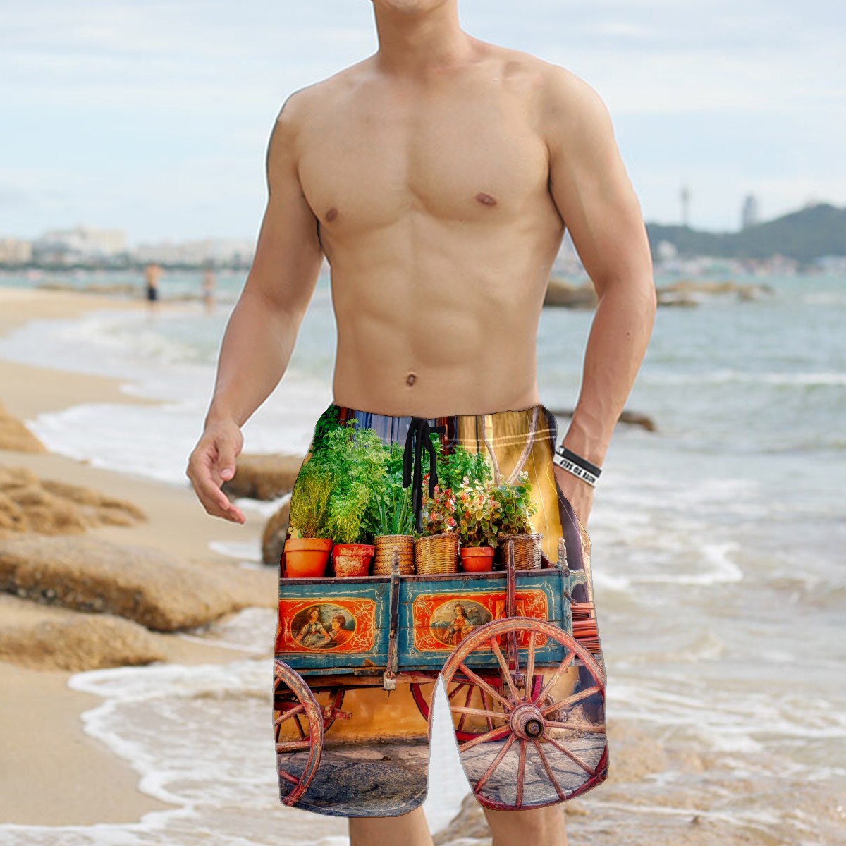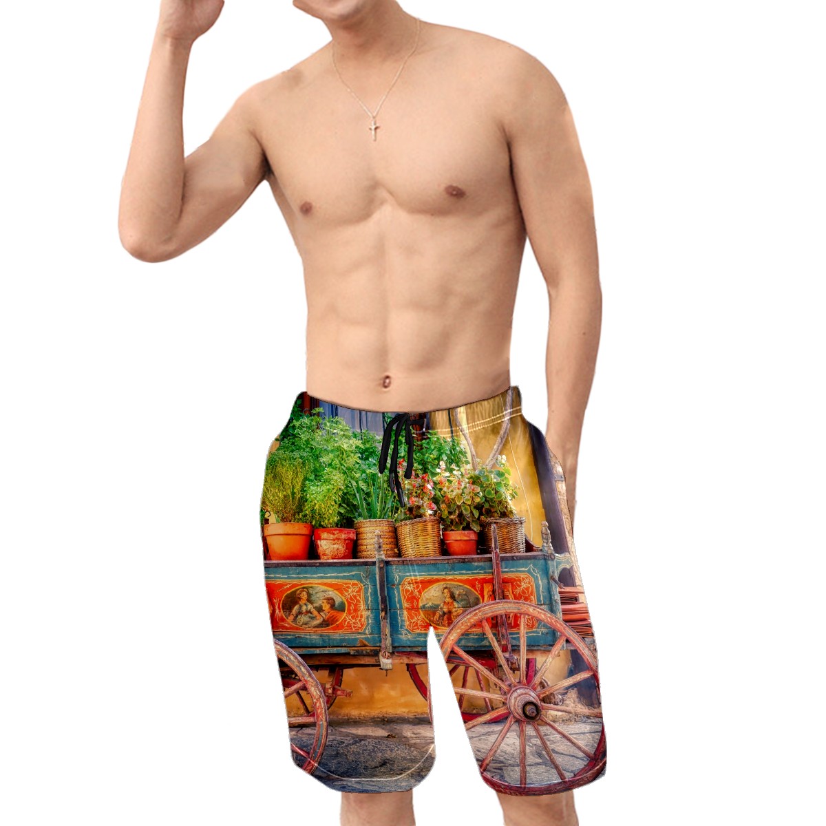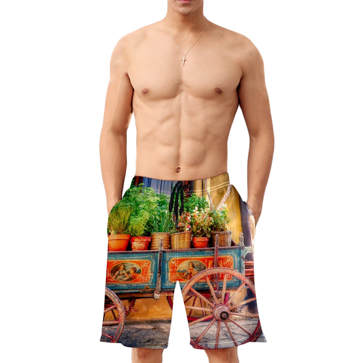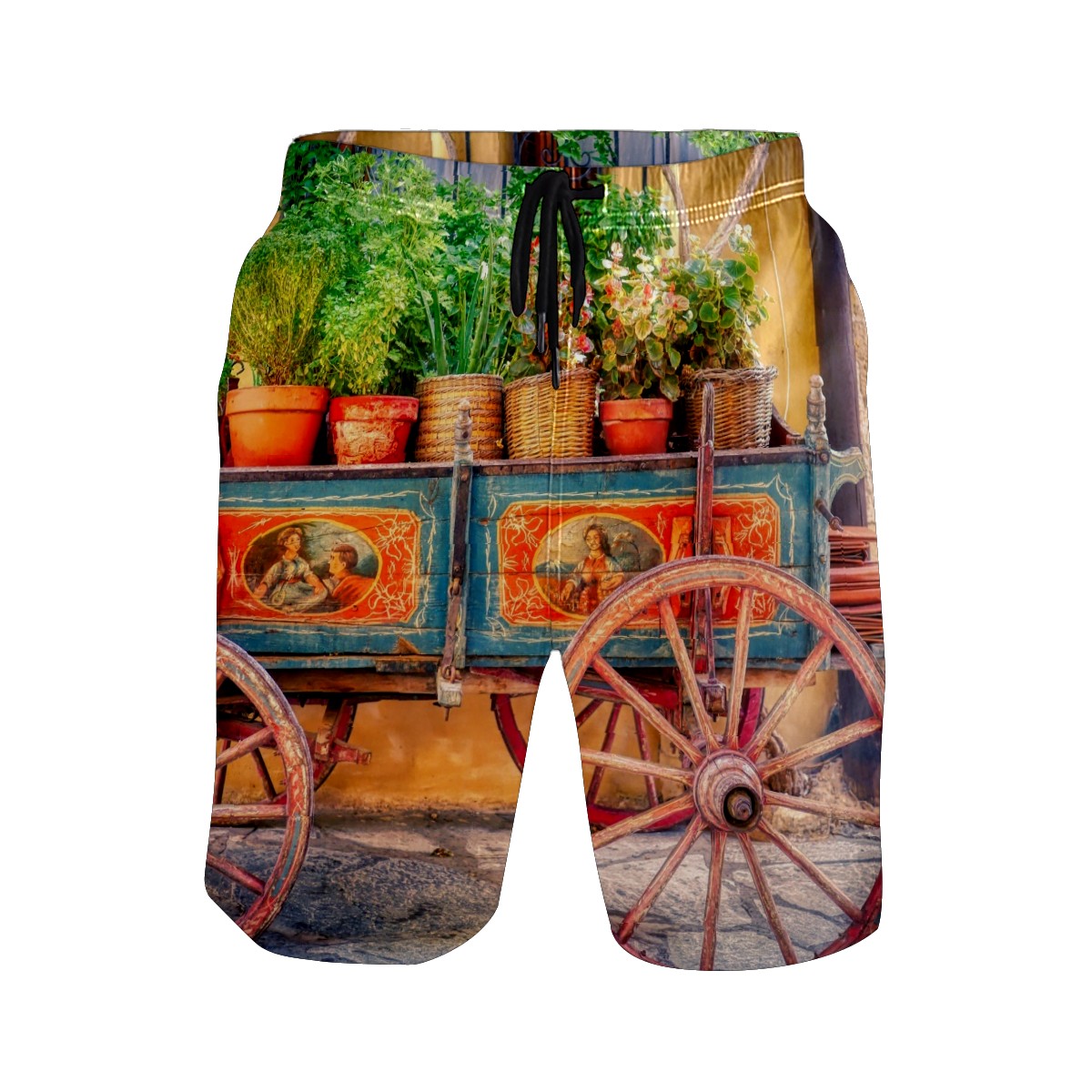 Mens Swim Trunks Potted Plants Cart Rustic Cabin Beach Board Shorts