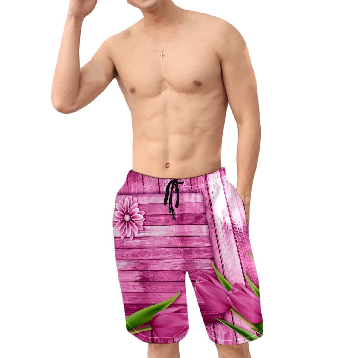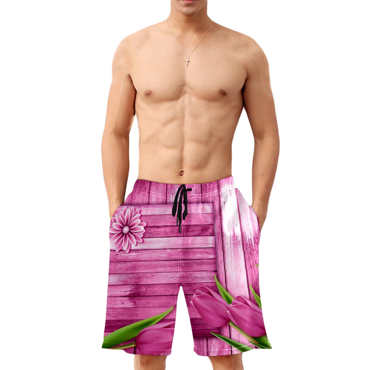 Mens Swim Trunks Pink Tulip Wood Board Rustic Beach Board Shorts